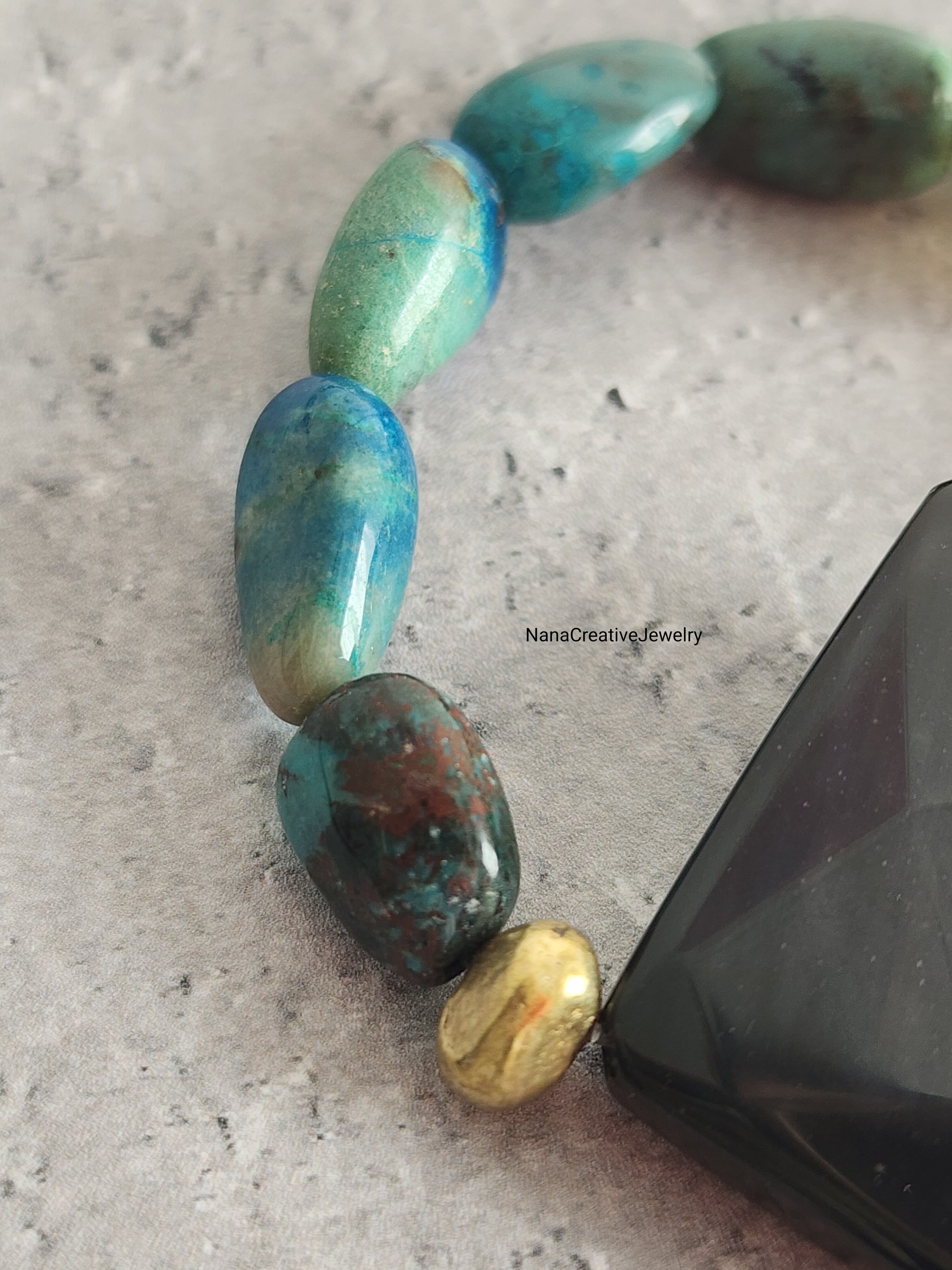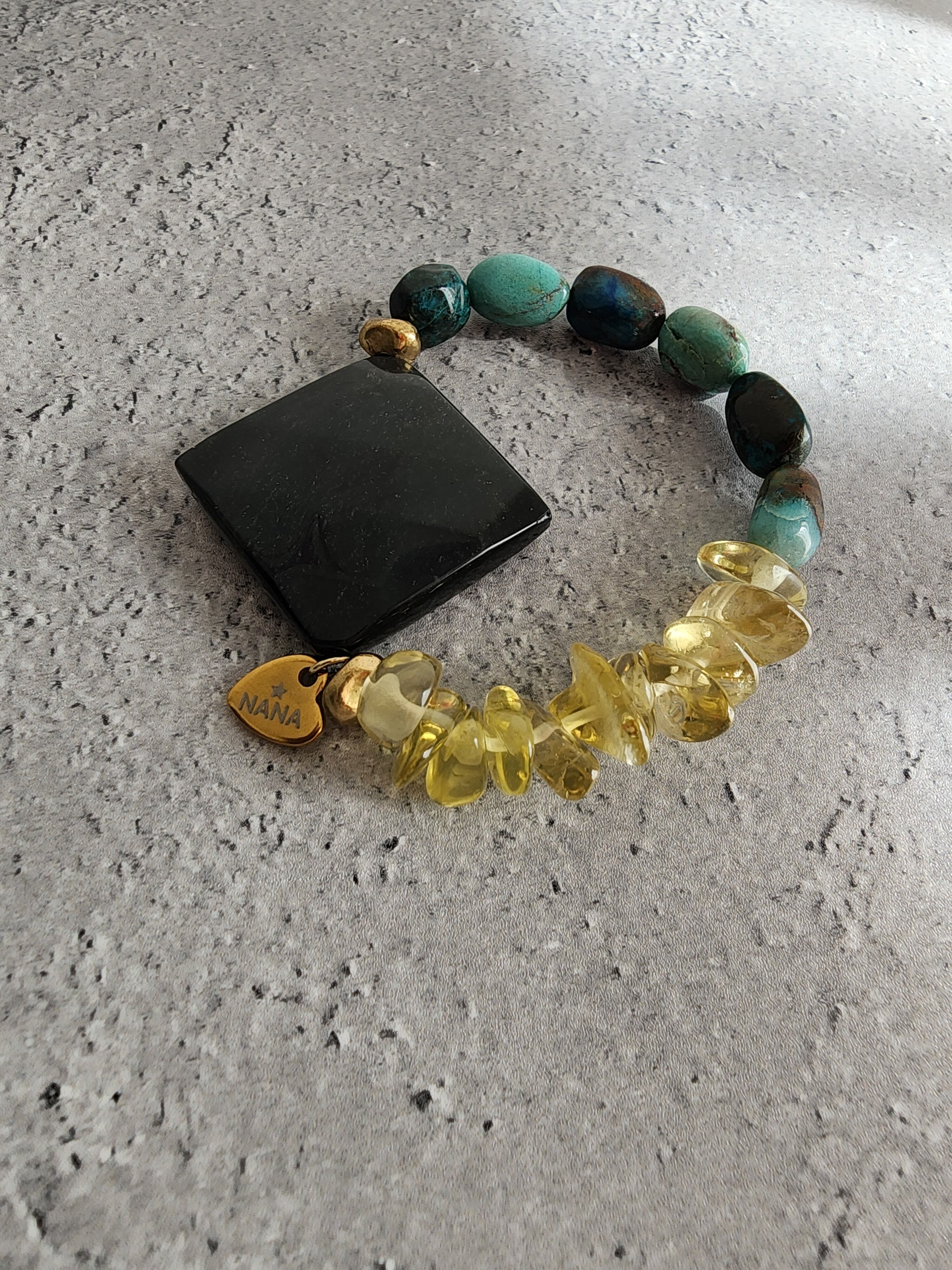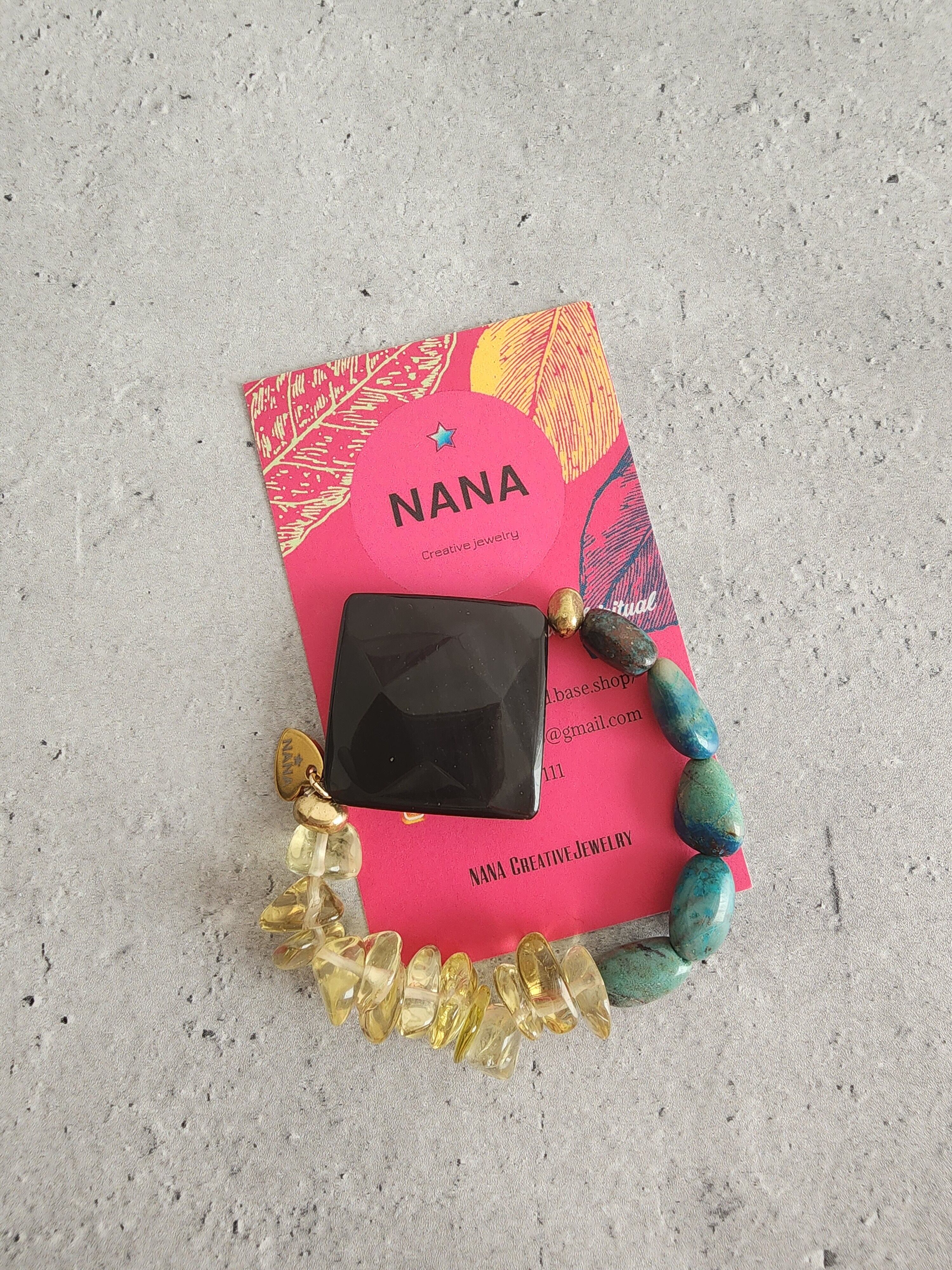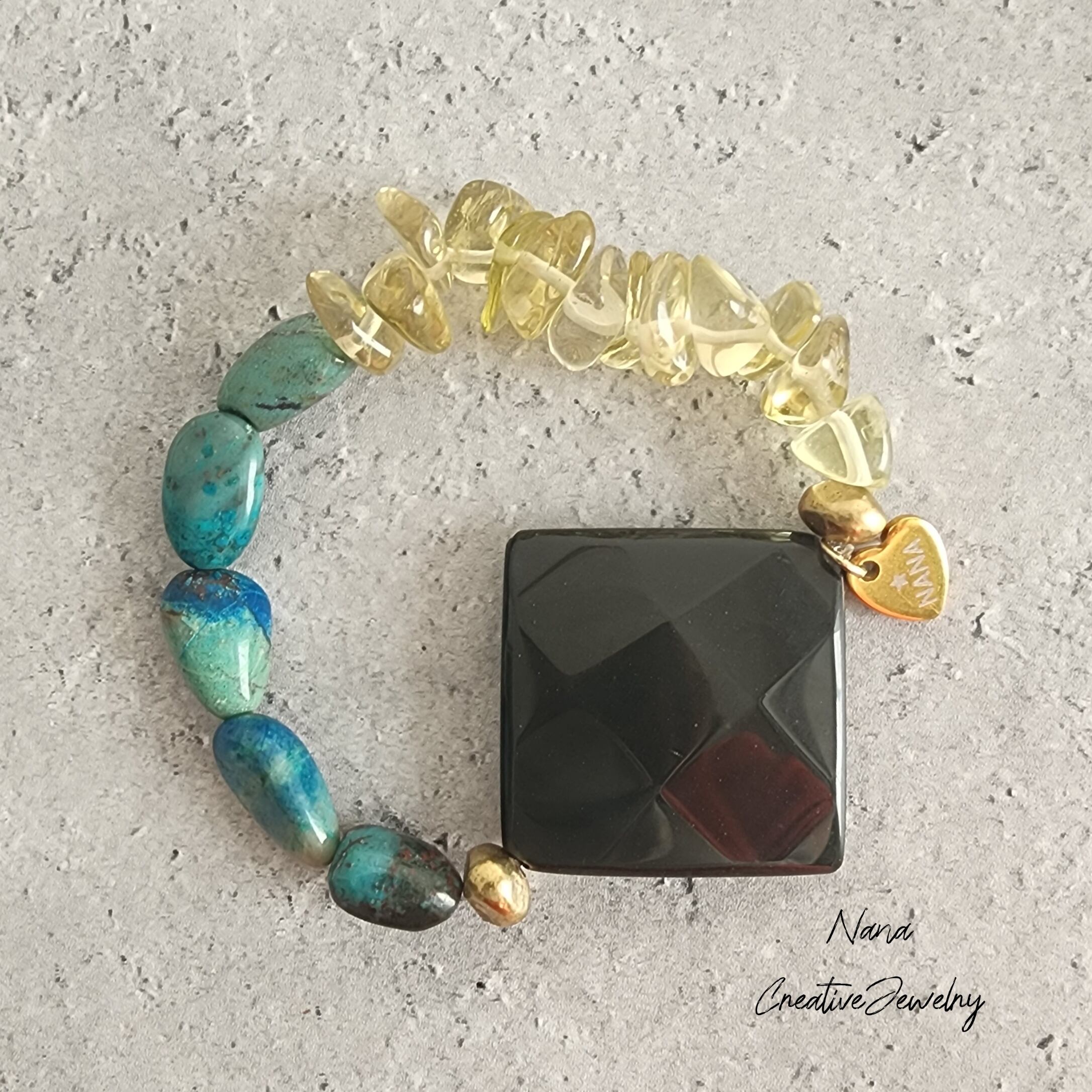 multicolor bracelet(オニキス×クリソコラ×レモンクォーツ×真鍮)
