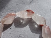 赤く美しい物はファイアークォーツ、その他にもハーレクインクォーツ、ハーレクイン水晶など流通名を多数持った天然石です。