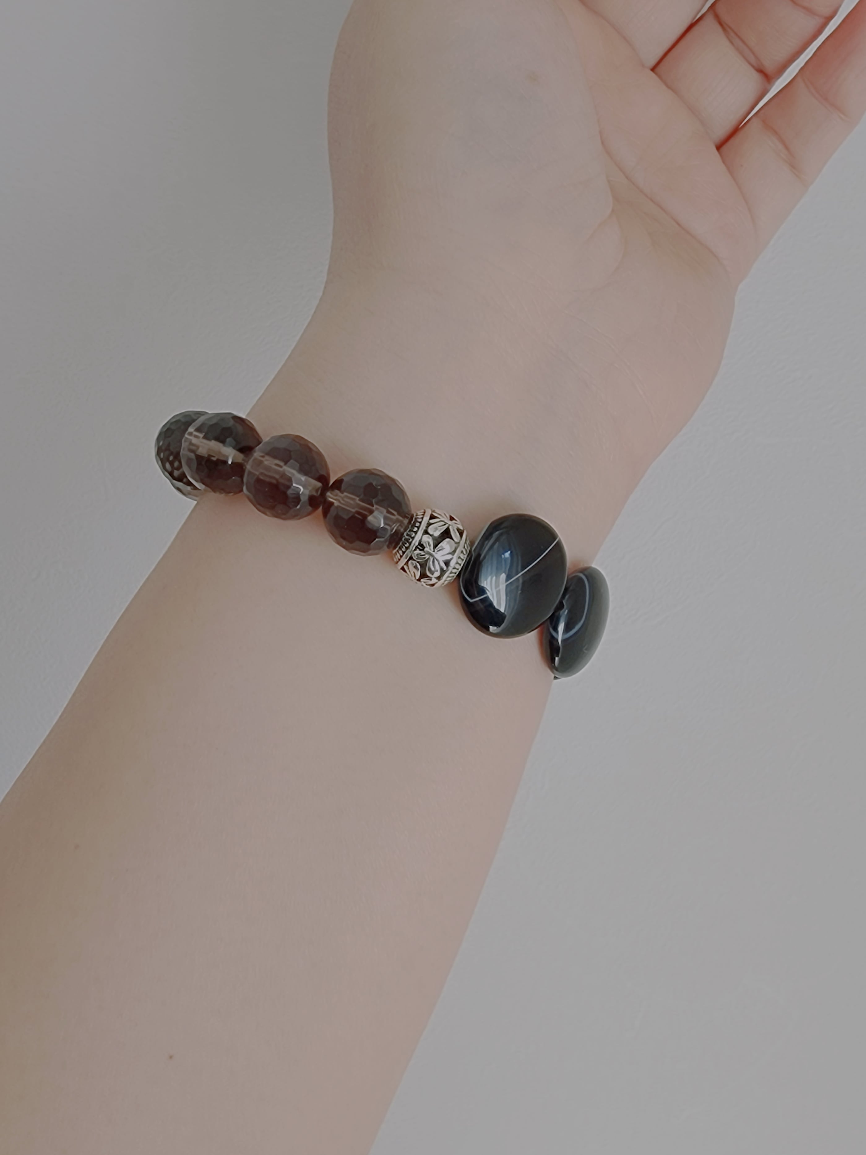 multicolor bracelet(ベネチアンガラス×スモーキークォーツ×オニキス×真鍮)