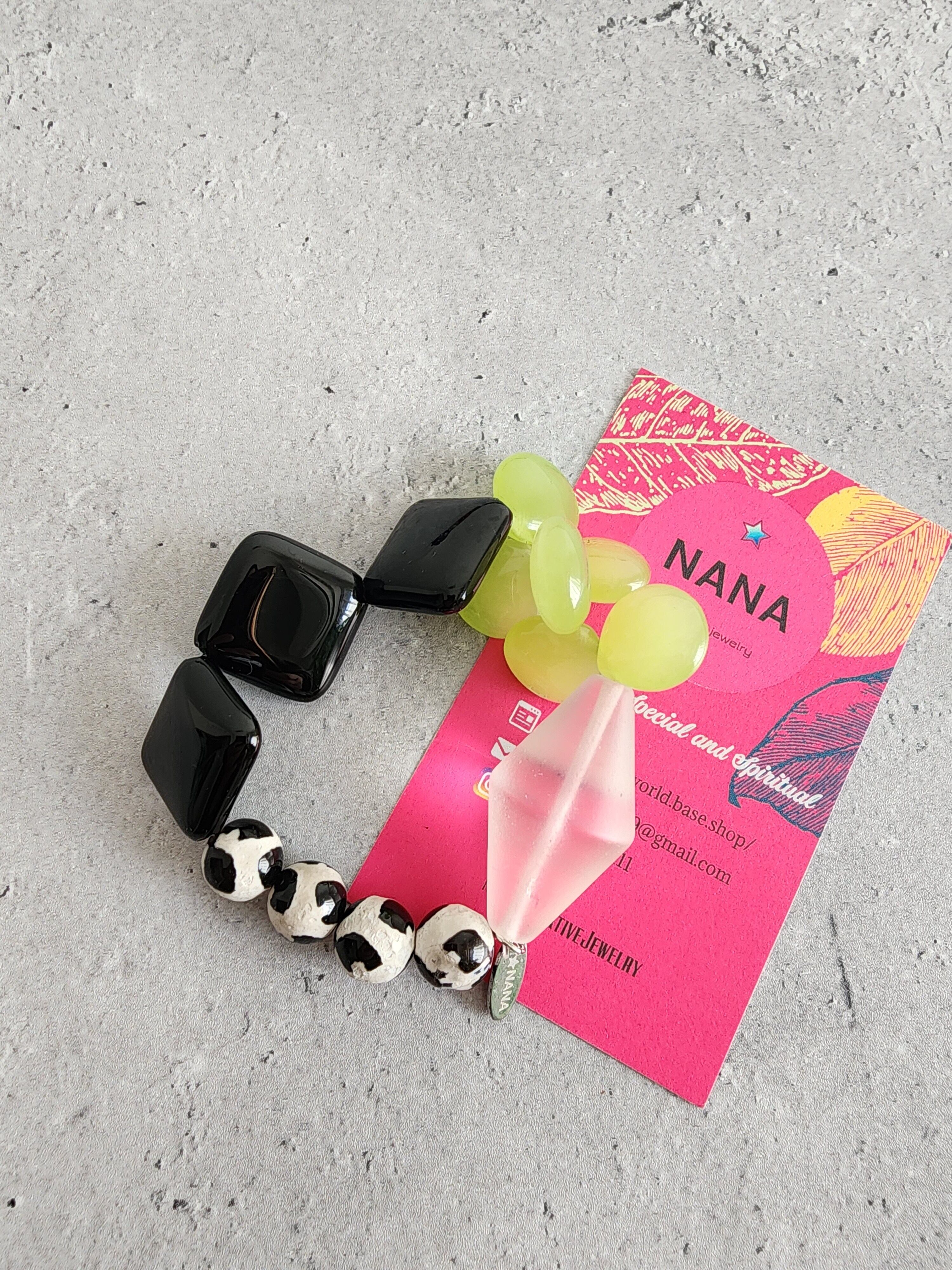 multicolor bracelet(亀甲長寿天珠×オニキス×ジェード)