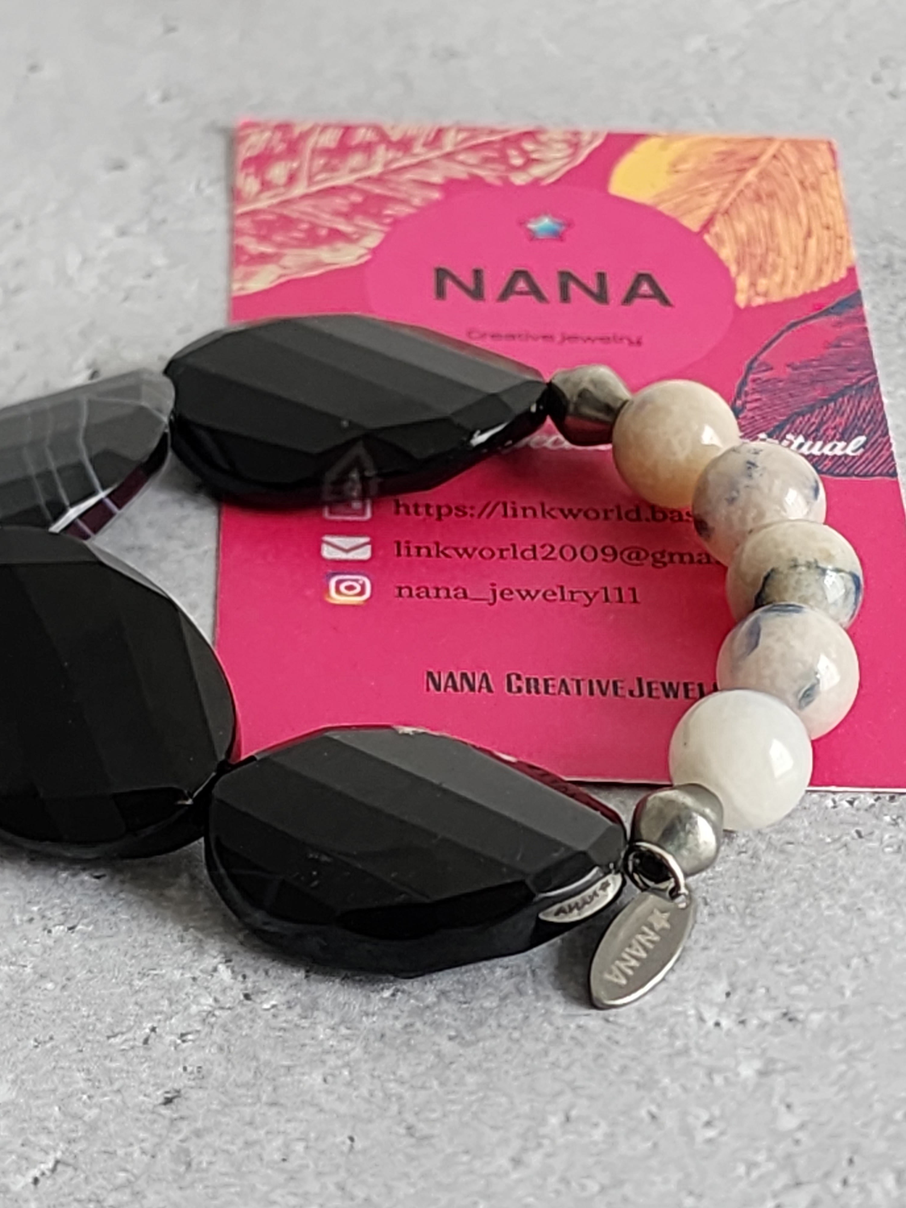 表情豊かな天然石の組み合わせに、メタルのきらめきがさりげなく調和した一本です。