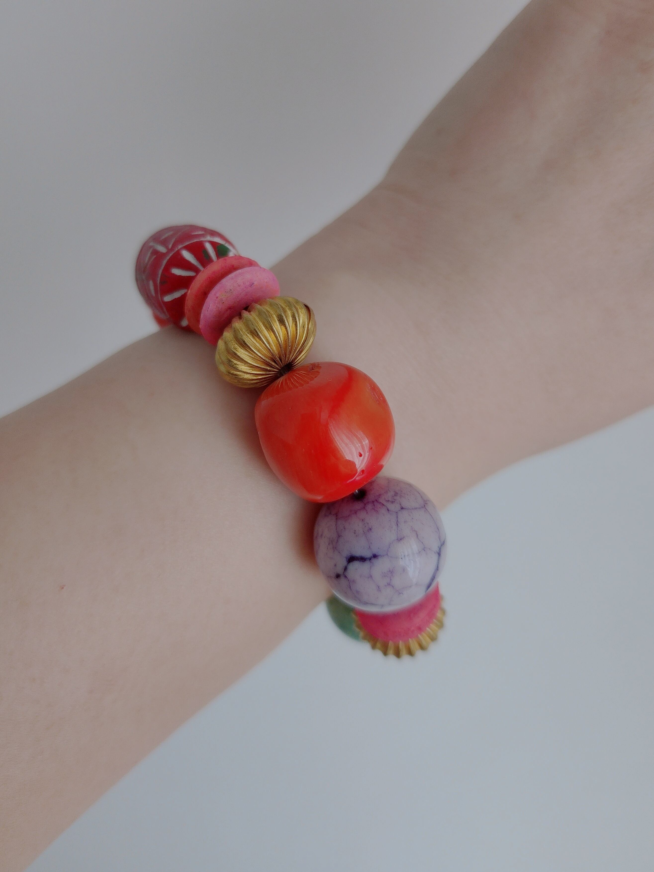 multicolor bracelet(コーラル×ジェード×クレイ×真鍮×ココナッツ)