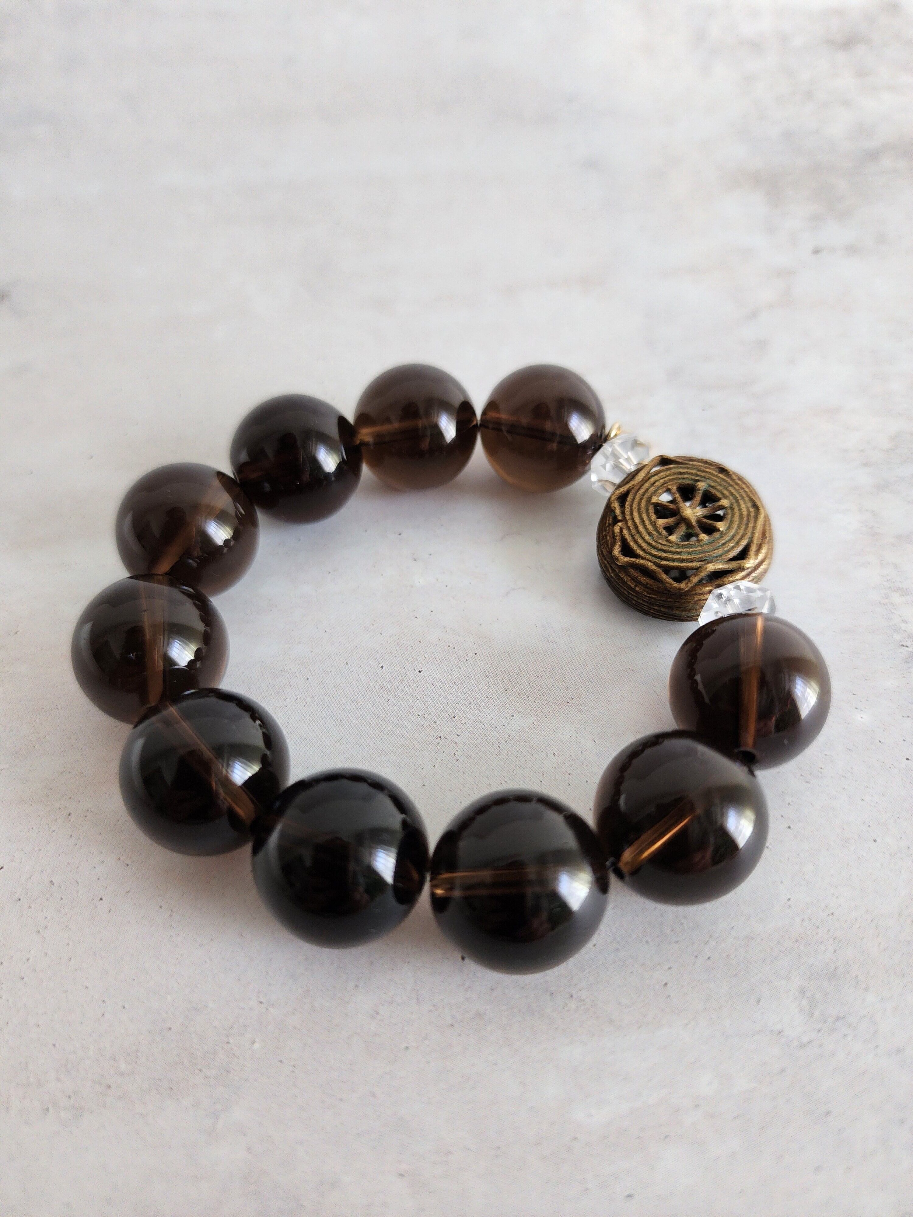 【再販】Men/Unisex bracelet(スモーキークォーツ×クリスタル×真鍮)