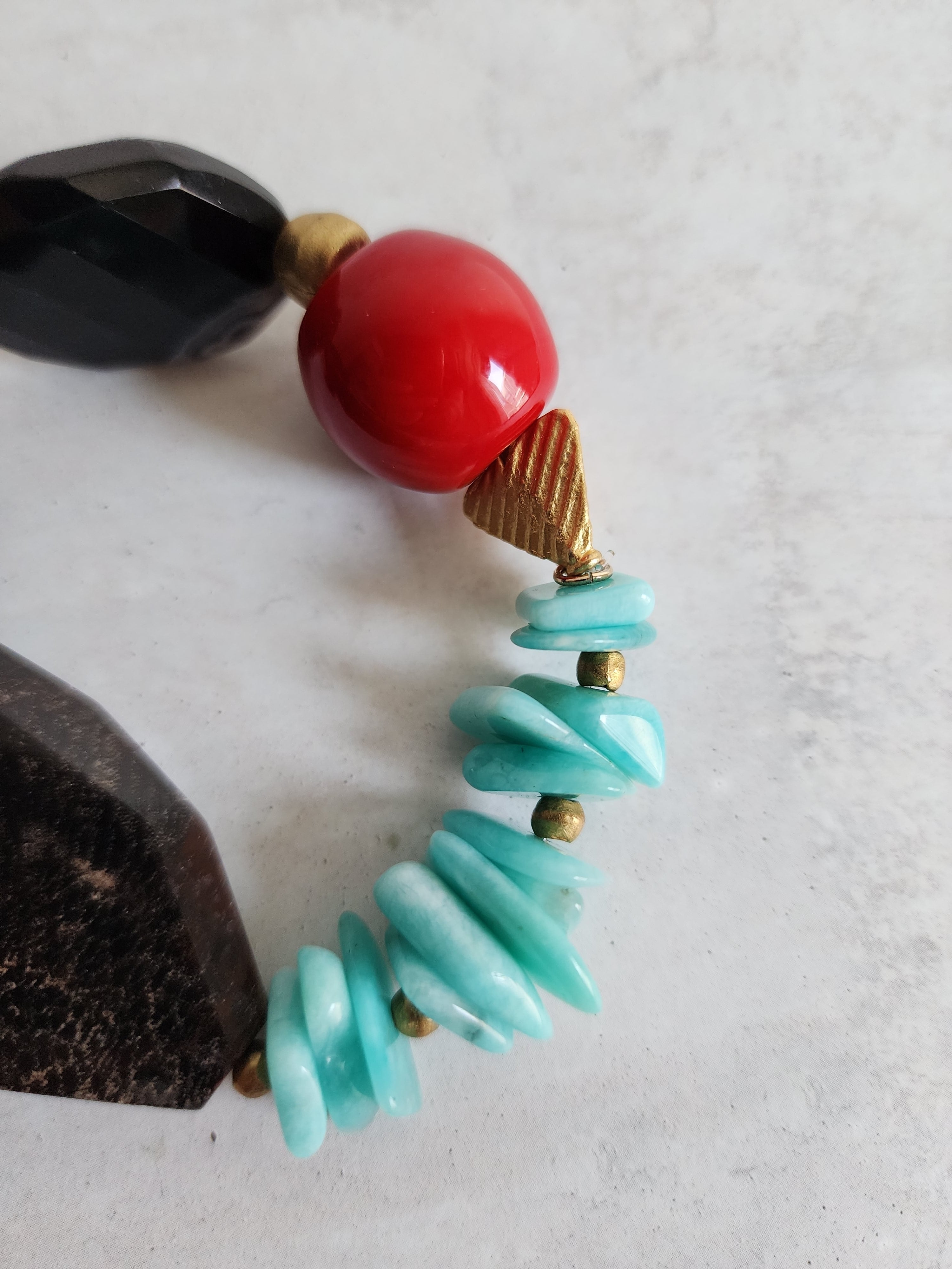 multicolor bracelet(フォシルコーラル×アマゾナイト×オニキス×真紅玉×真鍮)