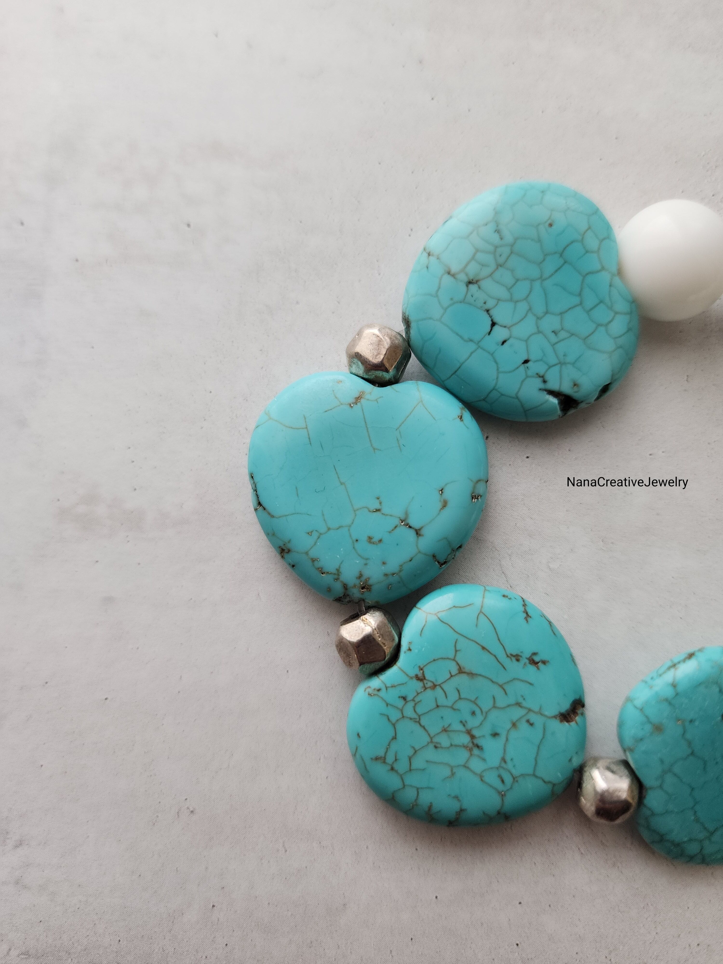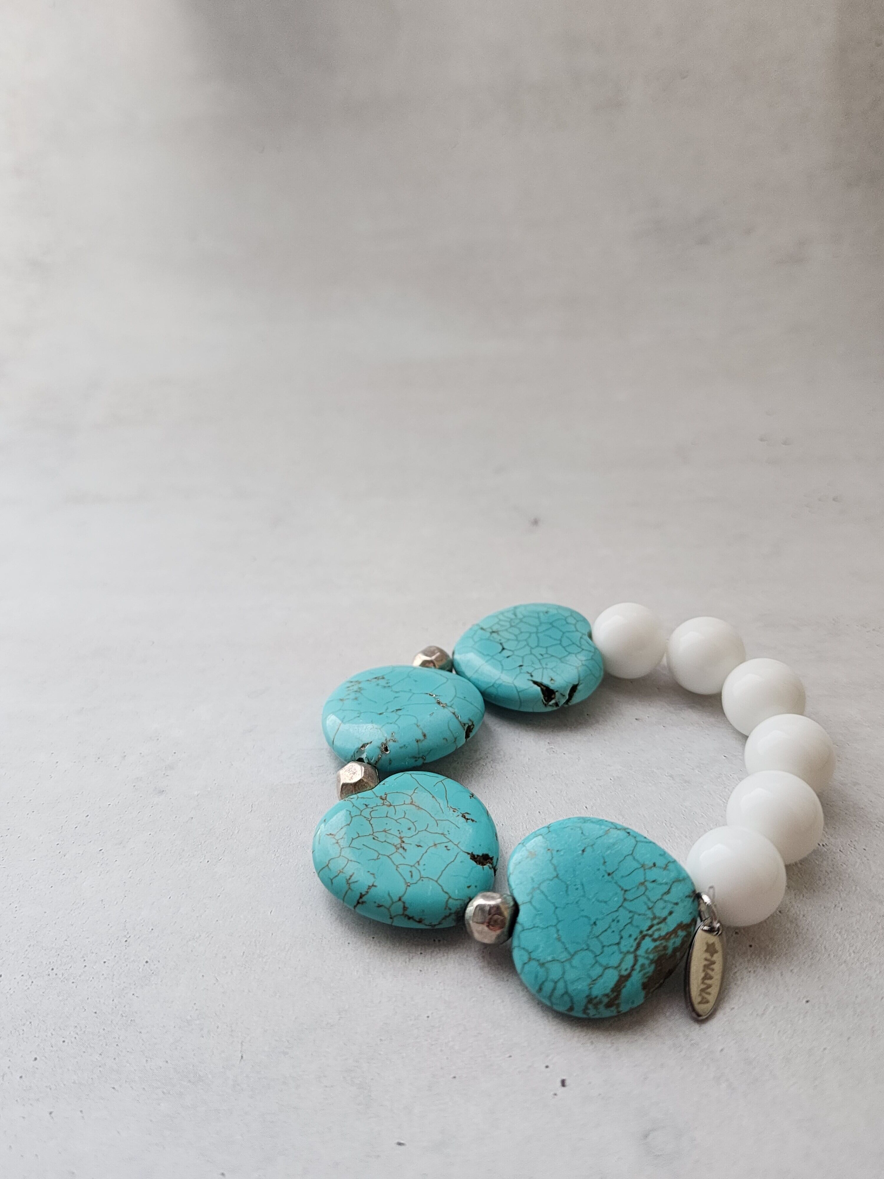 【再販】two colors bracelet(マグネサイトターコイズ×オニキス×真鍮)