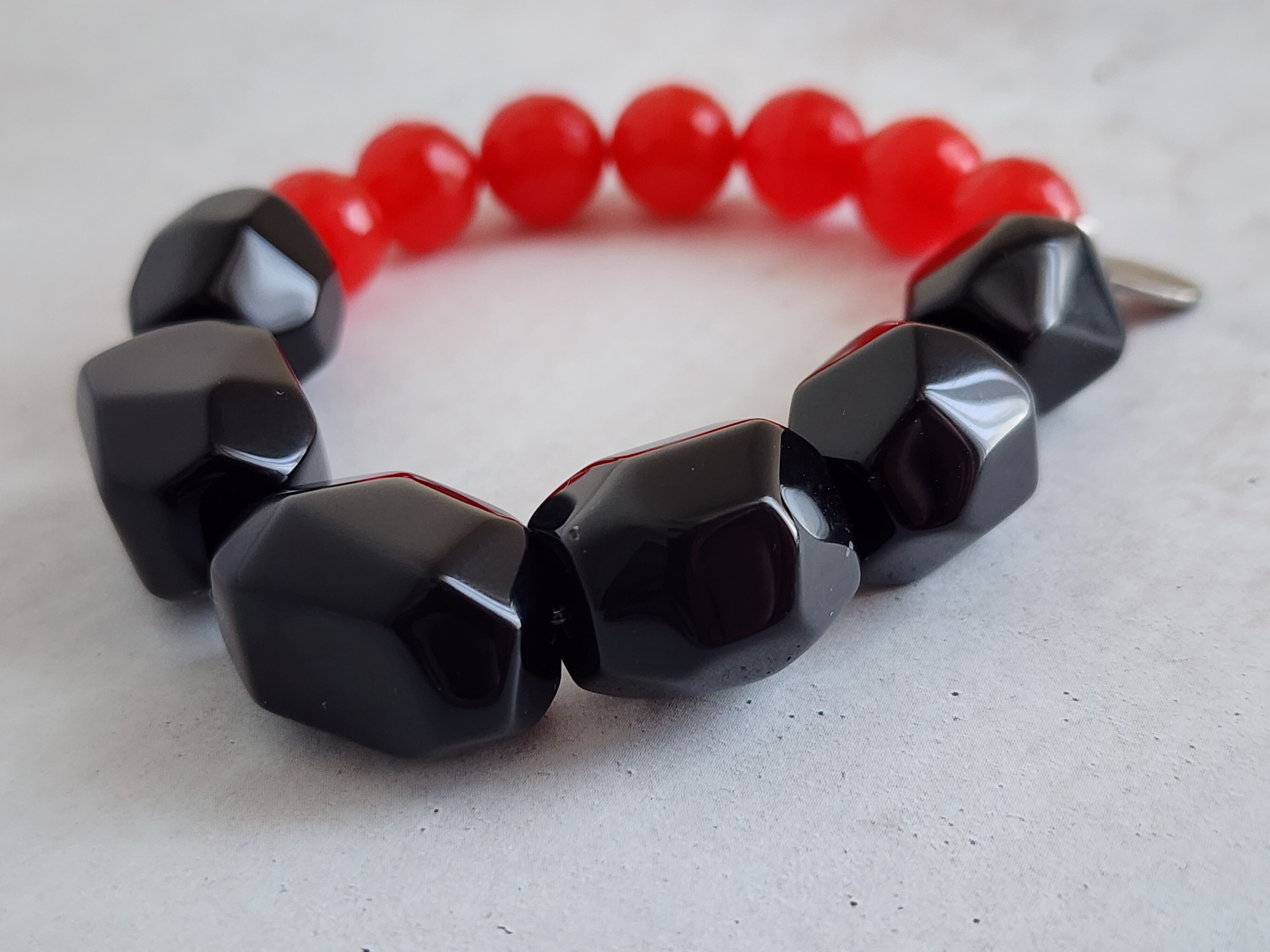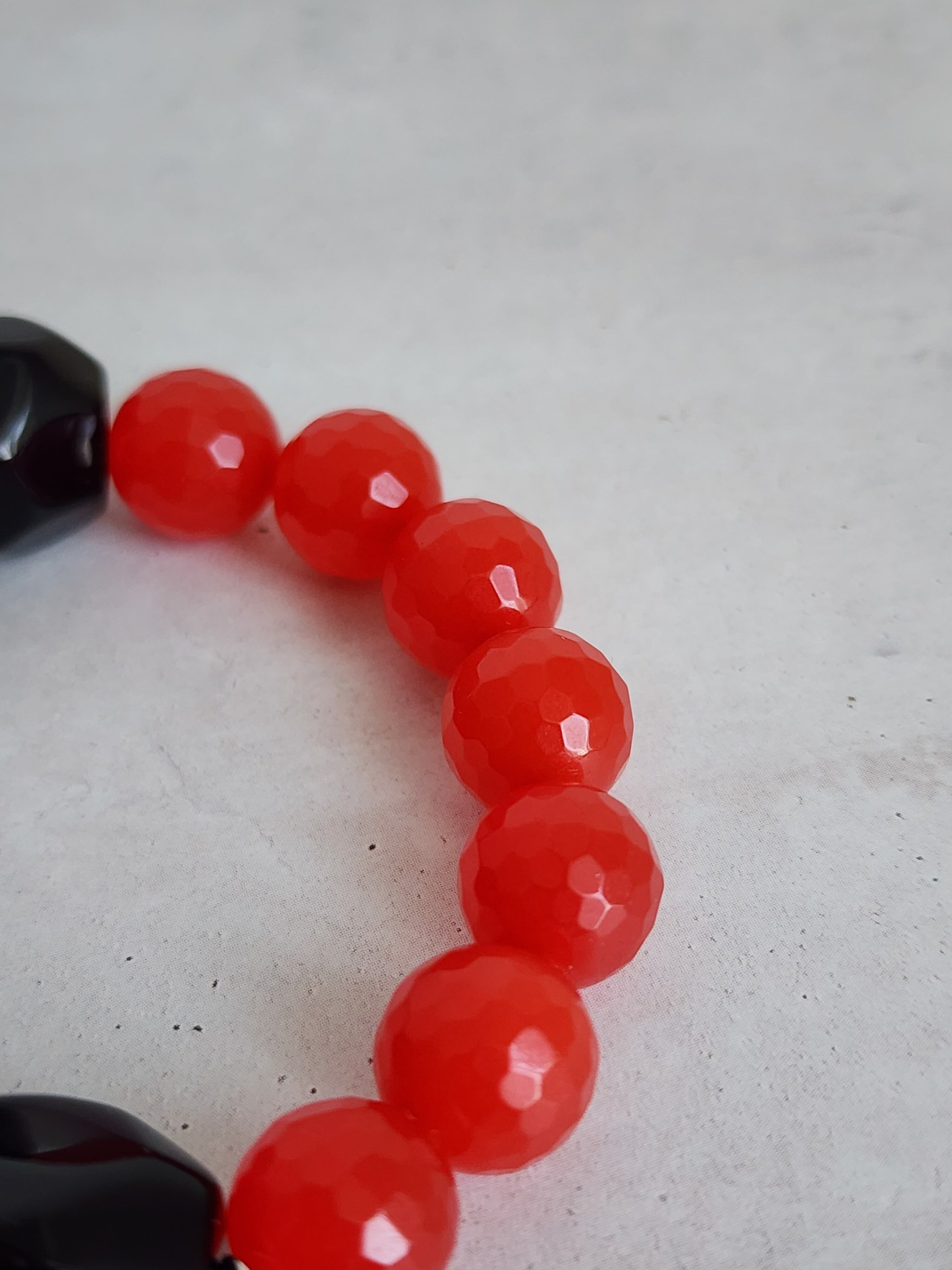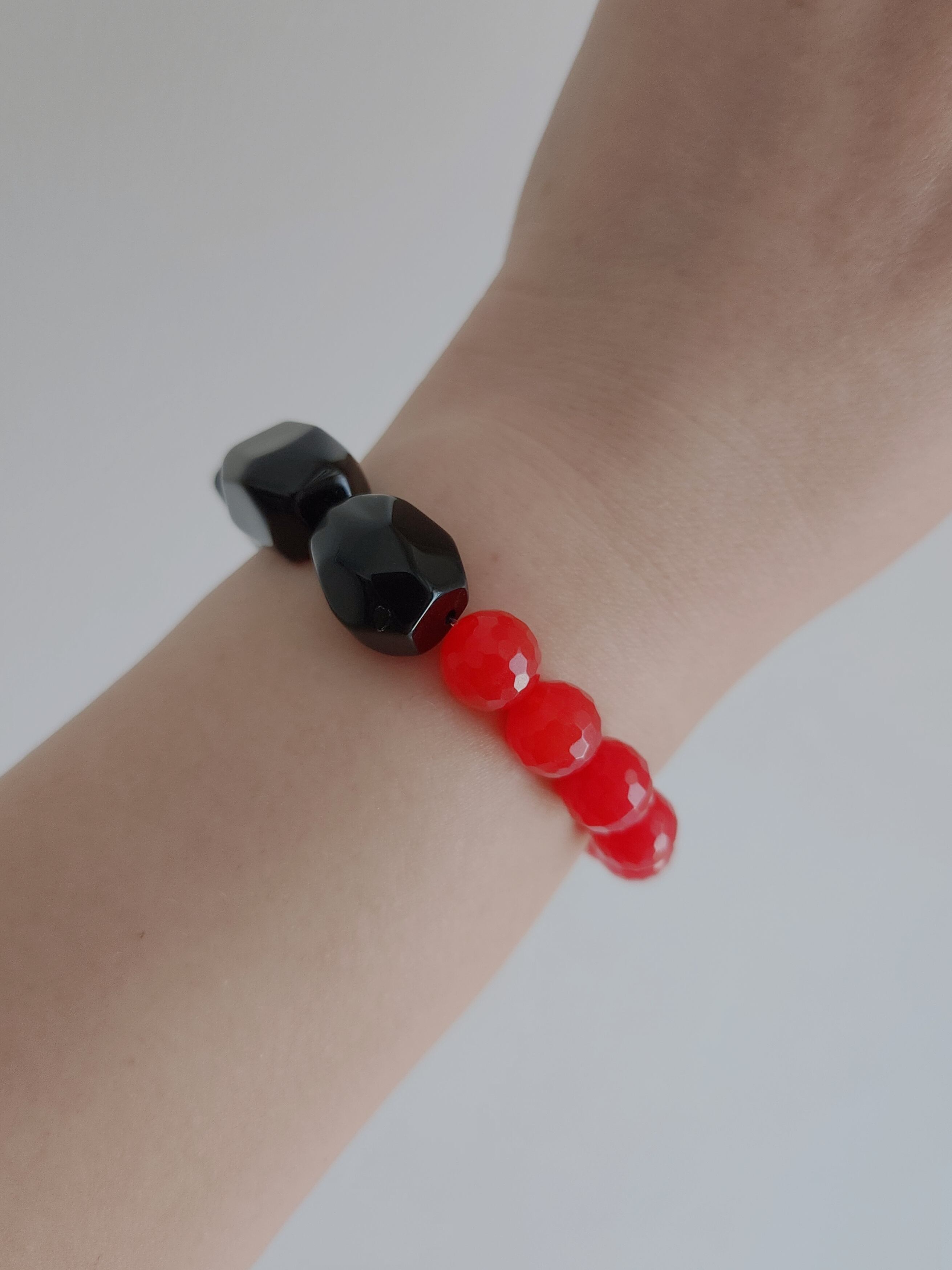漆黒のオニキスと、艶やかにきらめくレッドアゲート。