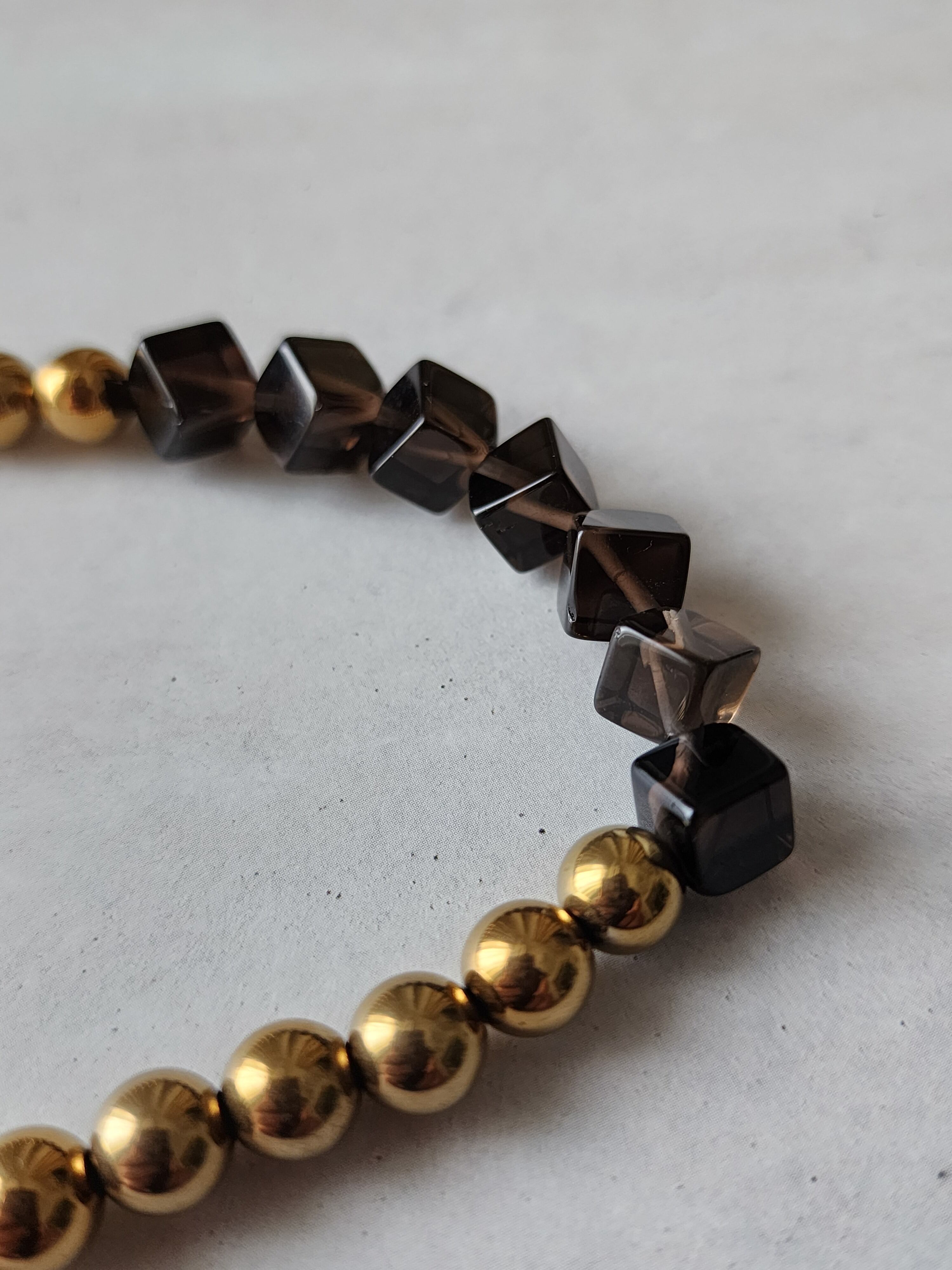 スモーキークォーツの落ち着いた色合いが、全体に奥行きを生み、