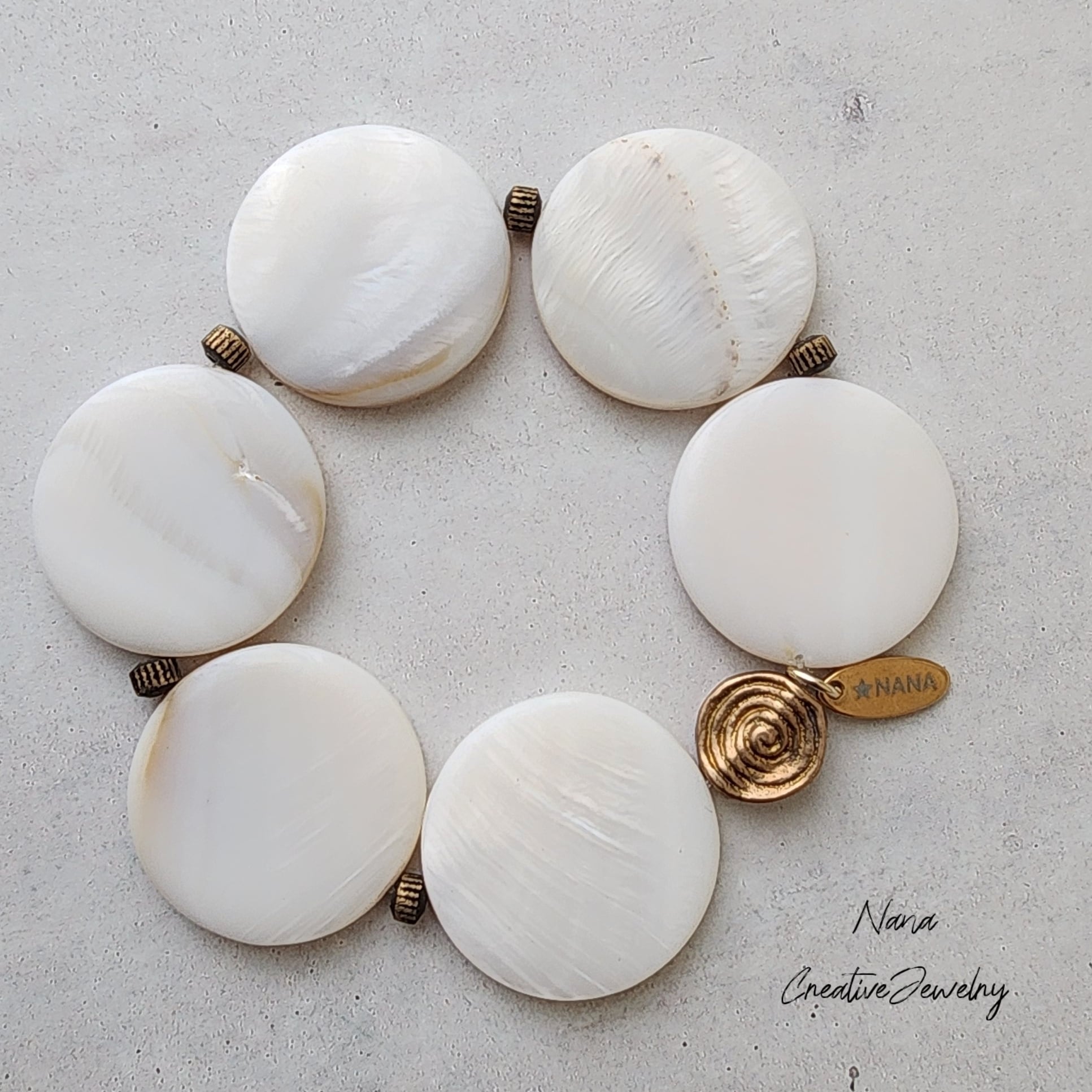 マザーオブパールの大きなラウンドは、まるで繭のように静かで、内側にやさしいエネルギーを宿しています。