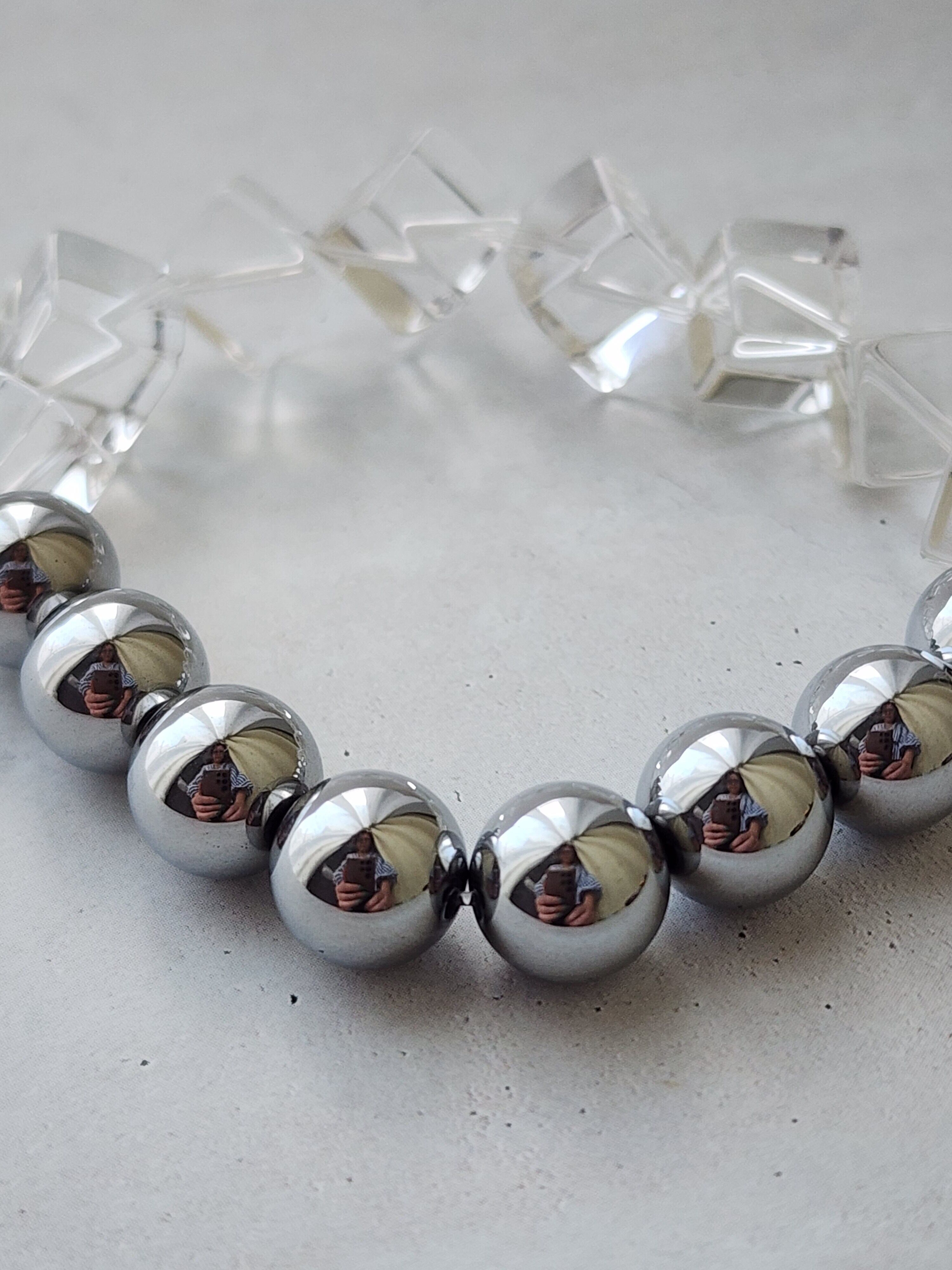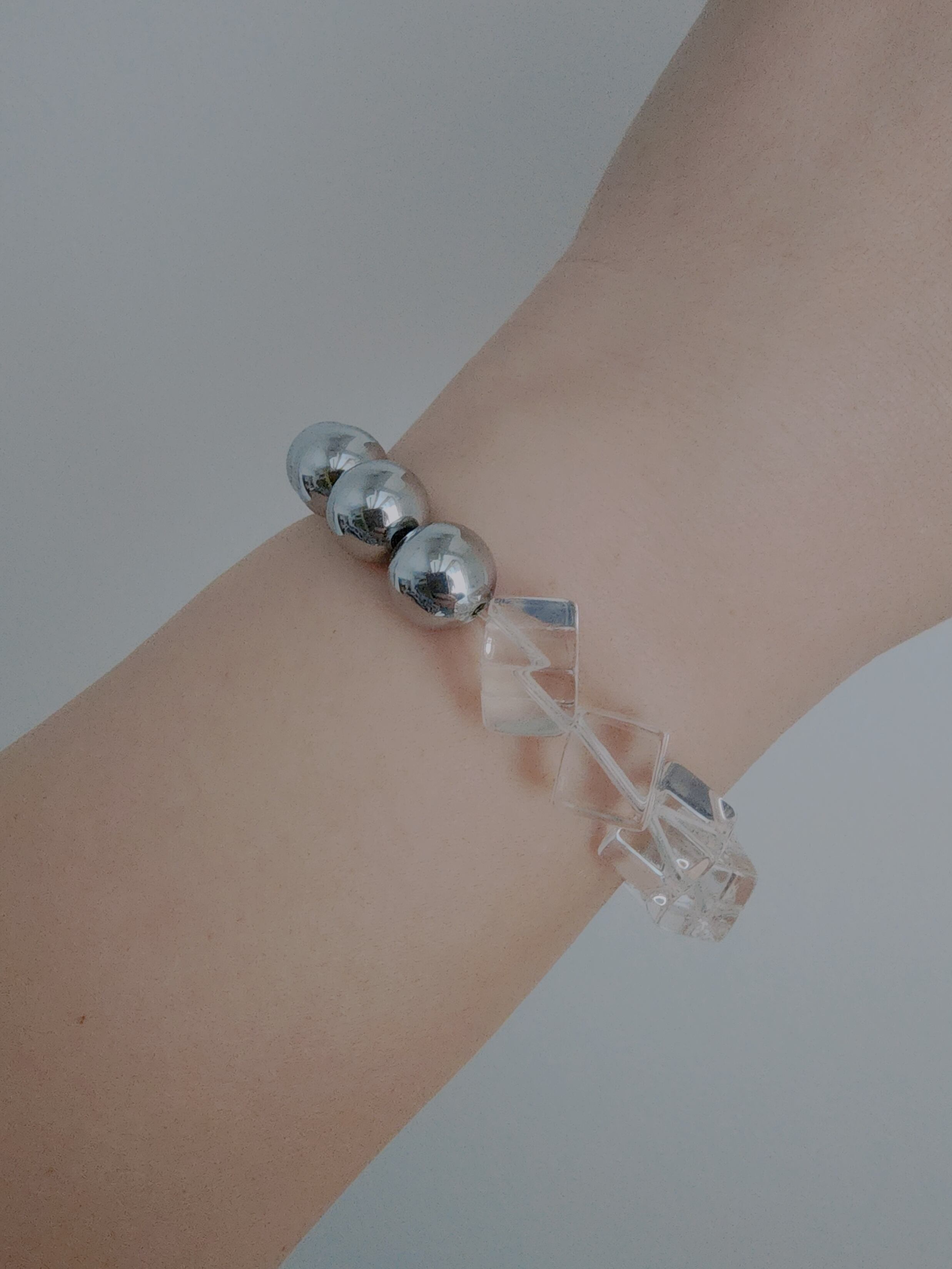 透明感あふれるクリスタルと、シルバーコーティングヘマタイトを組み合わせたブレスレット。