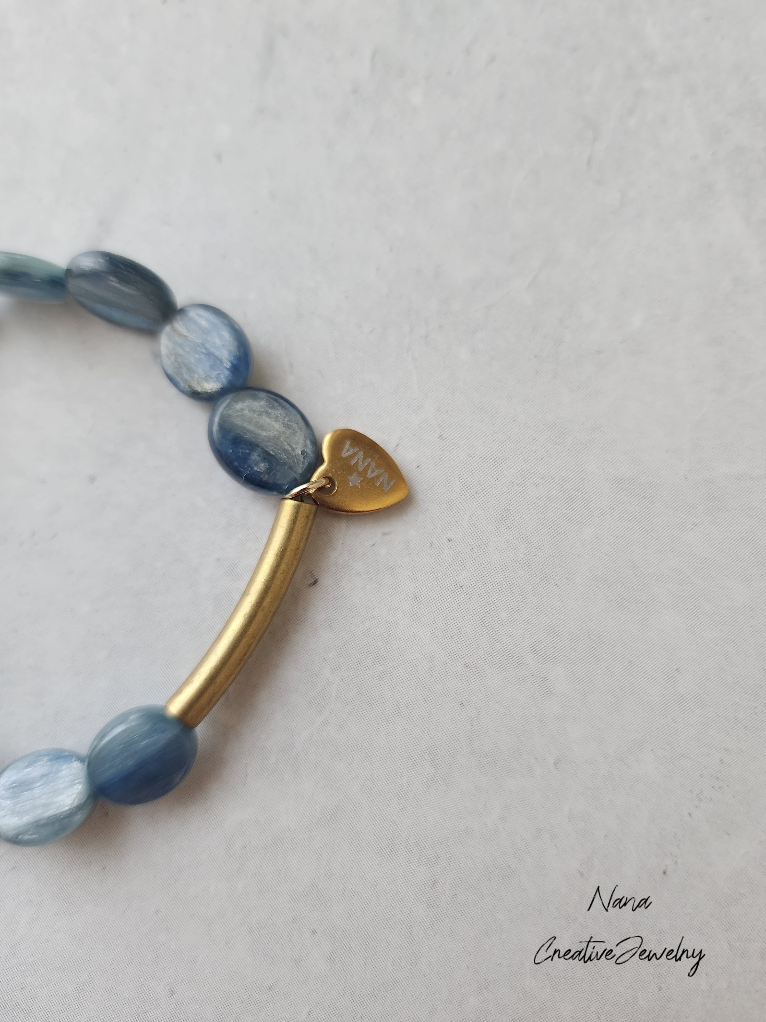 深いブルーのカイヤナイトに、真鍮の温もりを重ねたブレスレット。