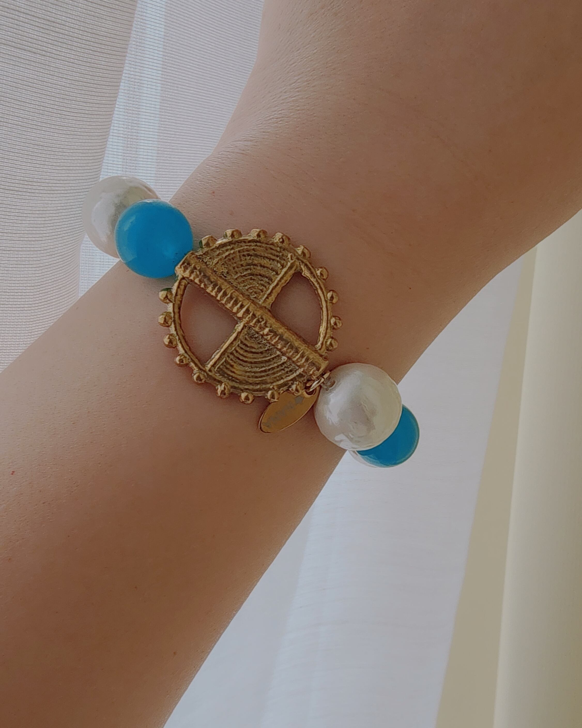 手首の一点に添えられた真鍮ビーズ。
