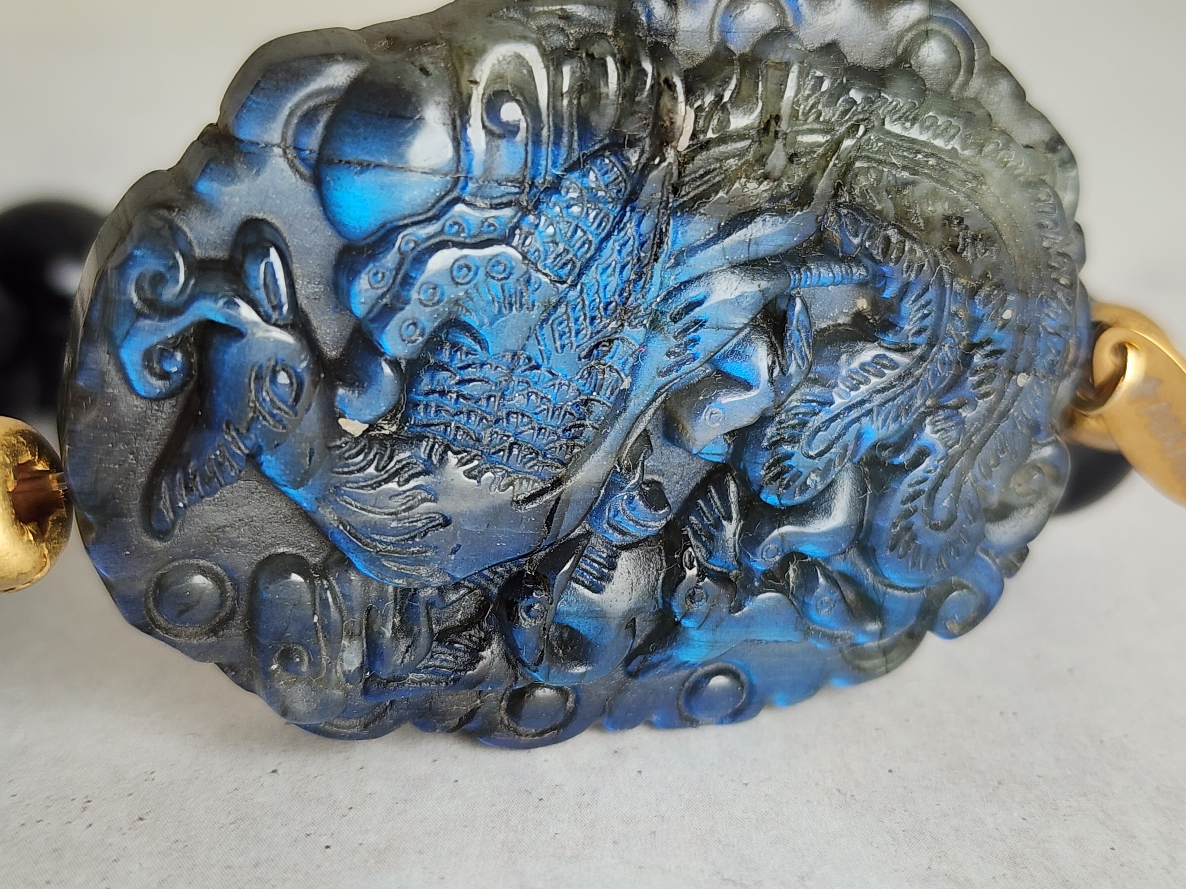 深い青に鳳凰を刻んだラブラドライトを主役に、