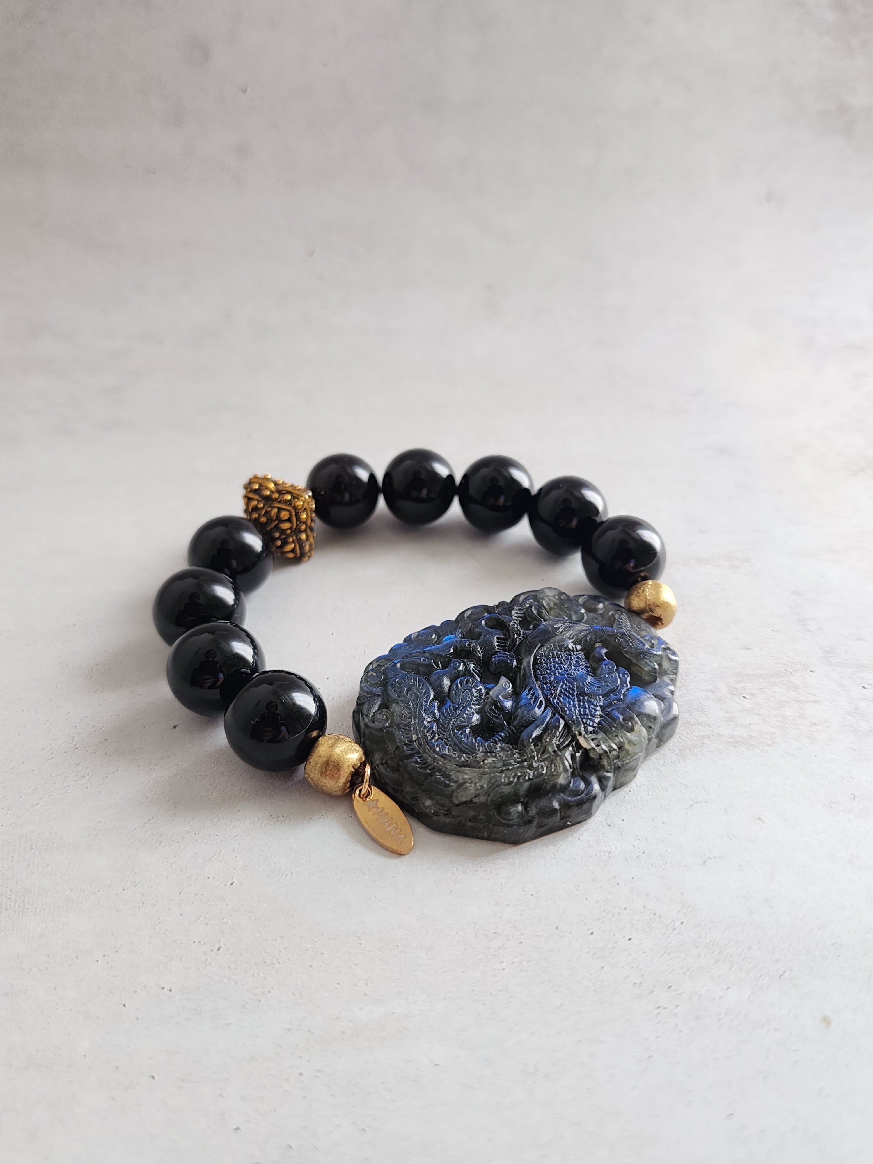 Labradorite(Phoenix carving)× Morion × Indian Metal × Brass