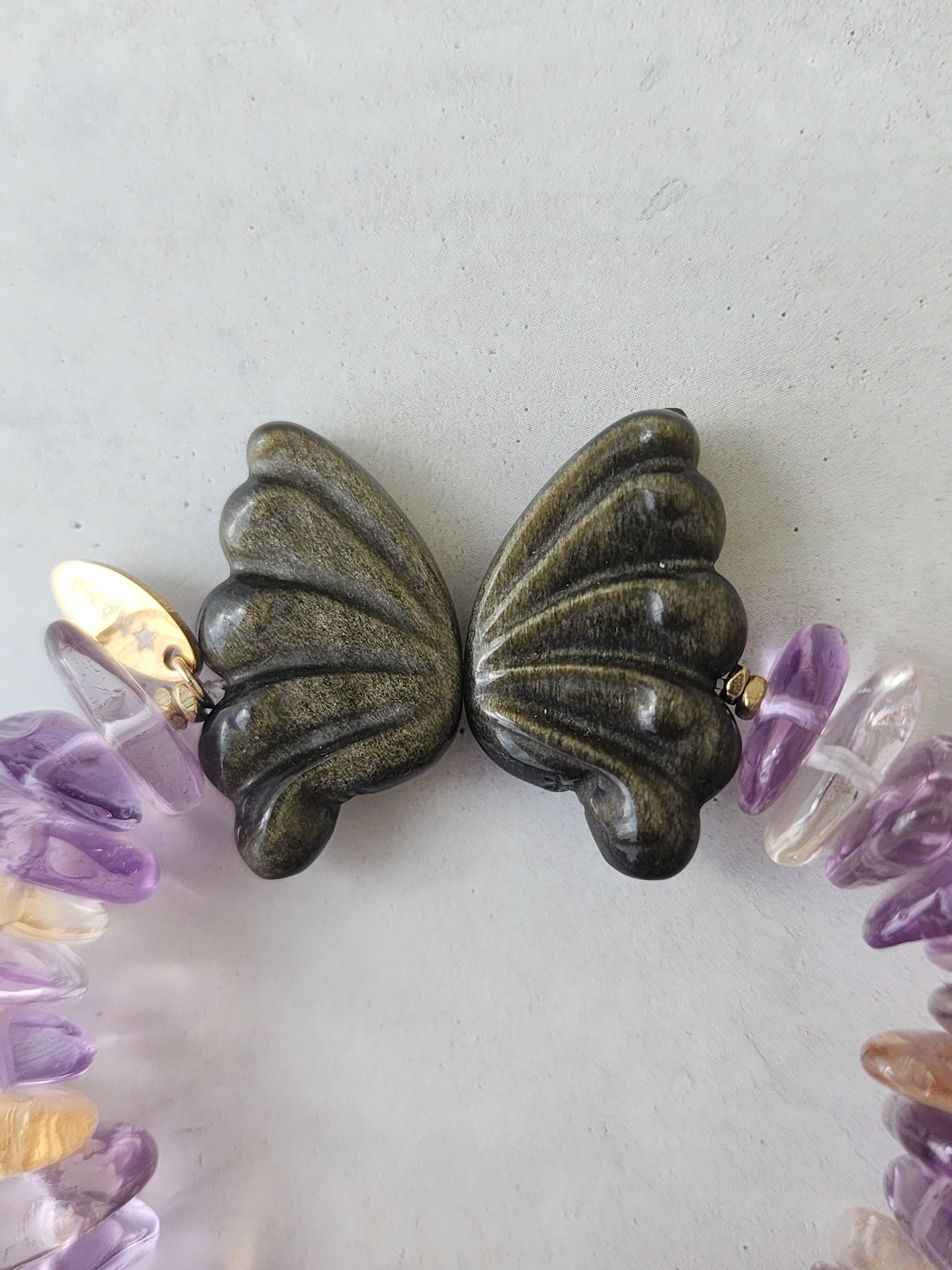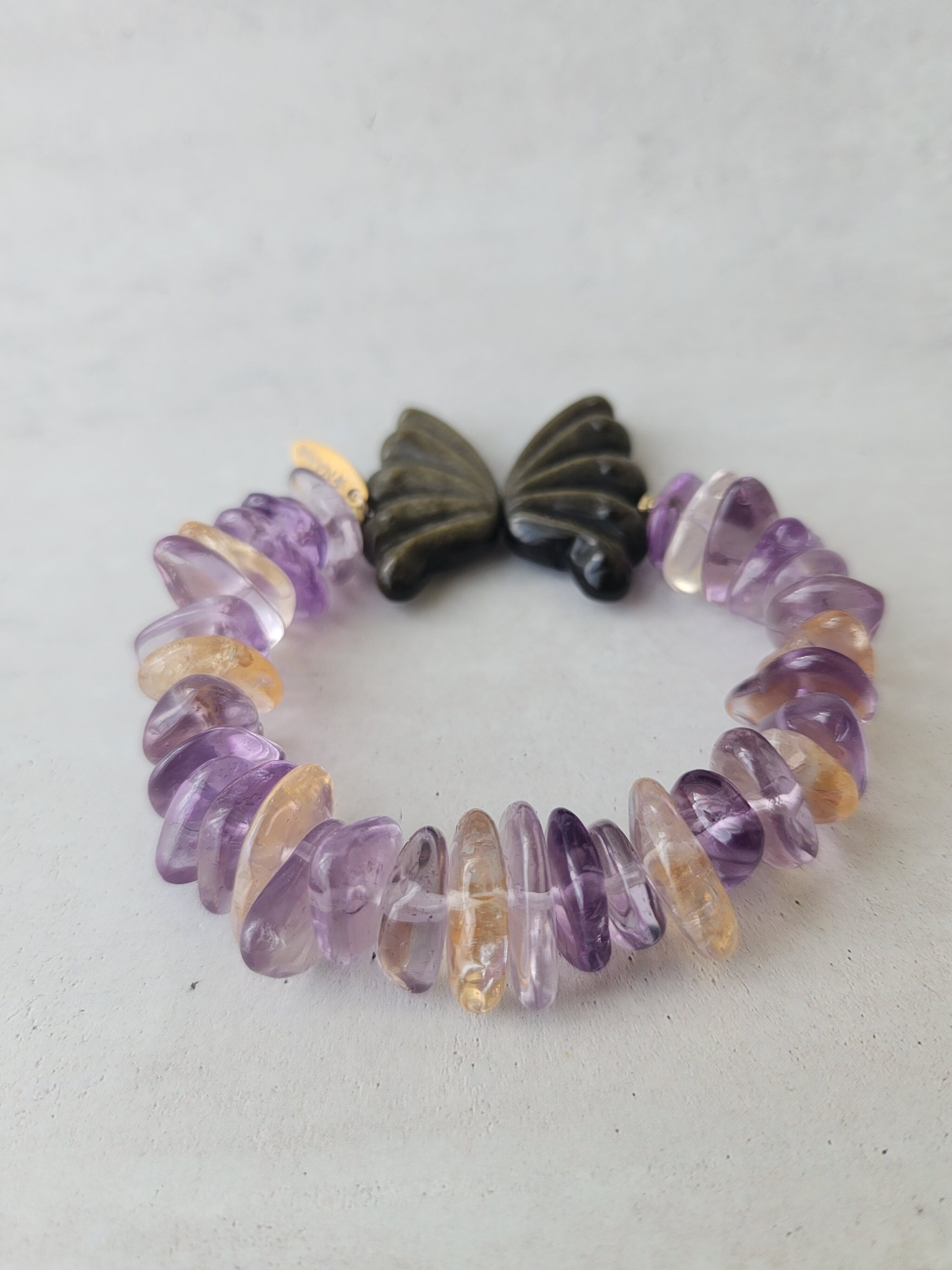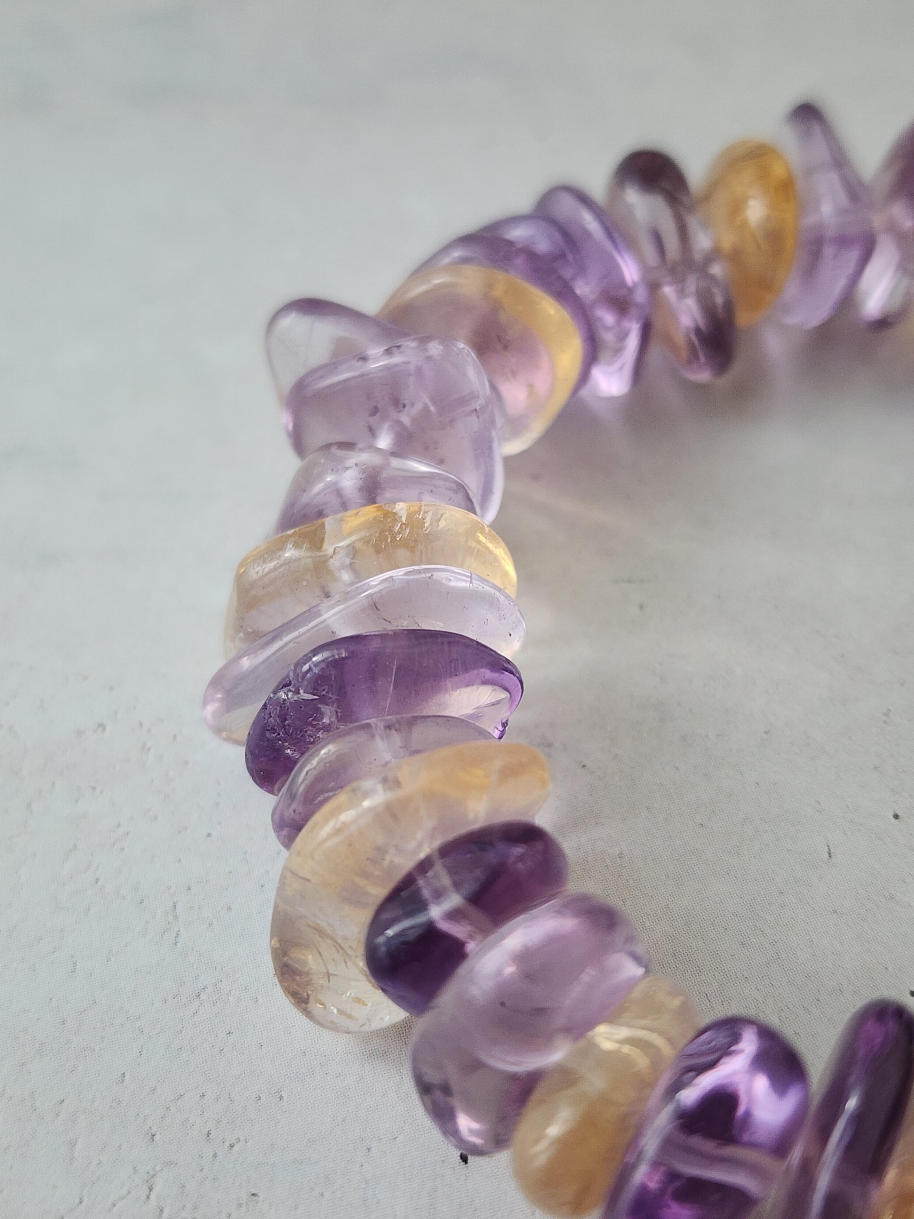 紫と黄金がゆっくり溶け合うアメトリンを並べました。