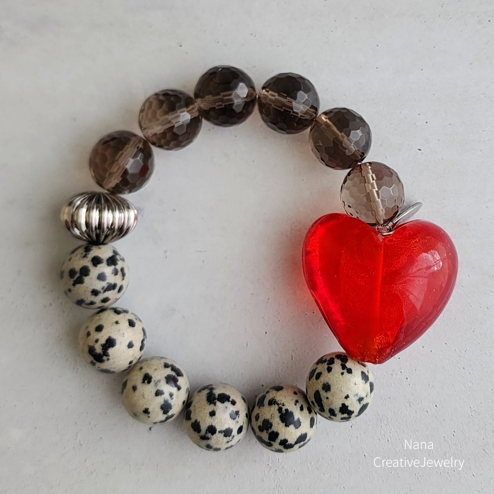 Brave Heart Dot (ガラス×スモーキークォーツ×ダルメシアンジャスパー)