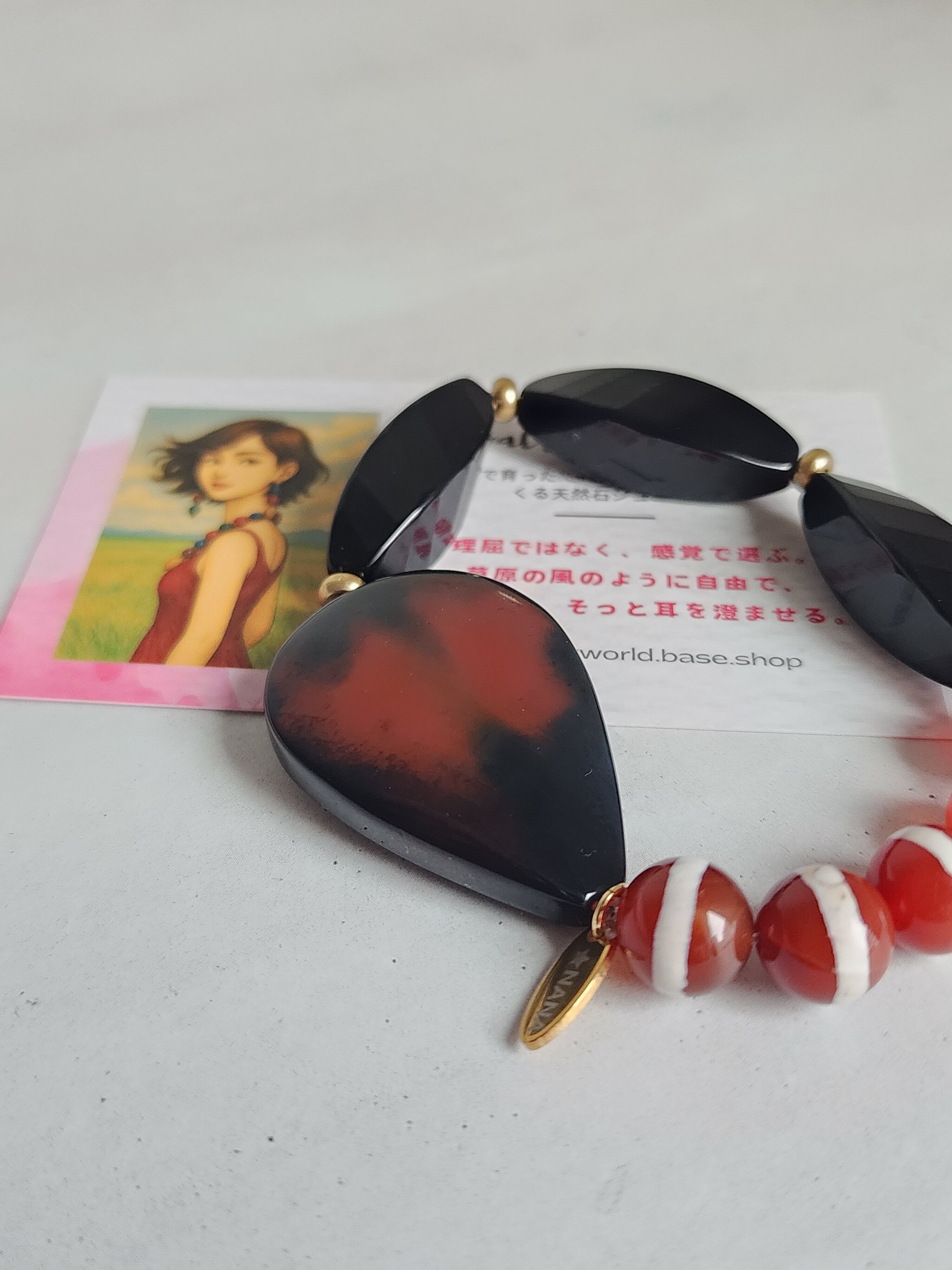 Red Eclipse (ファイヤーアゲート×薬師天珠×ブラックオニキス×真鍮)