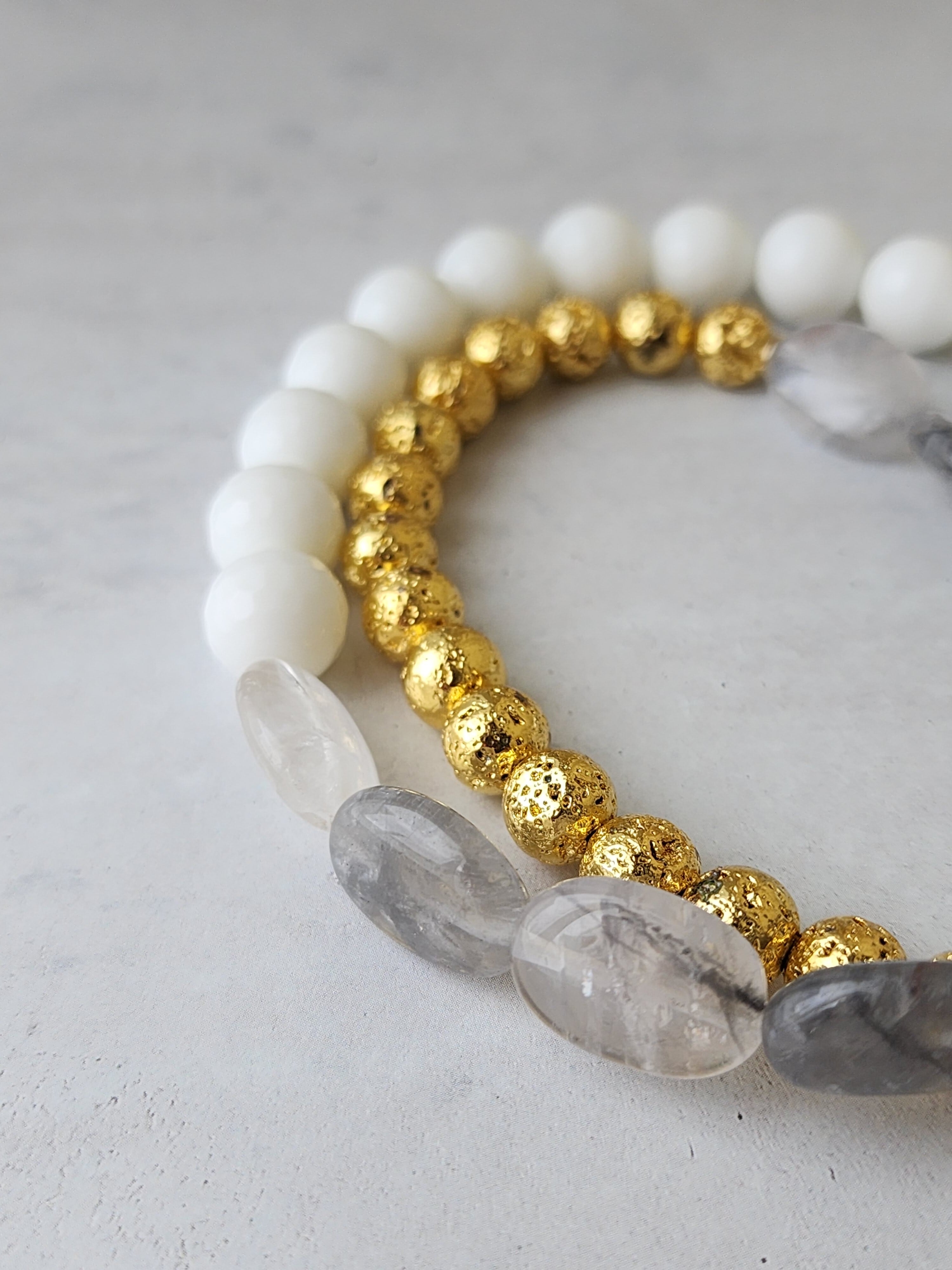 【再販】White Eclipse (ホワイトオニキス×溶岩石×クラウディクォーツ)