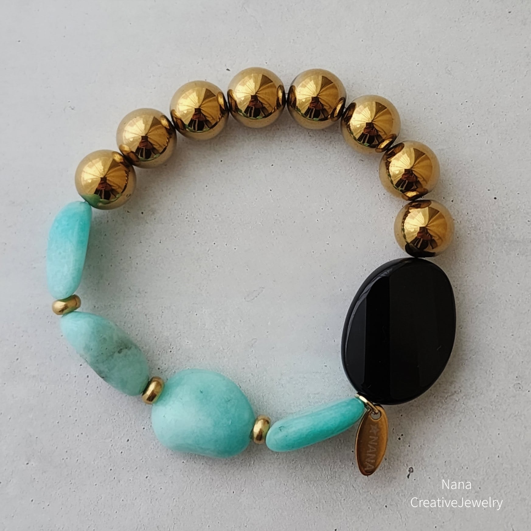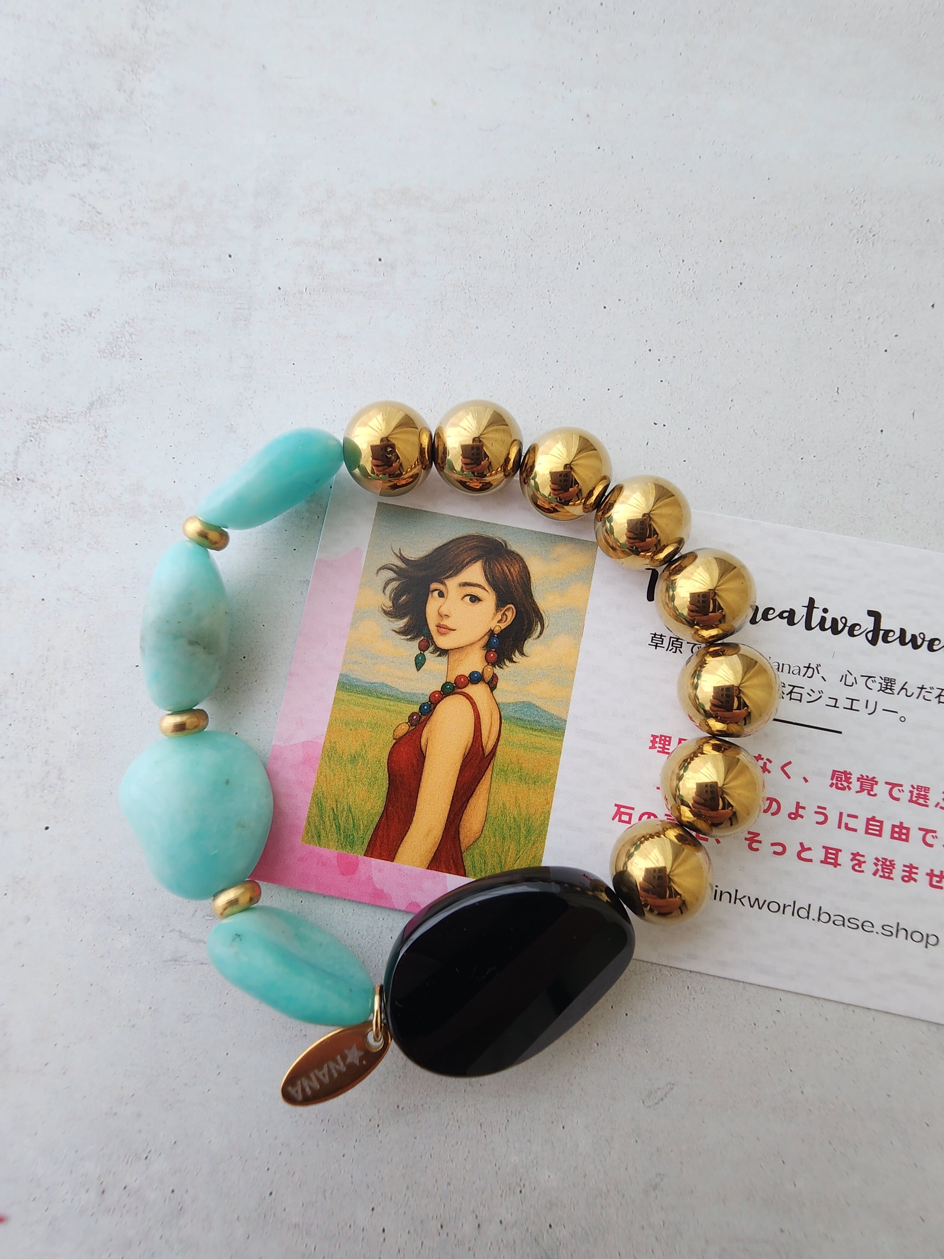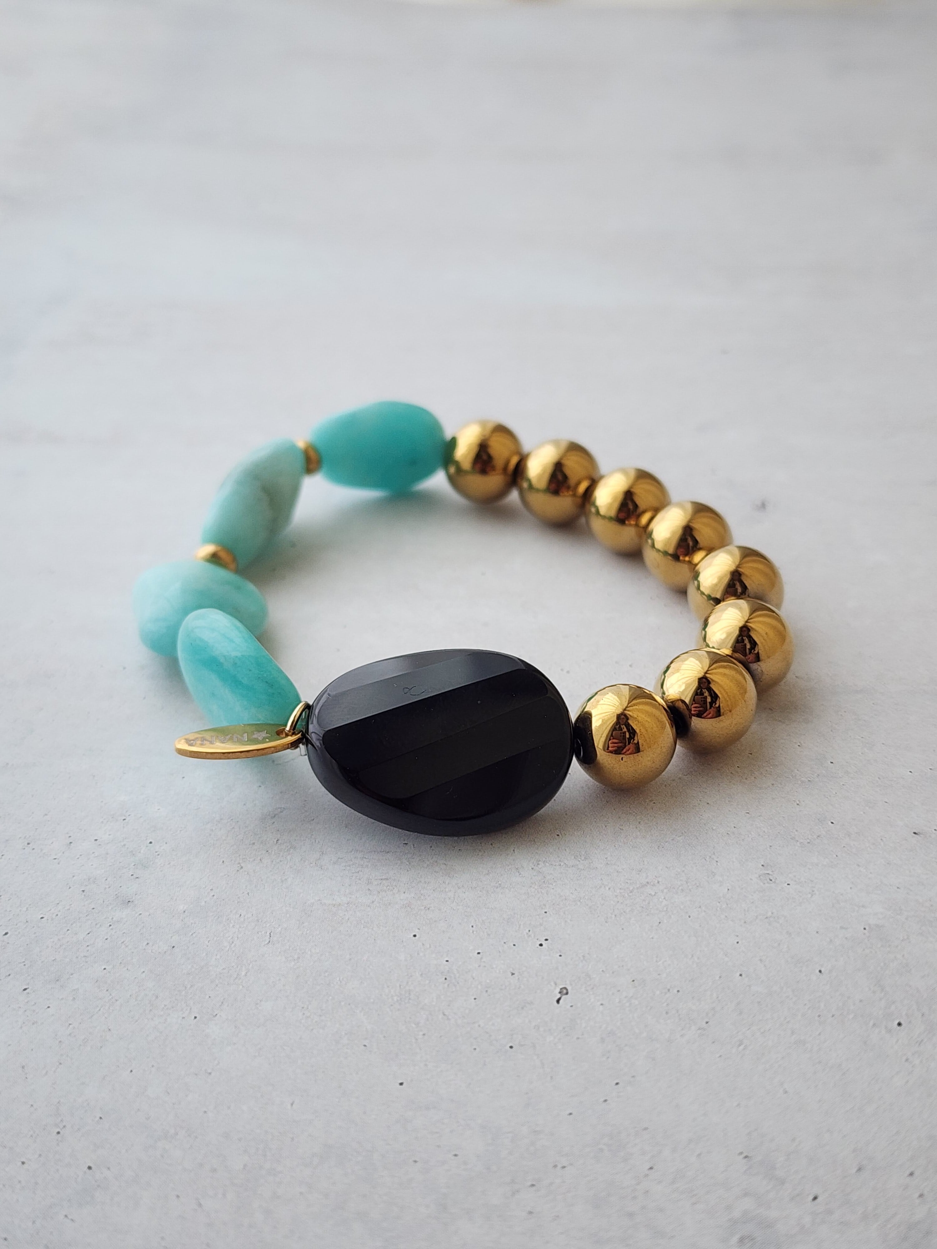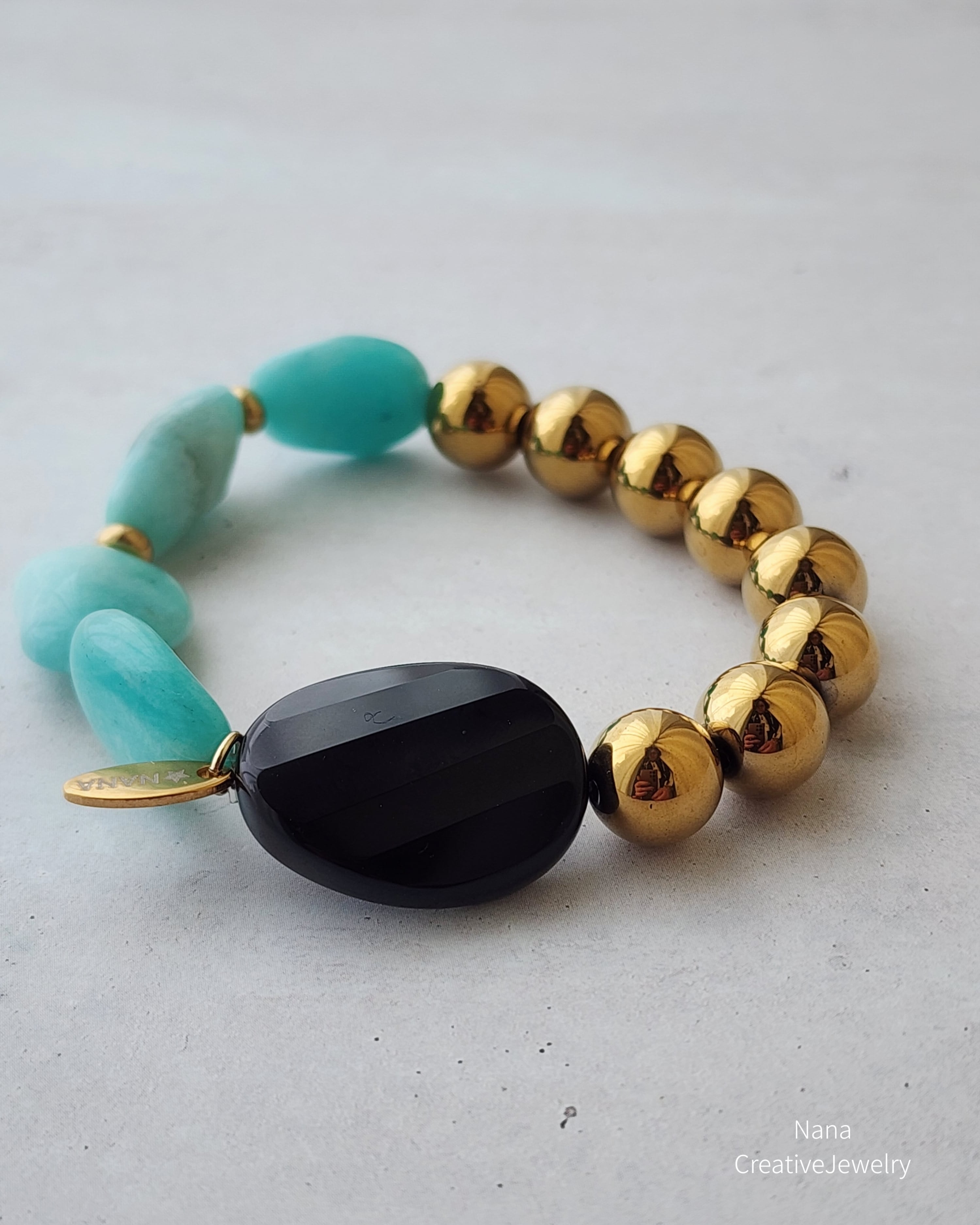 【再販】Midnight Lagoon (アマゾナイト×ヘマタイト×ブラックオニキス×真鍮)