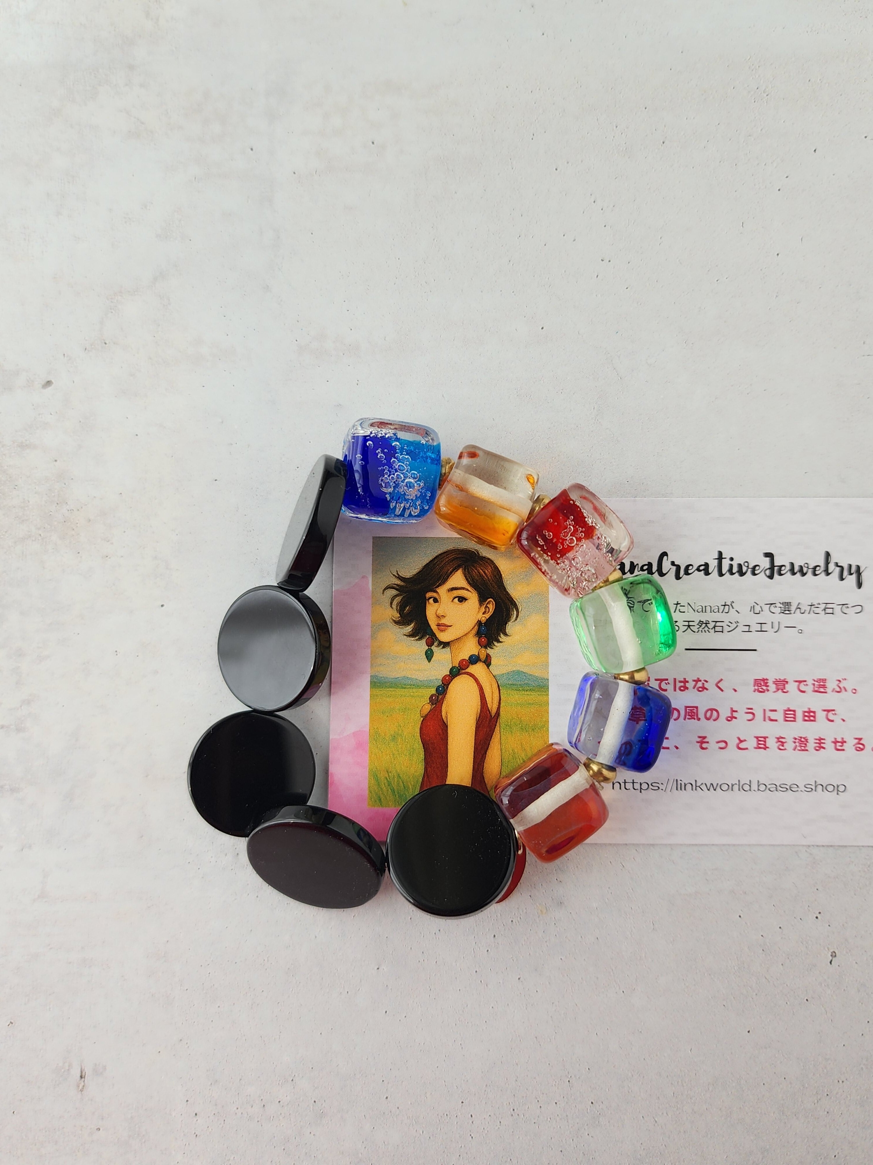 Black & Bright(ブラックオニキス×ガラス×真鍮)