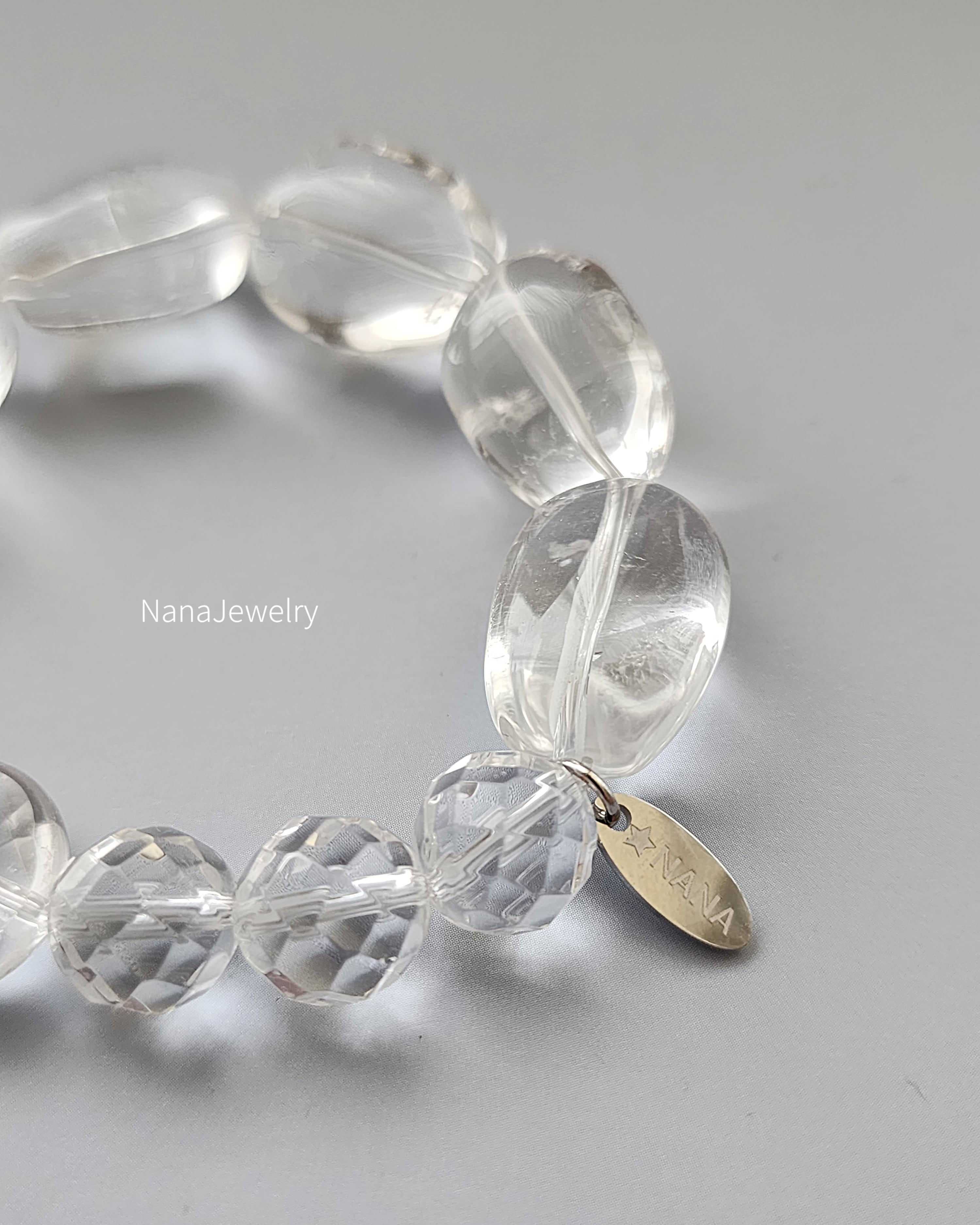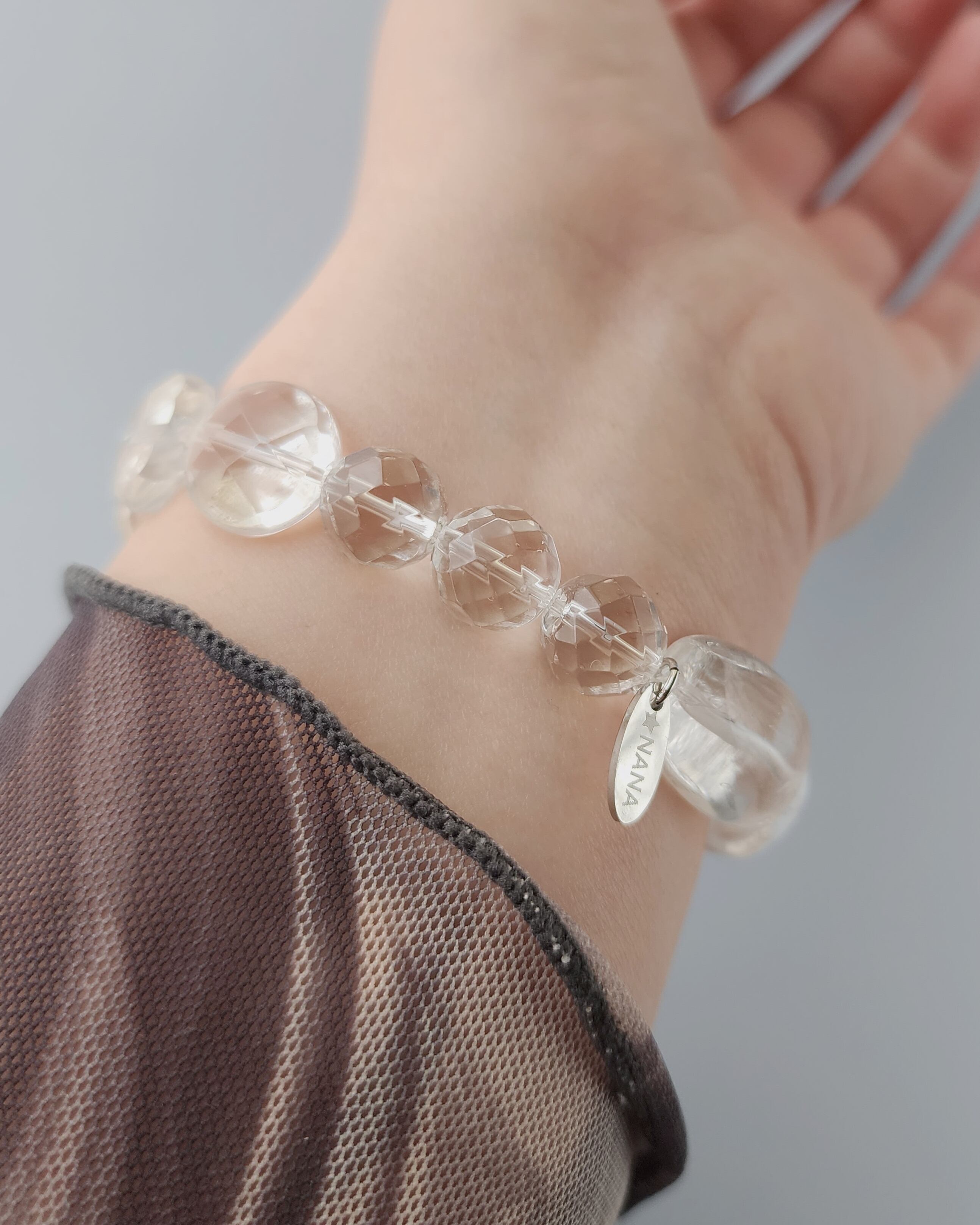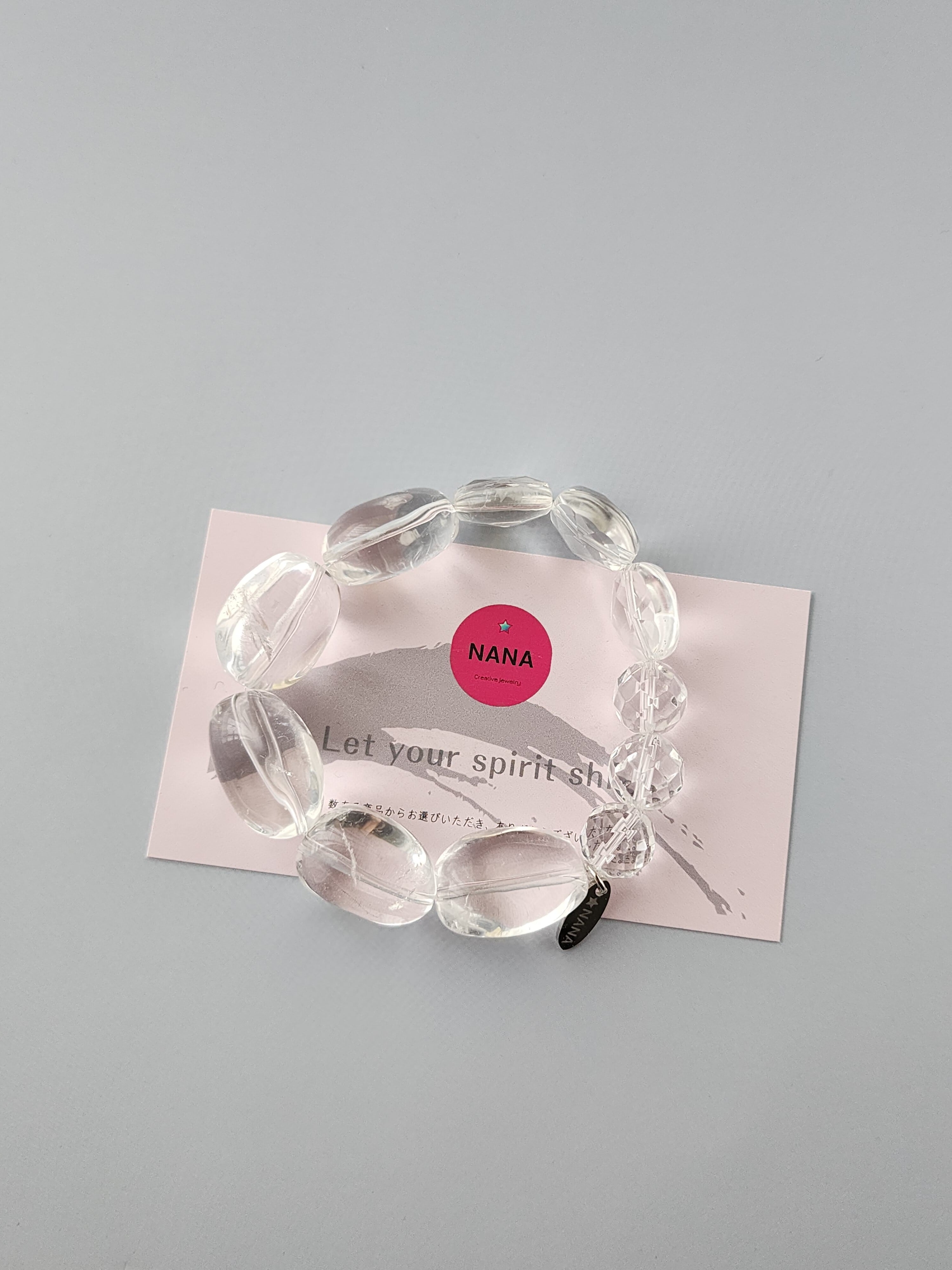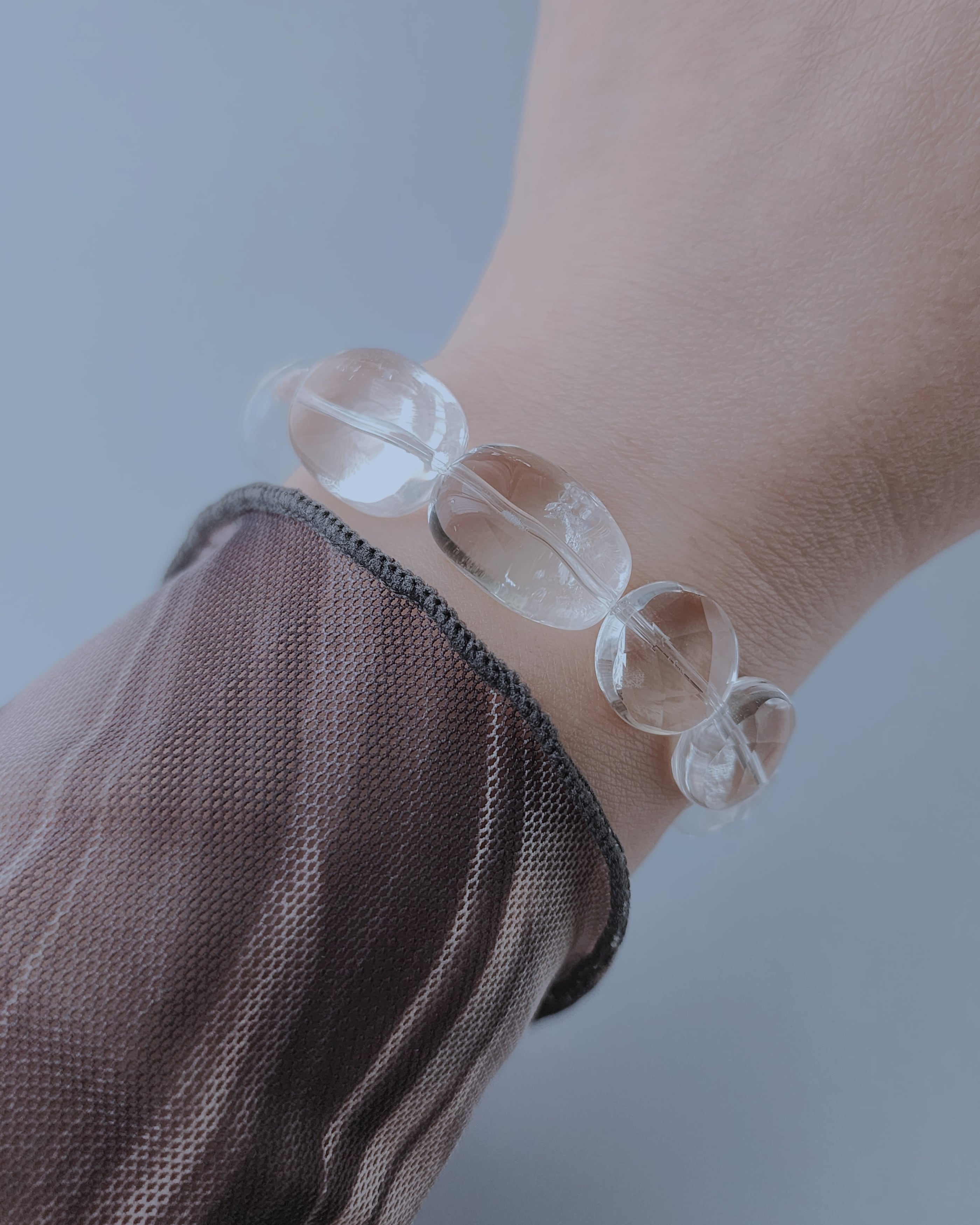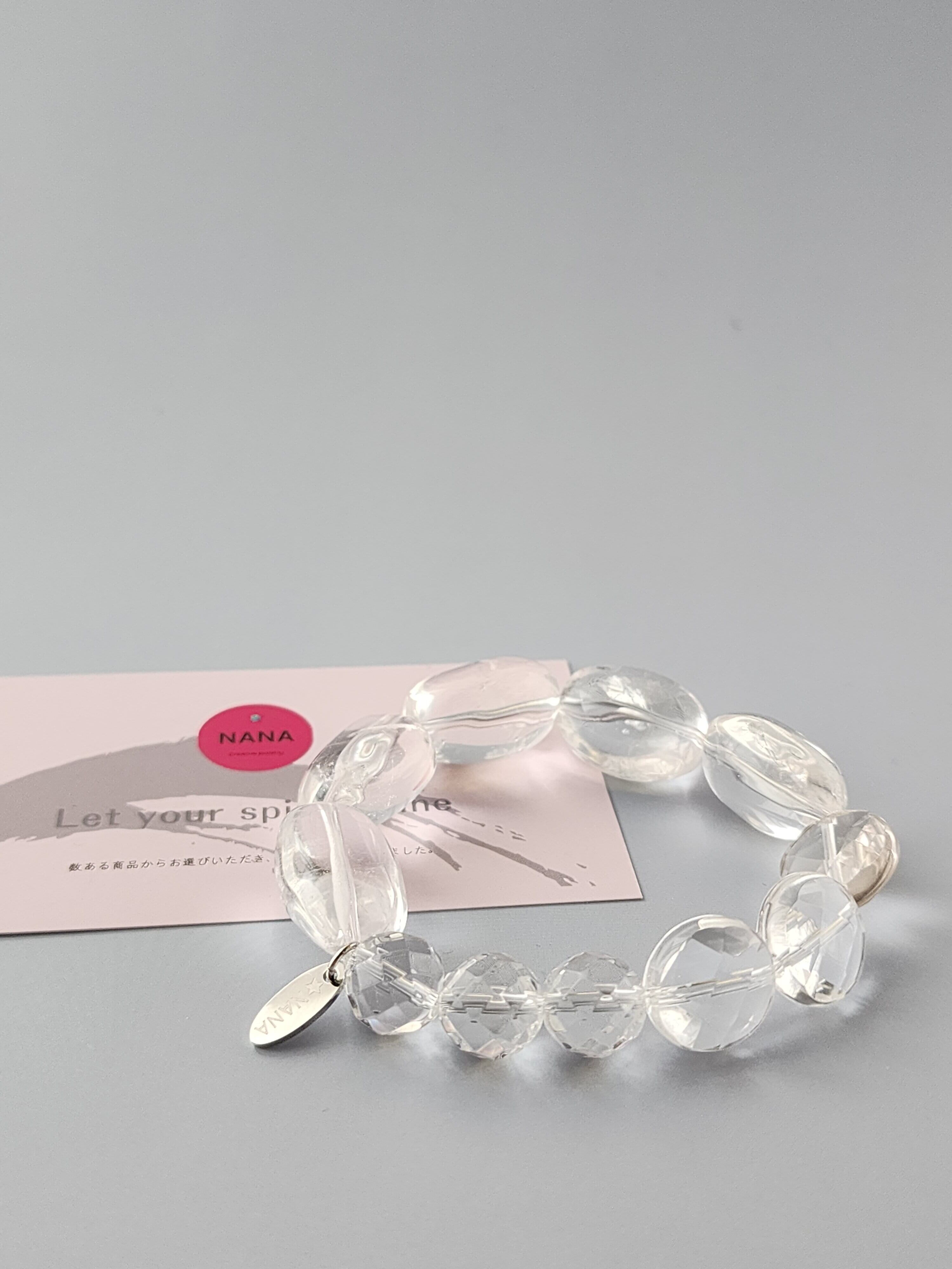 光をそのまま束ねたような、クリスタルだけのブレスレット。
