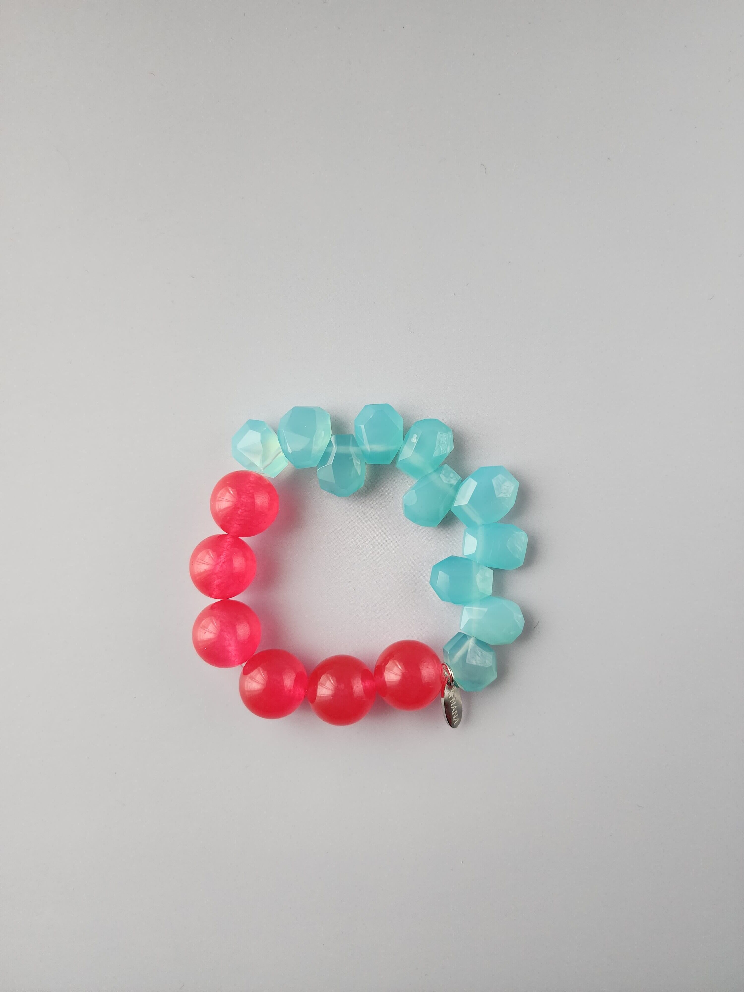 ぱっと目を引く配色を、軽やかにまとめたブレスレットです。