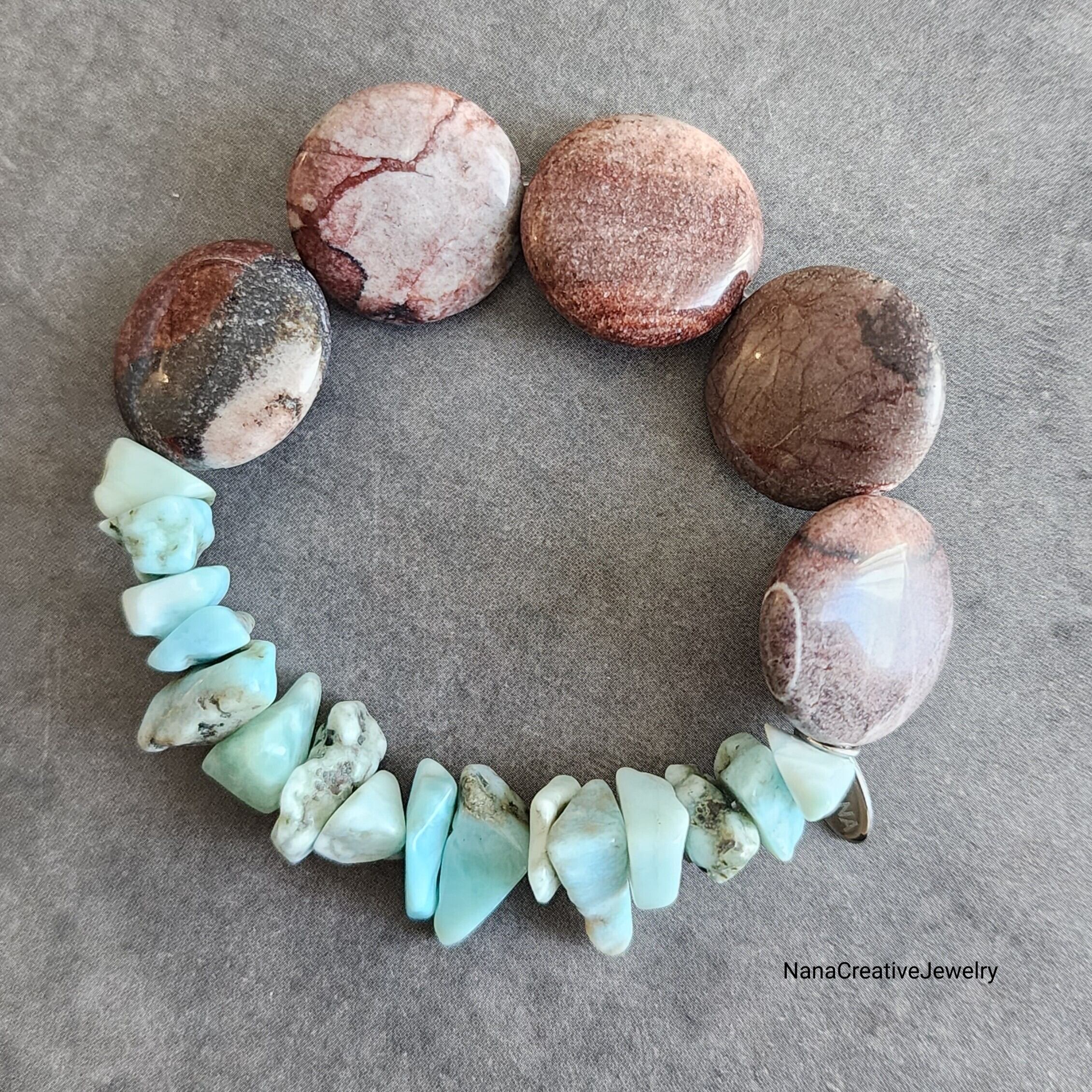 【再販】Two tone bracelet (レッドピクチャージャスパー×ラリマー)