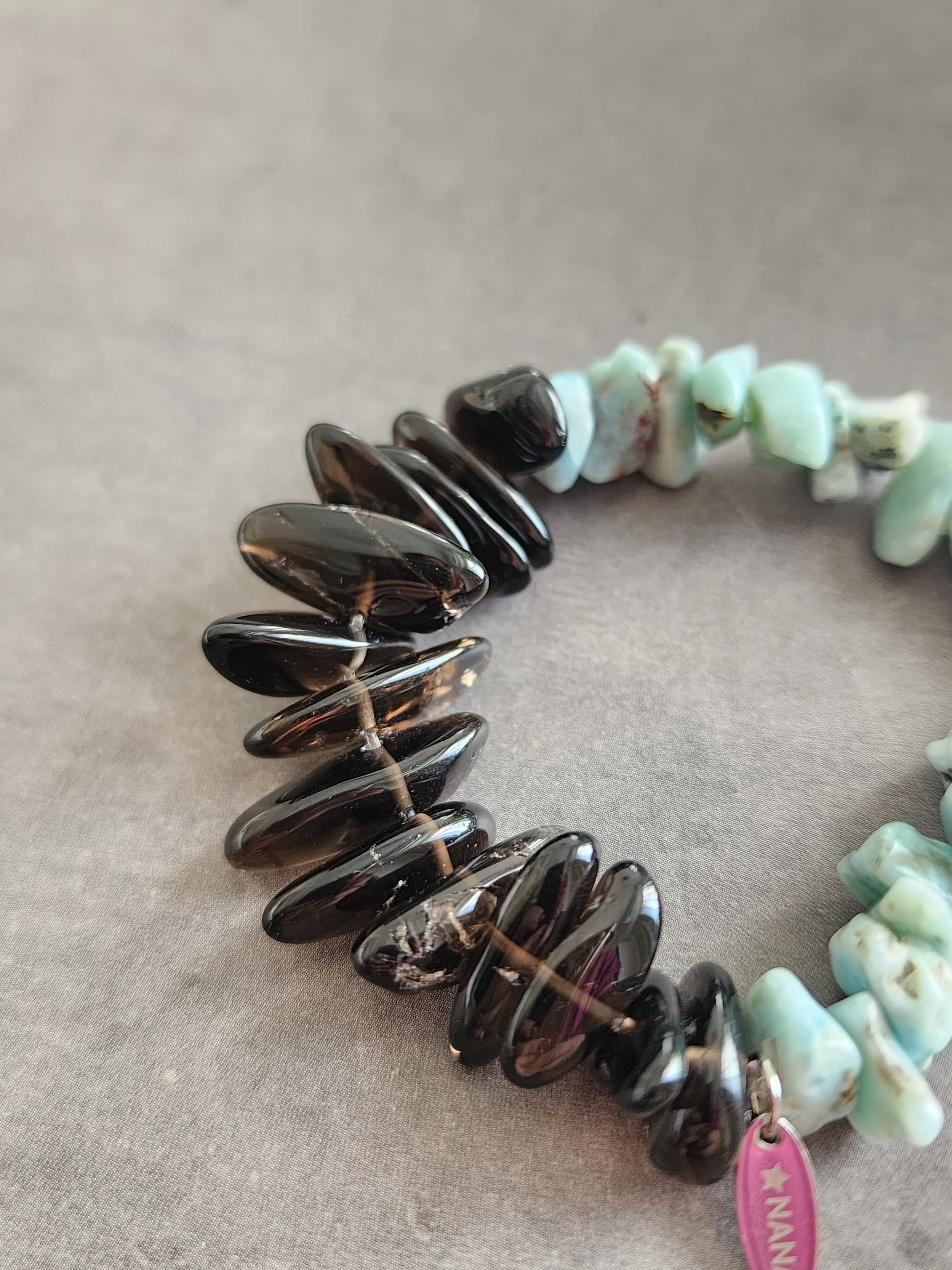 【再販】Two tone bracelet (ラリマー×スモーキークォーツ)