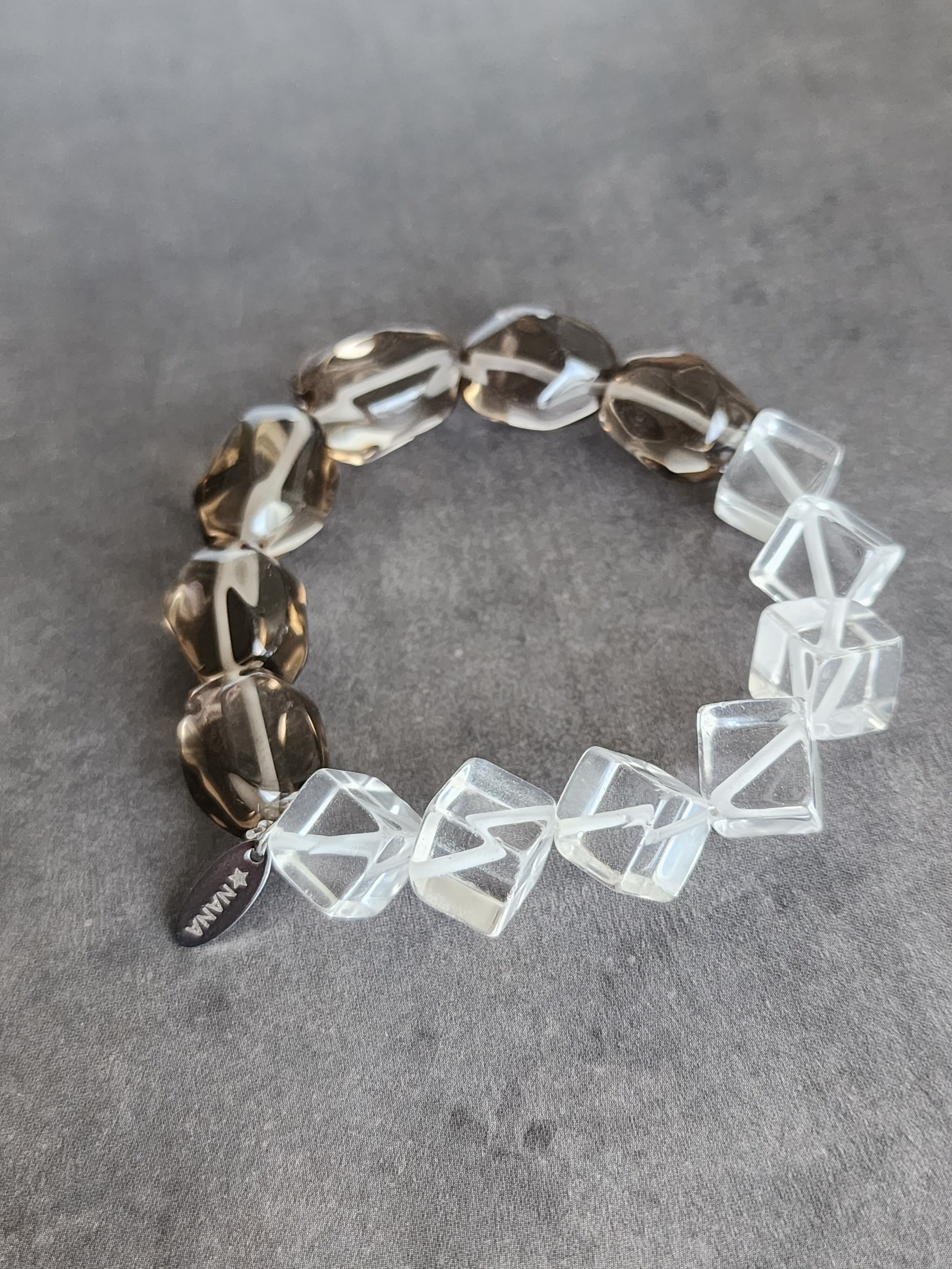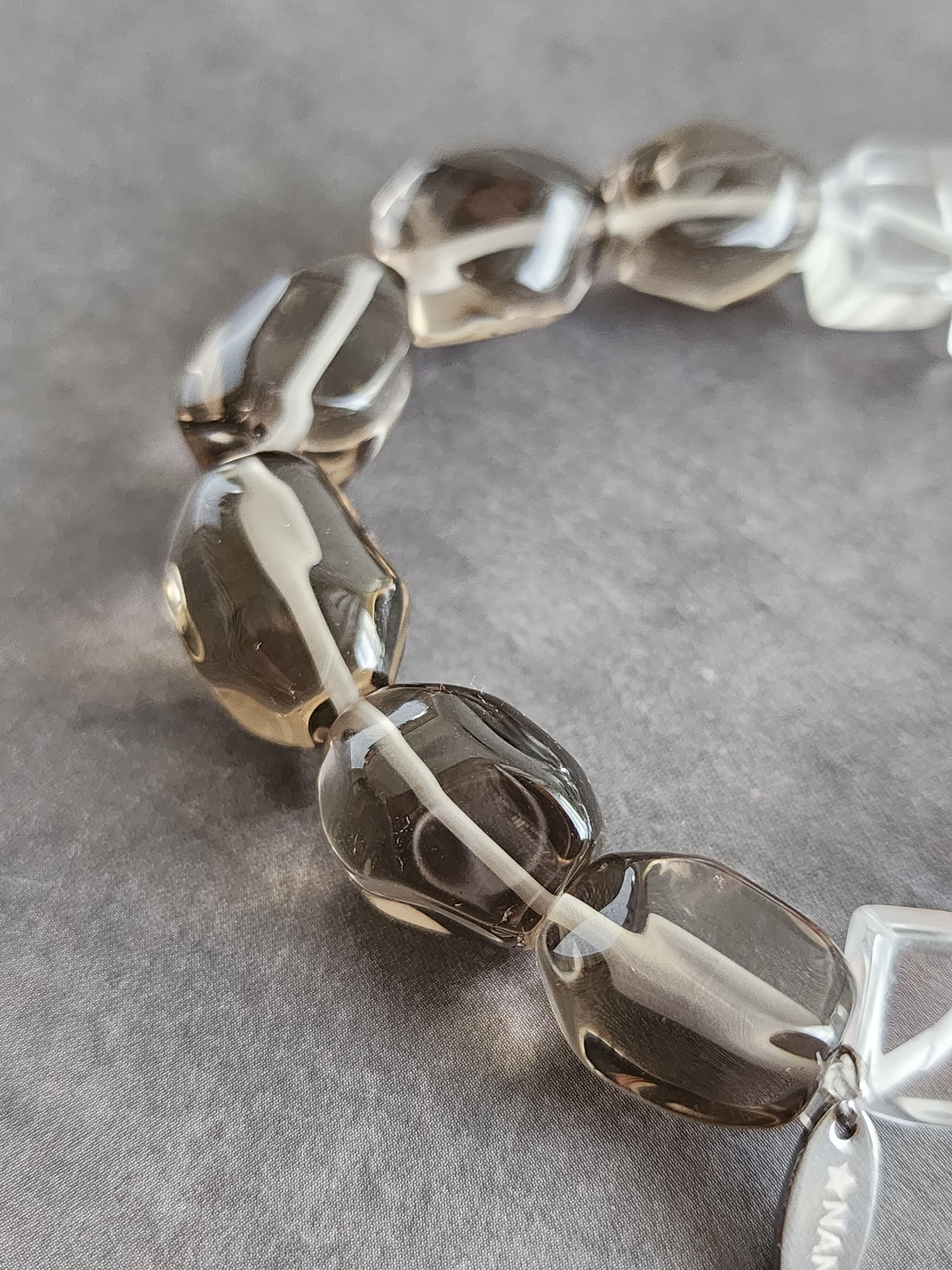 【再販】Two tone bracelet (スモーキークォーツ×クリスタル)