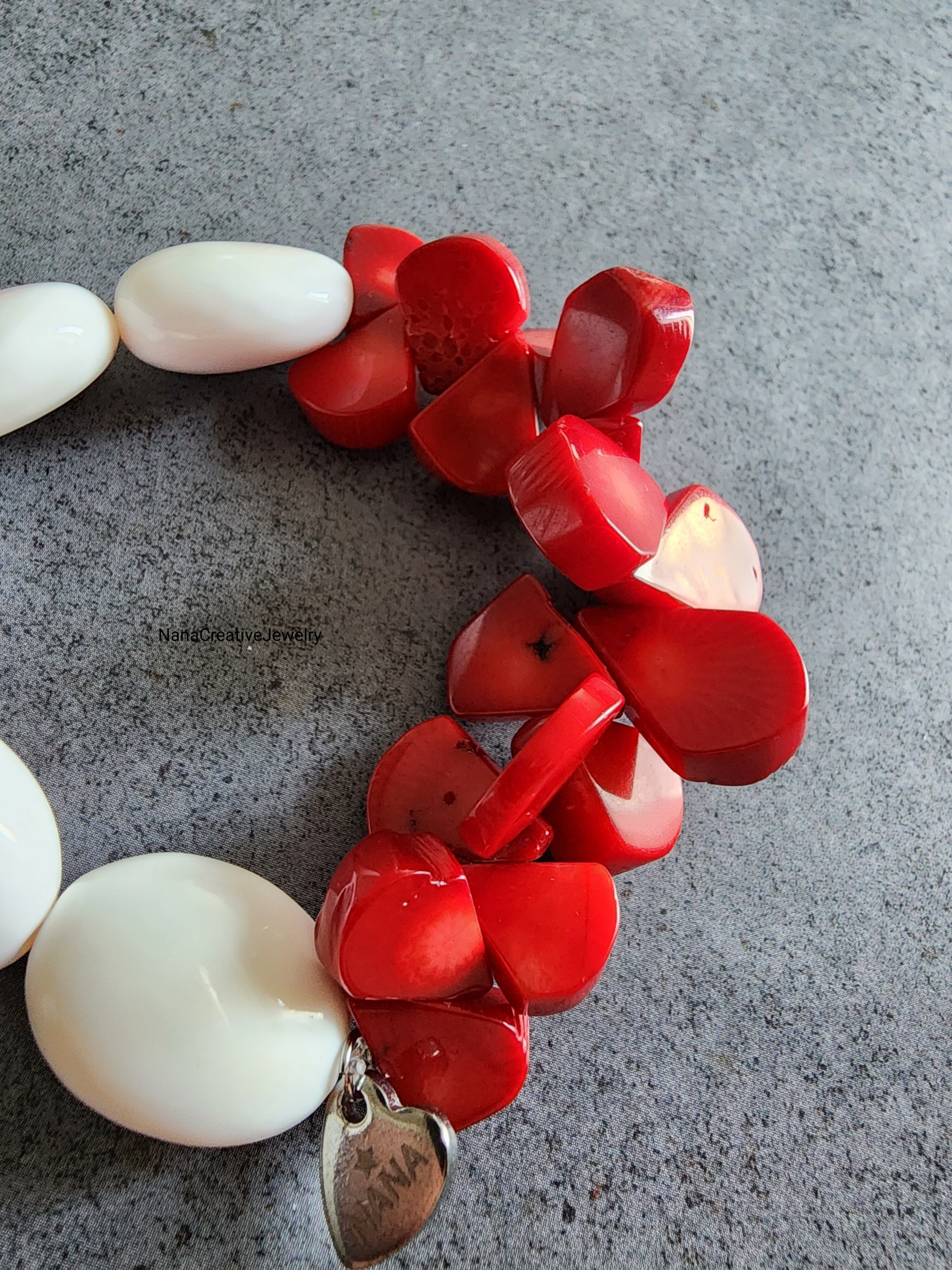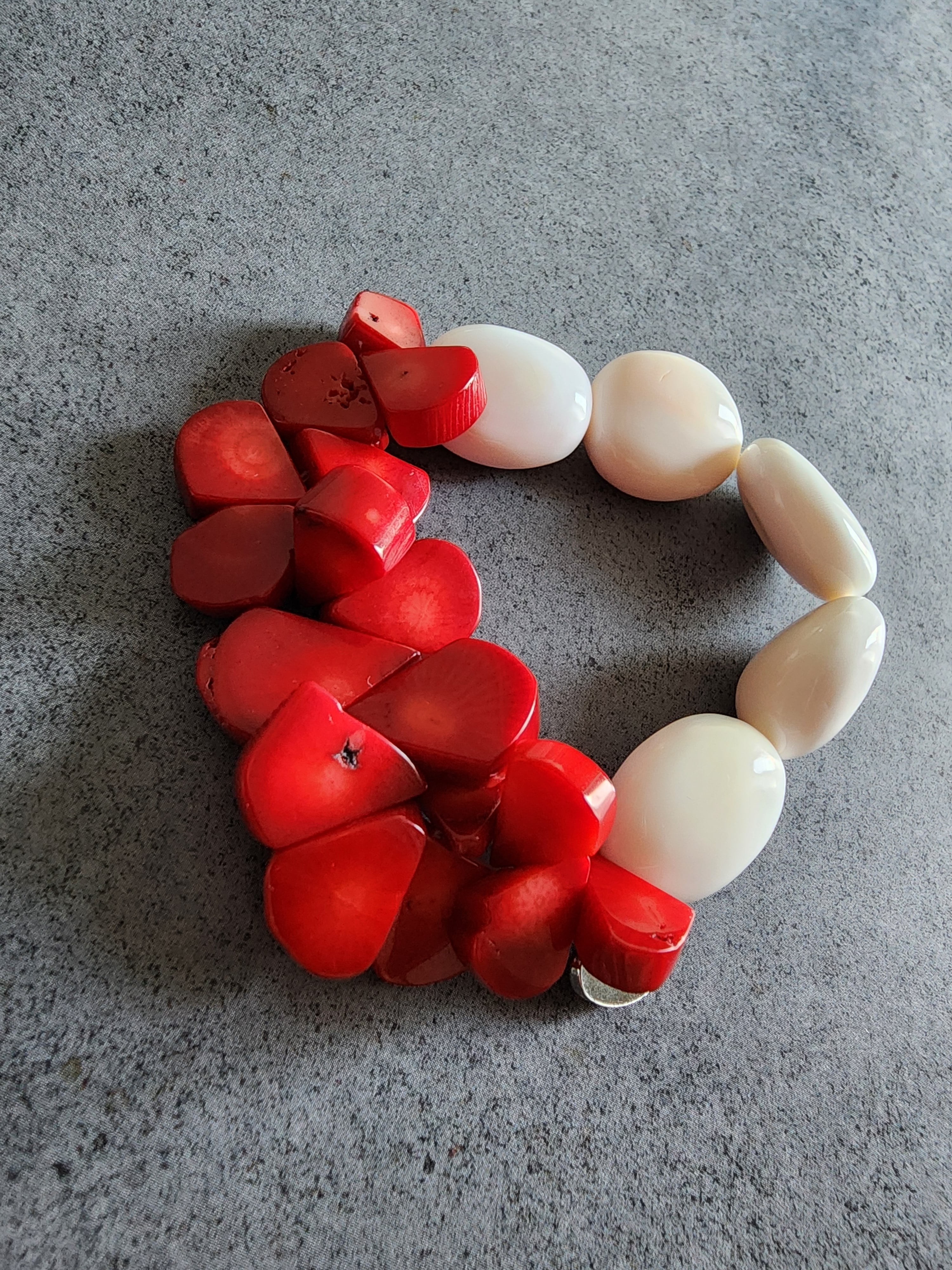 【再販】Two colors bracelet(クィーンコンクシェルAAA×コーラル)