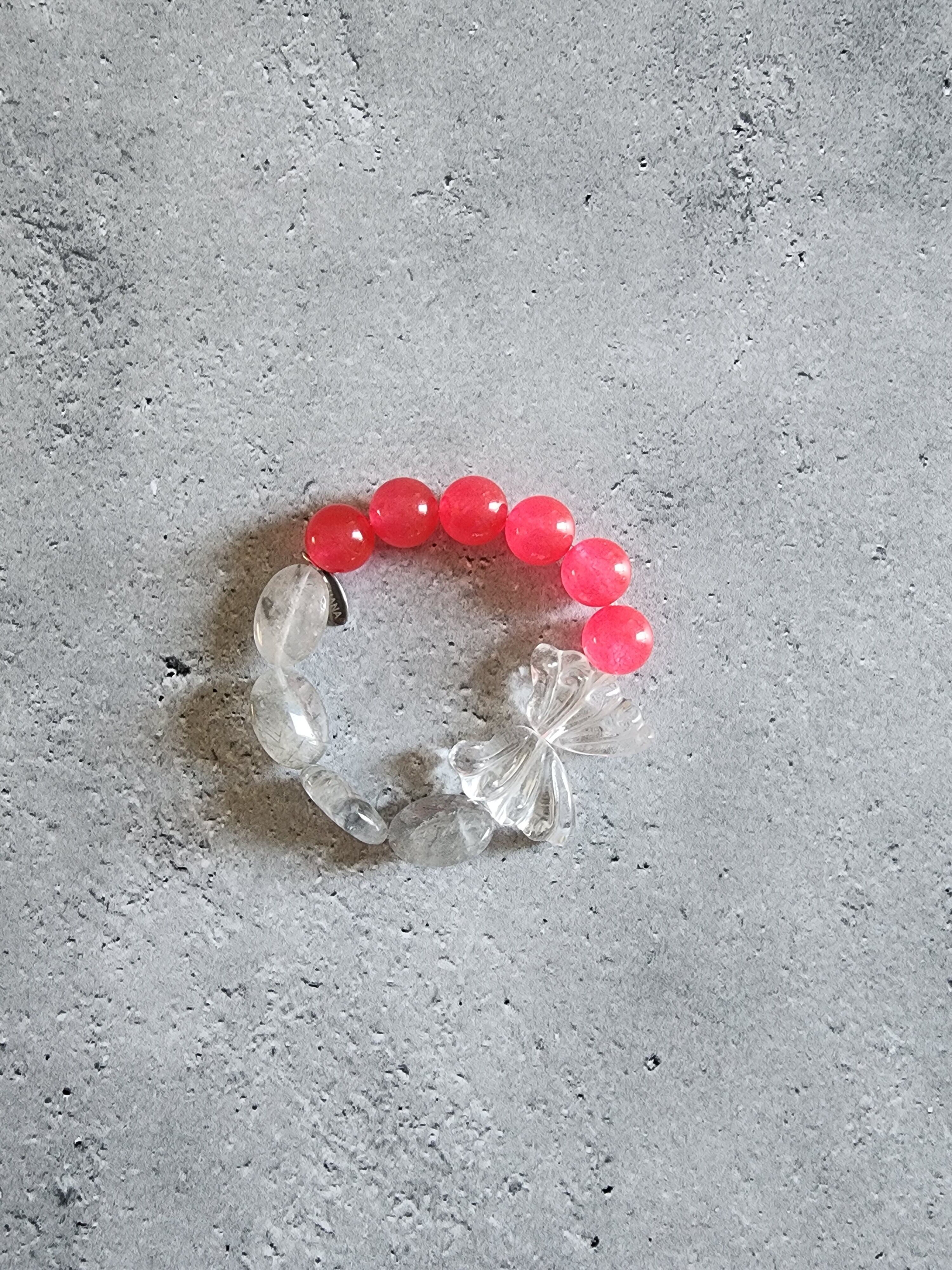 【一点物】Butterfly bracelet (クリスタル×グレークォーツ×ジェード)