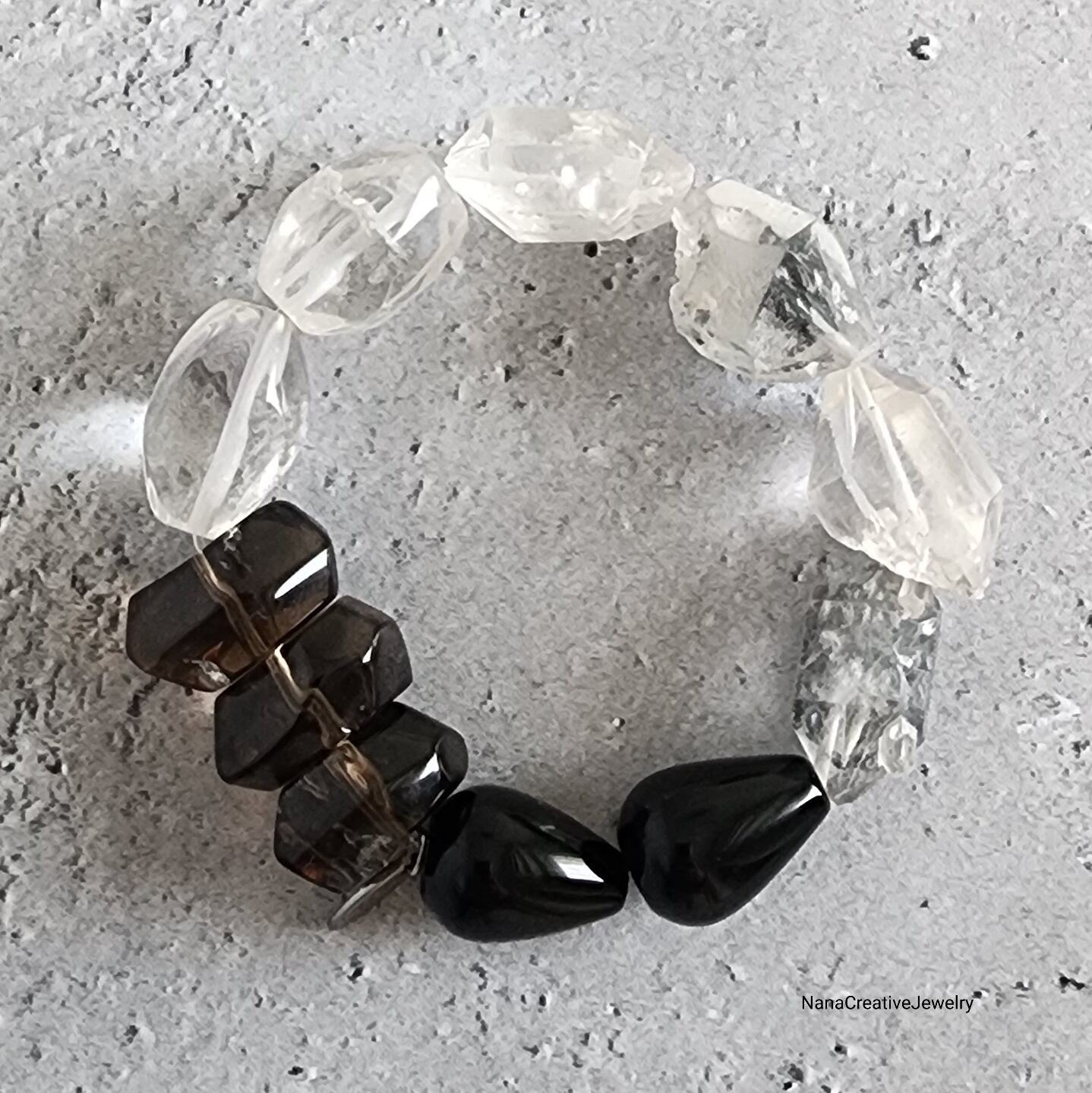 【再販】Monotone bracelet (クリスタル×スモーキークォーツ×ブラックオニキス)