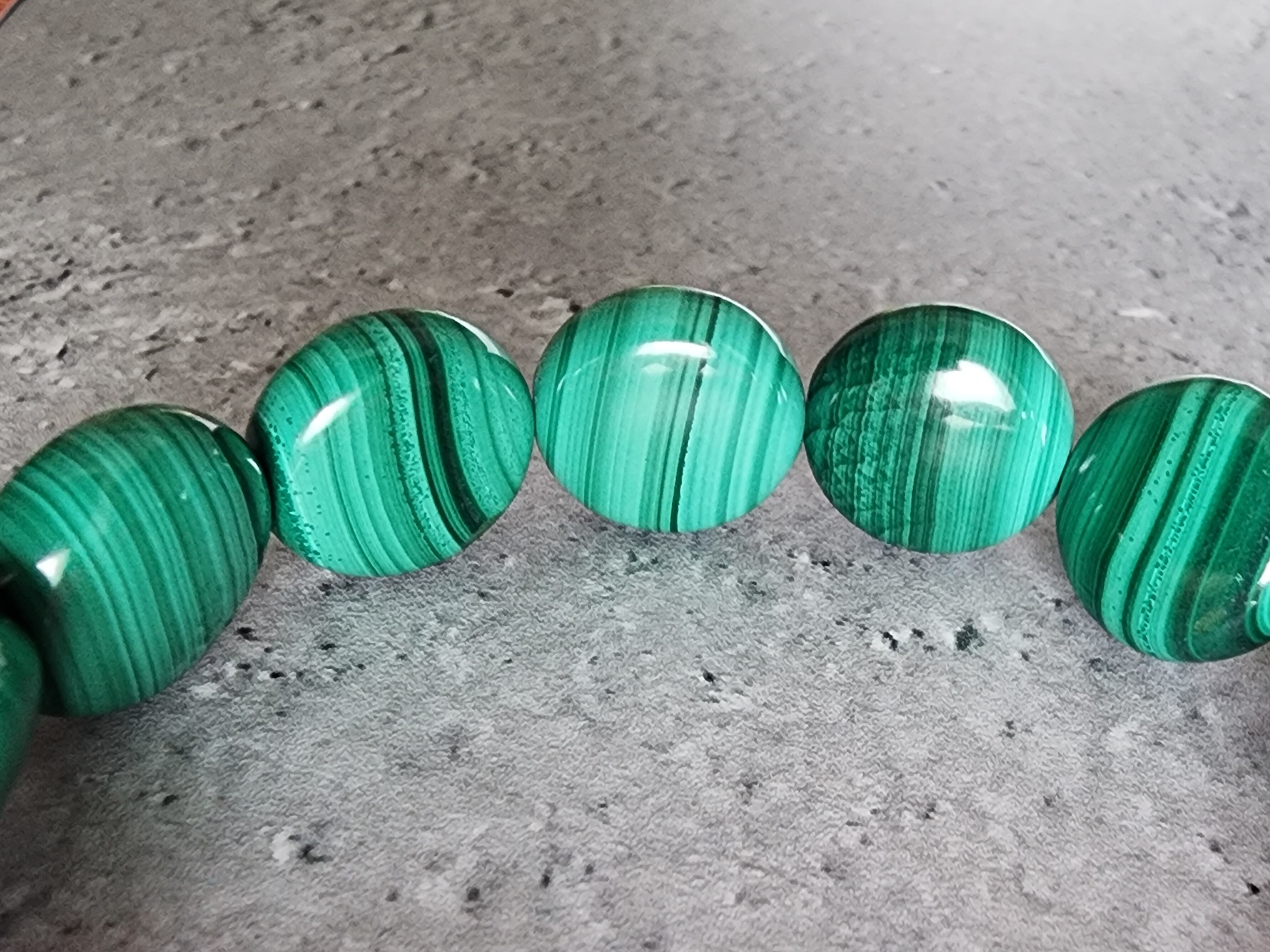 マラカイトの縞模様の形成が複雑なため二つとして同じものはありません。また、マラカイトは古来ヨーロッパでとても人気な宝石です。