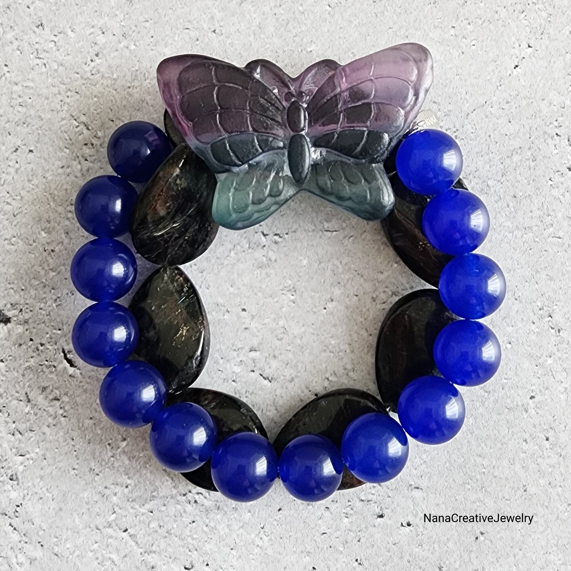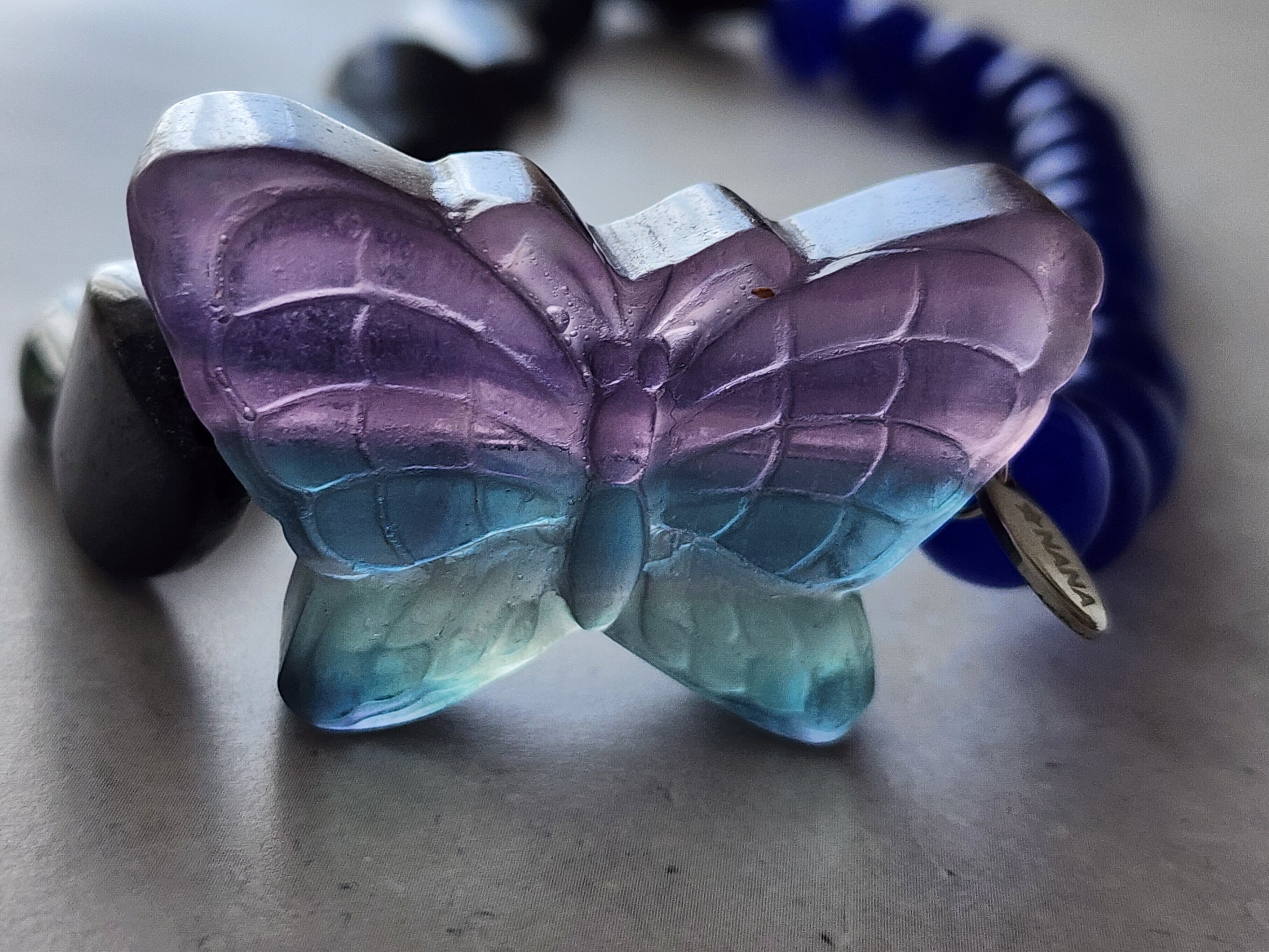 フローライトのカラフルなグラデーションを最大限に表現してくれる蝶々形のフローライトは美、進化、変化、復活、成長を意味します。蛹は一度蝶に変身すると、二度と蛹に戻ることはありません。