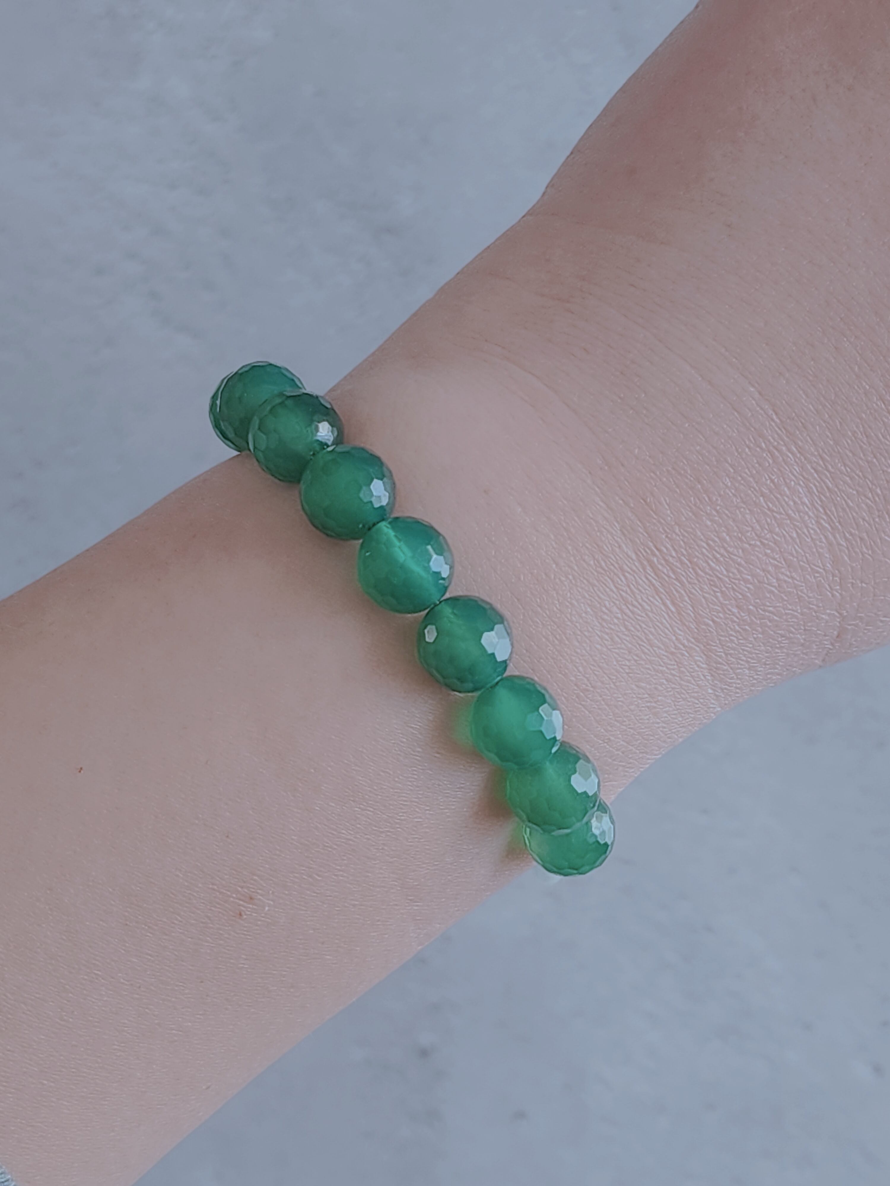 カットの面がフラットな故にみずみずしい印象のグリーンアゲートとブルーのグラデーションと絶妙な透明感がチャーミングなアクアマリンチップの組み合わせです。