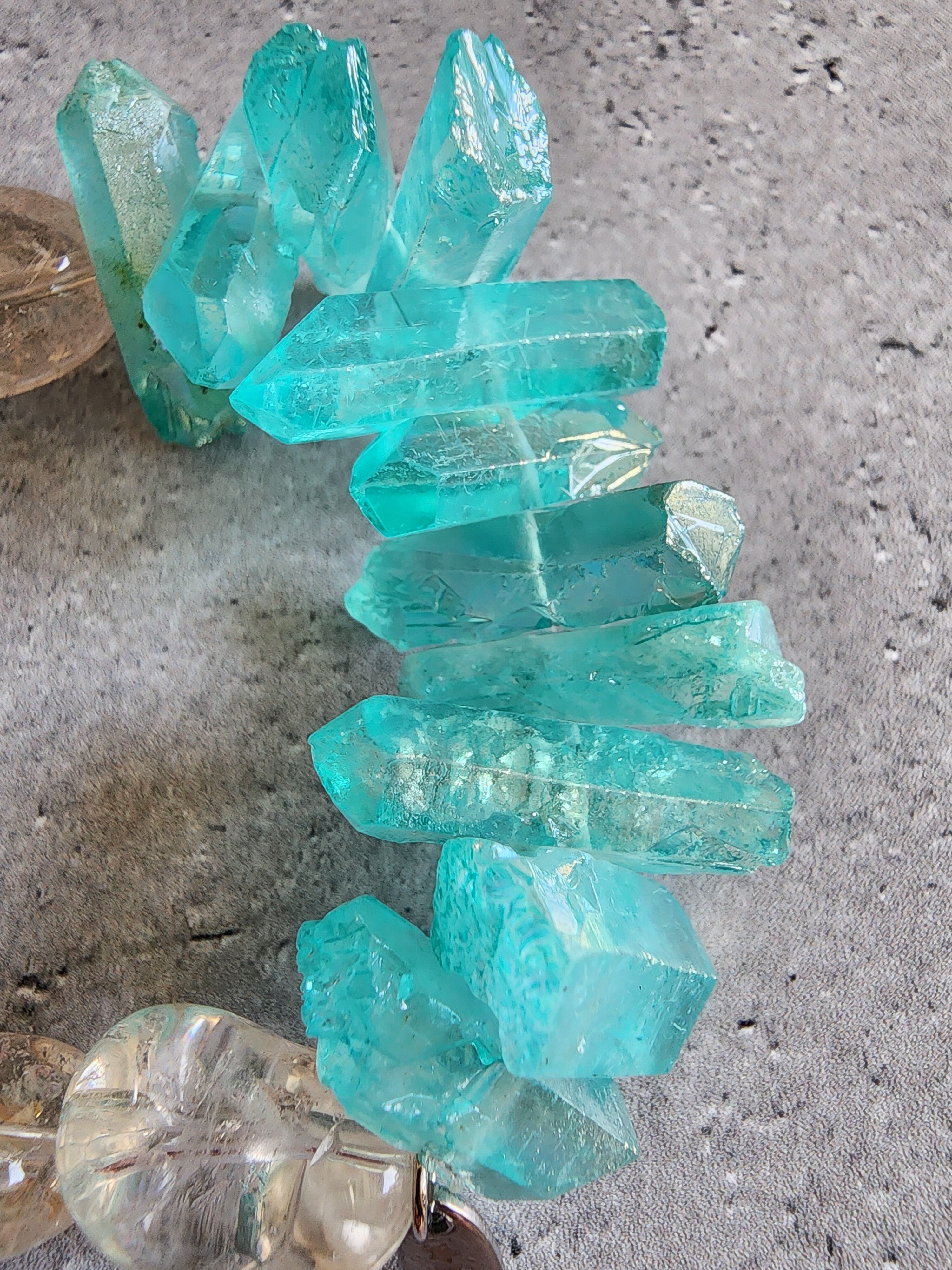 透明感の高いクリスタルラフロックとビビットなブルーカラークリスタル氷柱の環境浄化、全体運サポートに集中するアイテムです