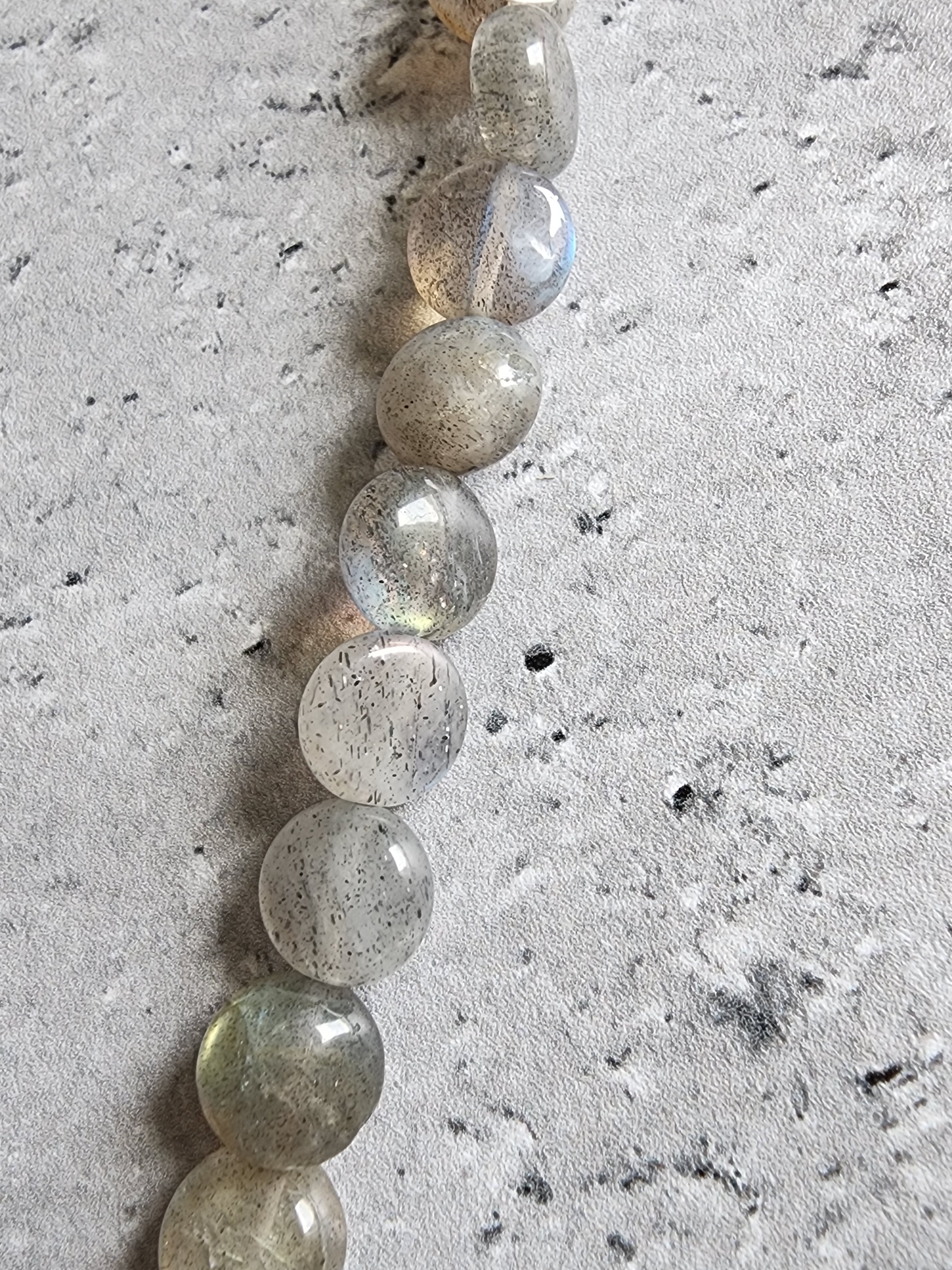 ムーンストーンとラブラドライトのオーロラのような神秘的な光に鮮やかな小粒ピンクジェードを合わせたロマンチックな印象のアイテムです。