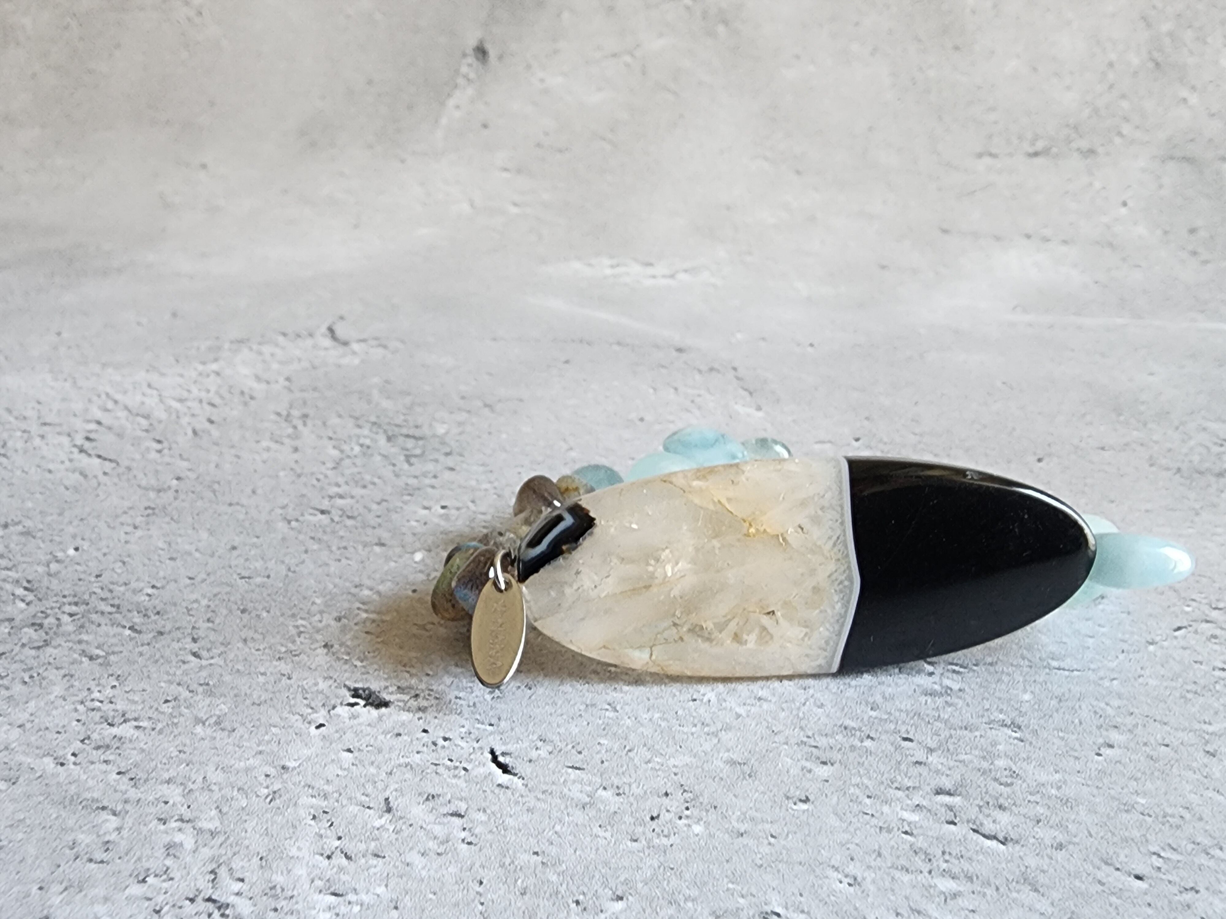 Multicolor bracelet(オニキス×アクアマリン×ラブラドライト)