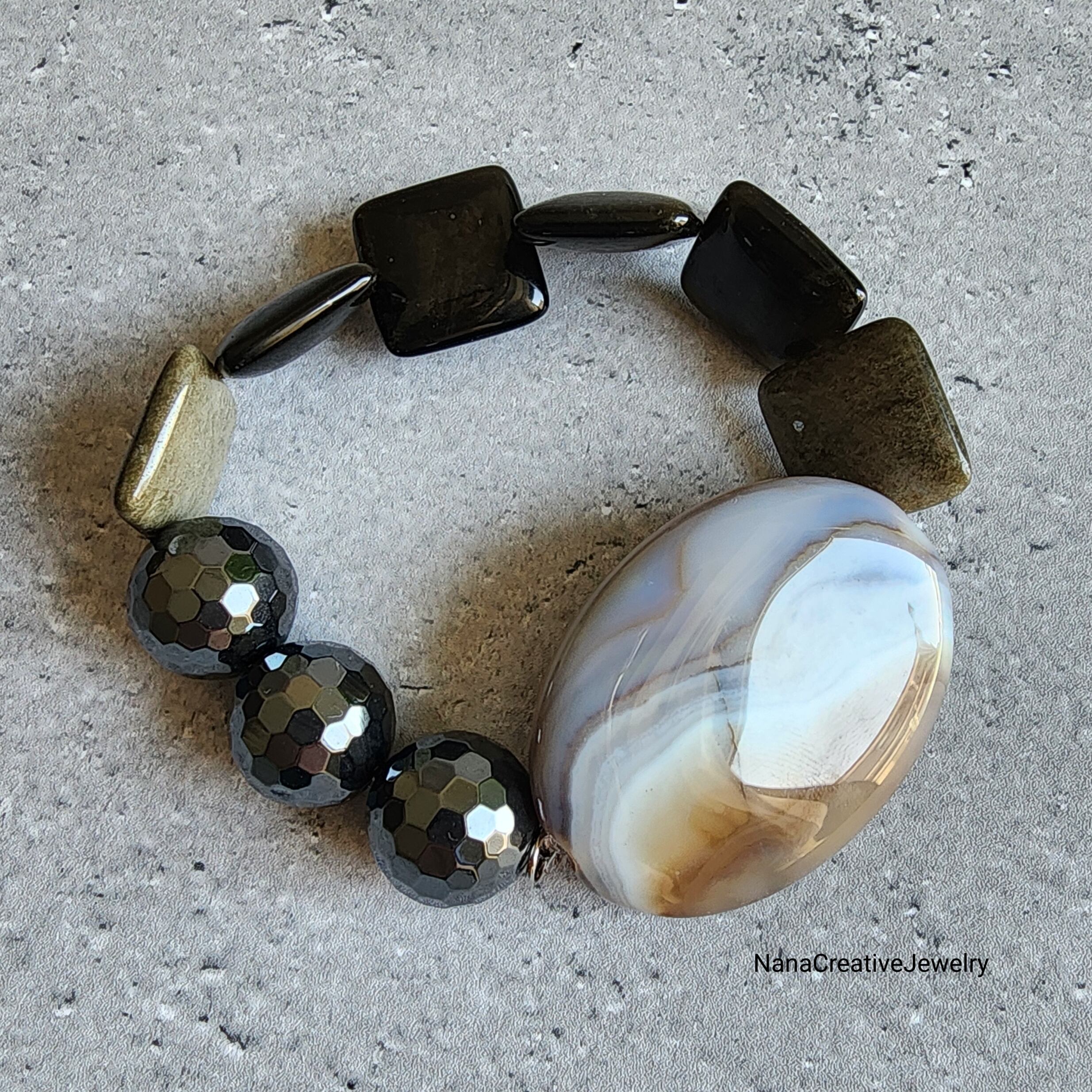 【再販】Monotone bracelet(アゲート×ゴールデンオブシディアン×ヘマティーン)