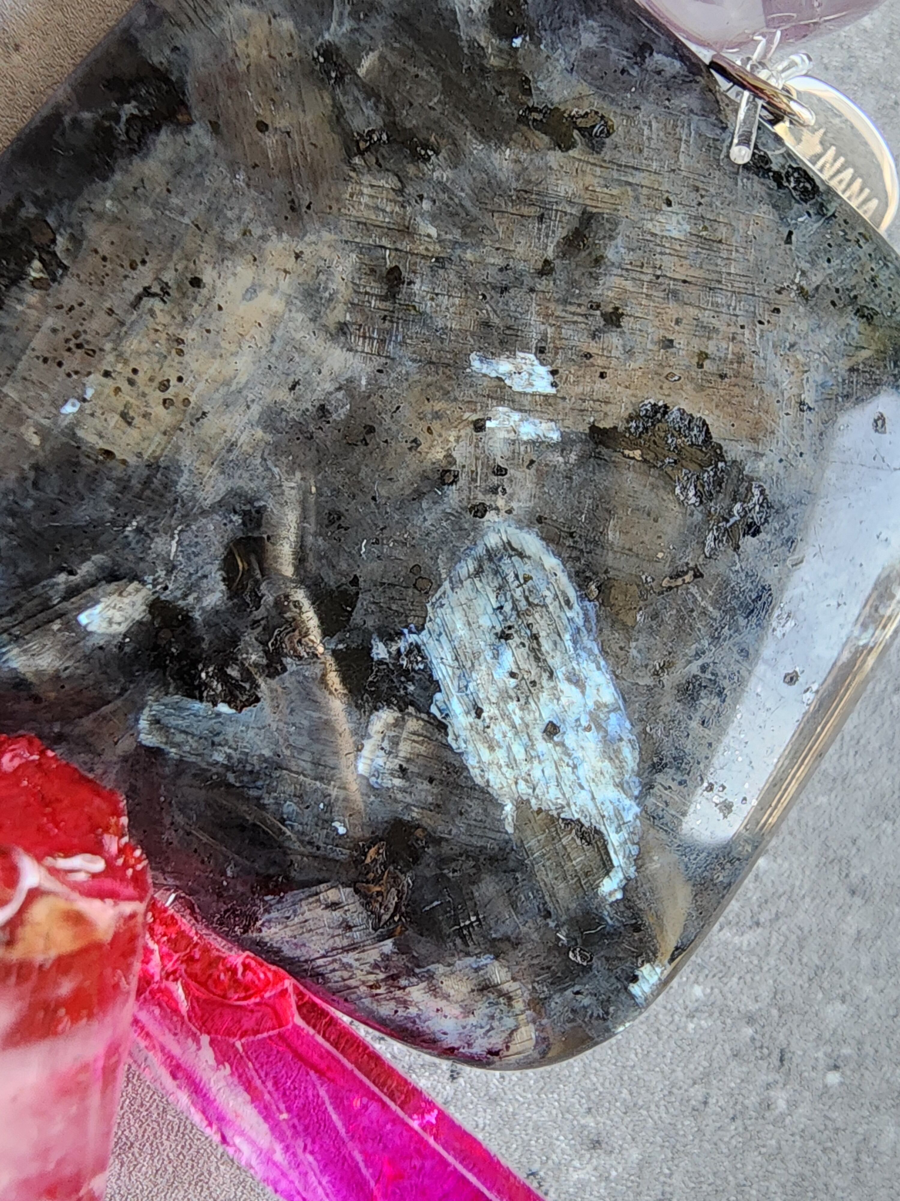 特大スクエア形状のラルビカイトはダルメシアン柄の原石にシルバーブルーの輝きが放つ存在感と個性をもつ特別な石。