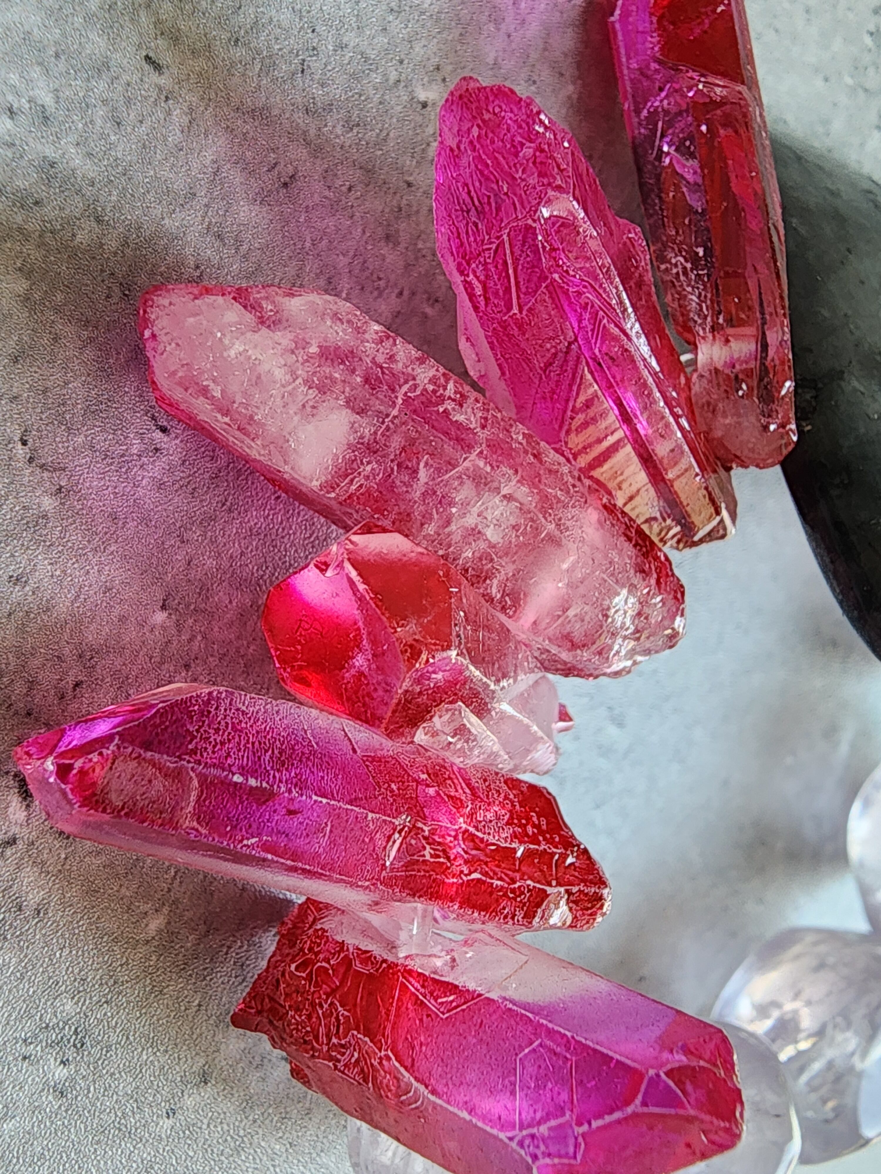 情熱を帯びたマゼンタのクリスタルは、 夢幻の舞を踊り、 アメジストの淡い紫は、 夜明けの露のように優しく輝く。