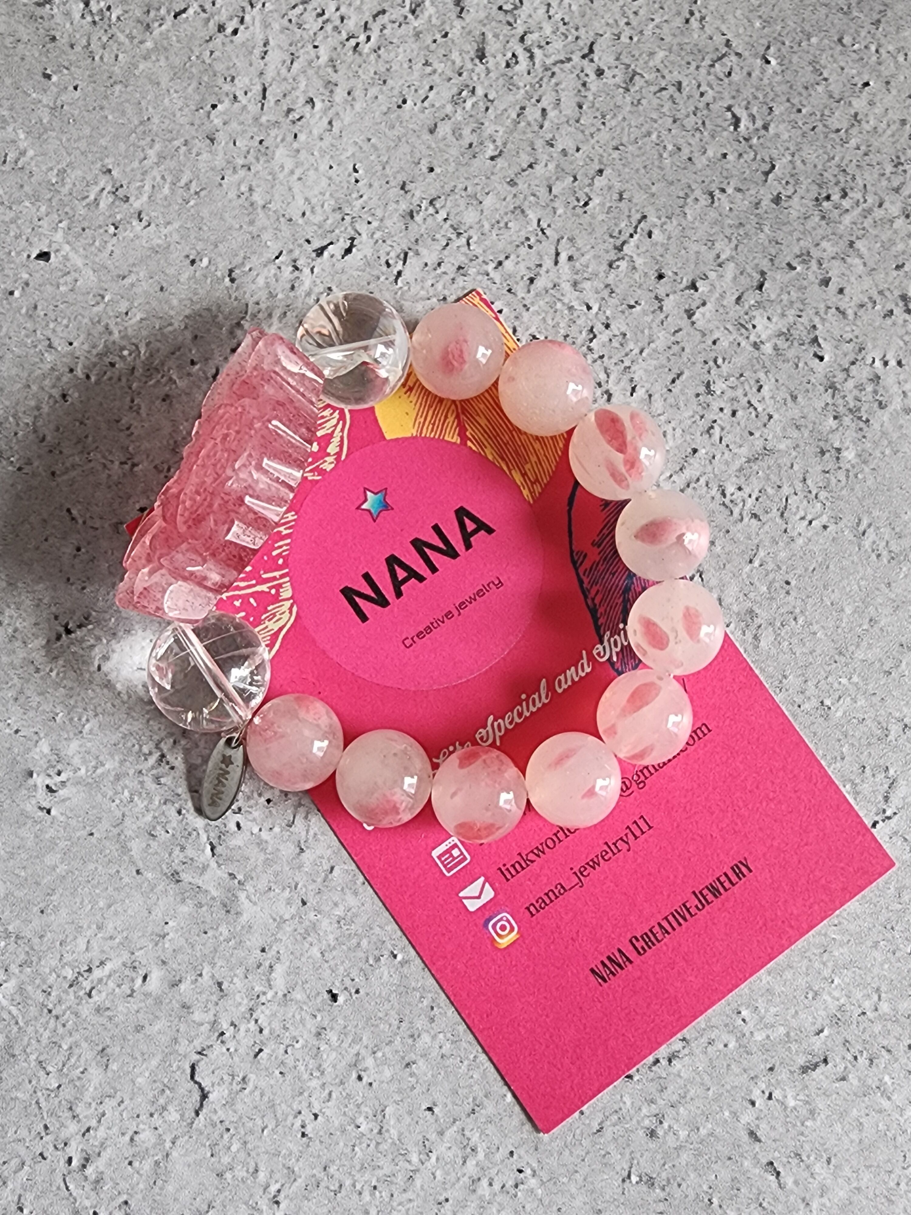 【一点物】Lotus Bracelet(ストロベリークォーツ×チェリーブロッサムロードナイトシリカ×アイリスクォーツ)