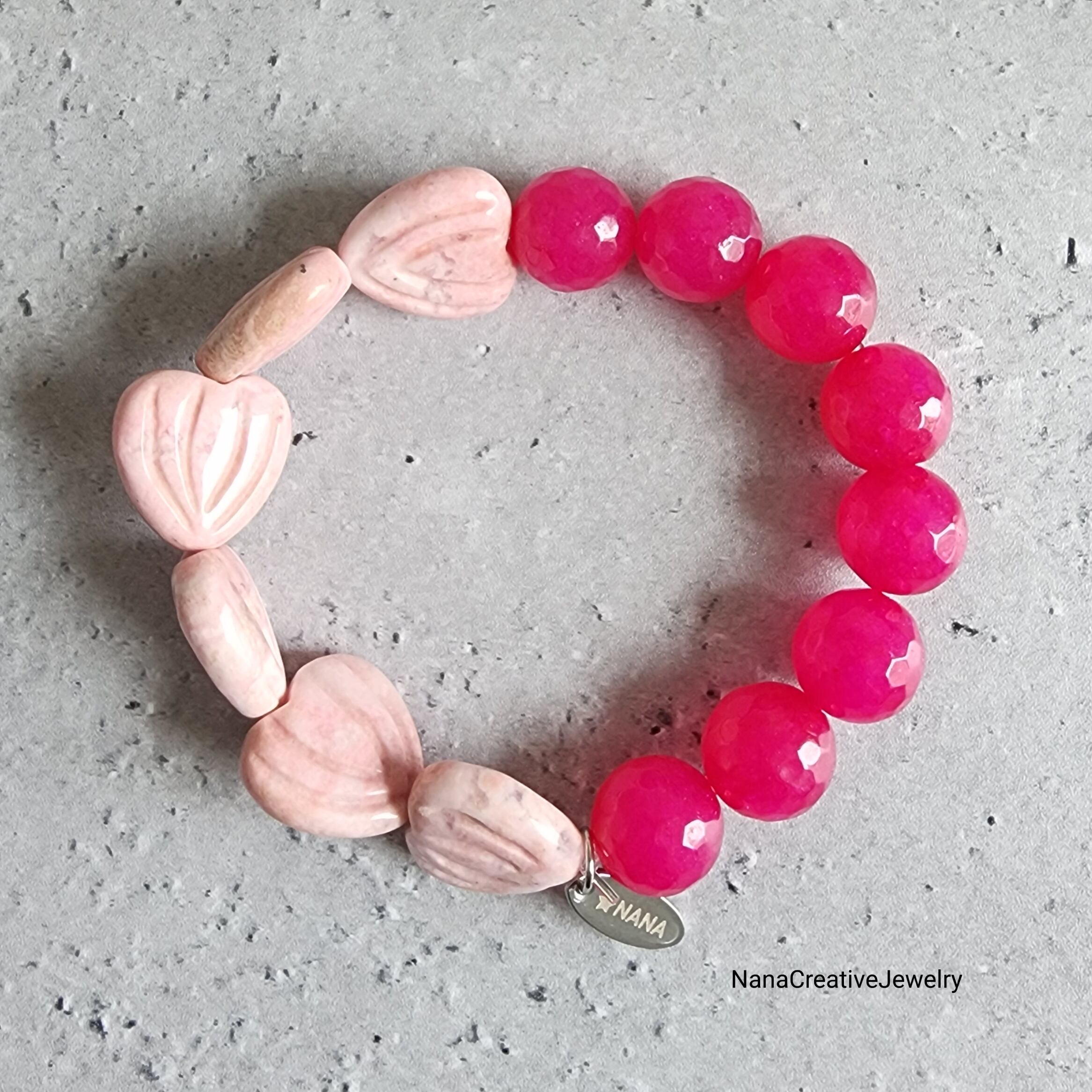 鮮やかなフューシャピンクジェードと彫刻入りロードナイトハートの愛がテーマの一本です。