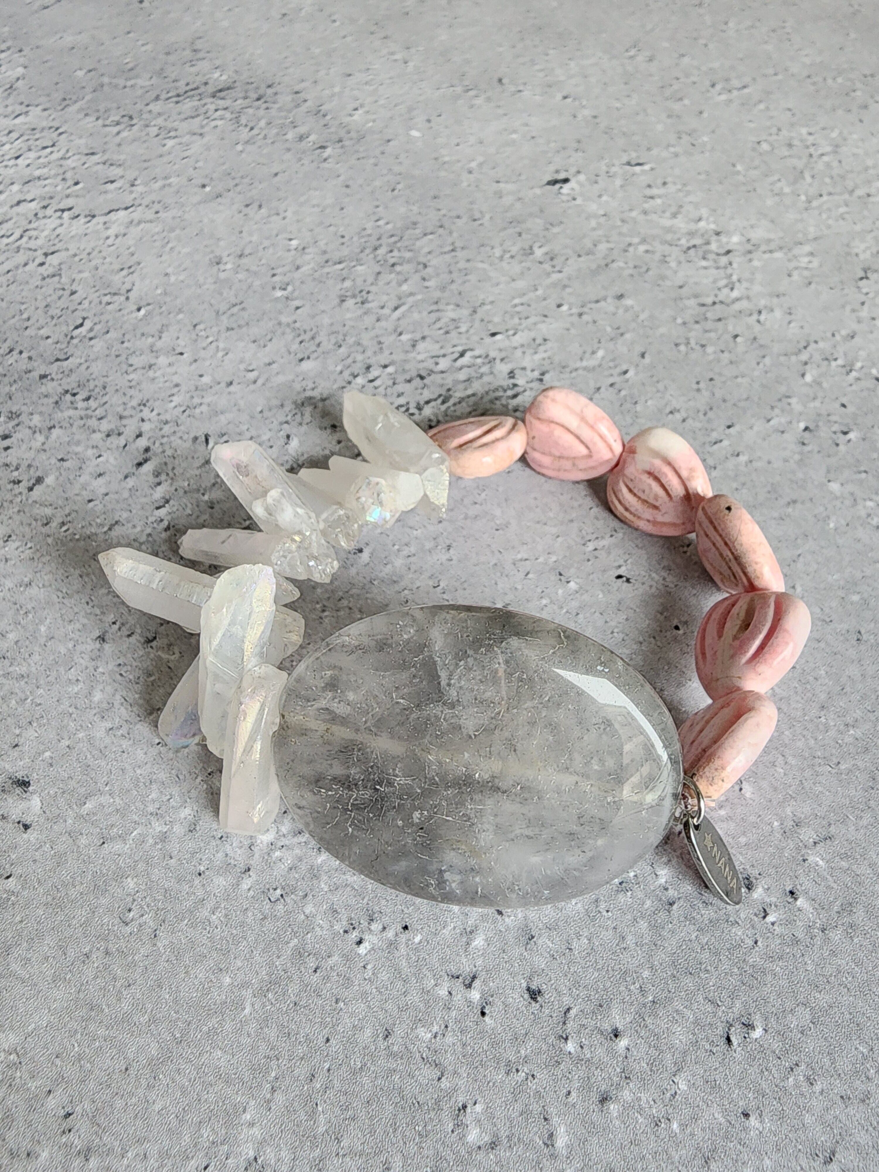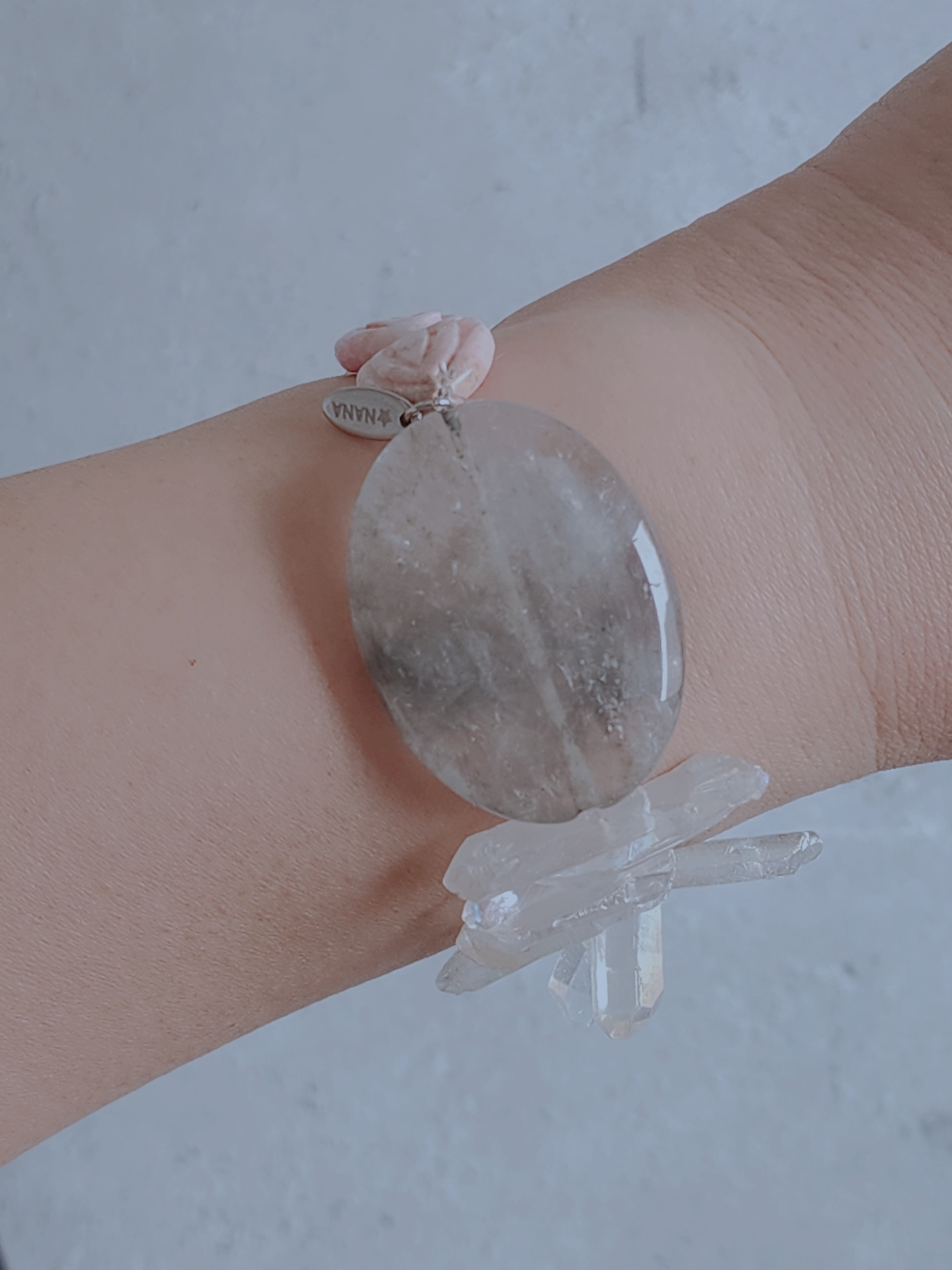 Multicolor bracelet(クラウディークォーツ×ロードナイト×クリスタル)