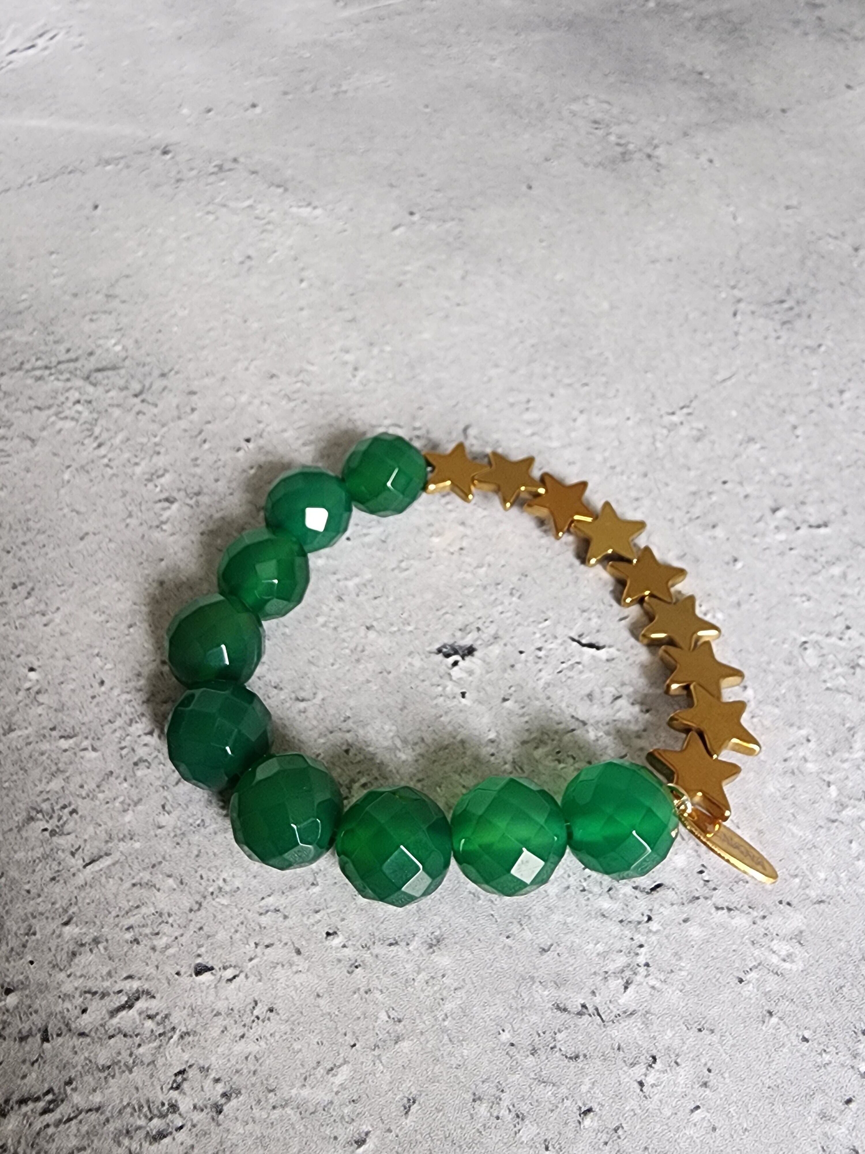 涼しげな森のようなグリーンカルセドニーの64面カットとヘマタイトスターのシンプルでかわいらしいブレスレットです。