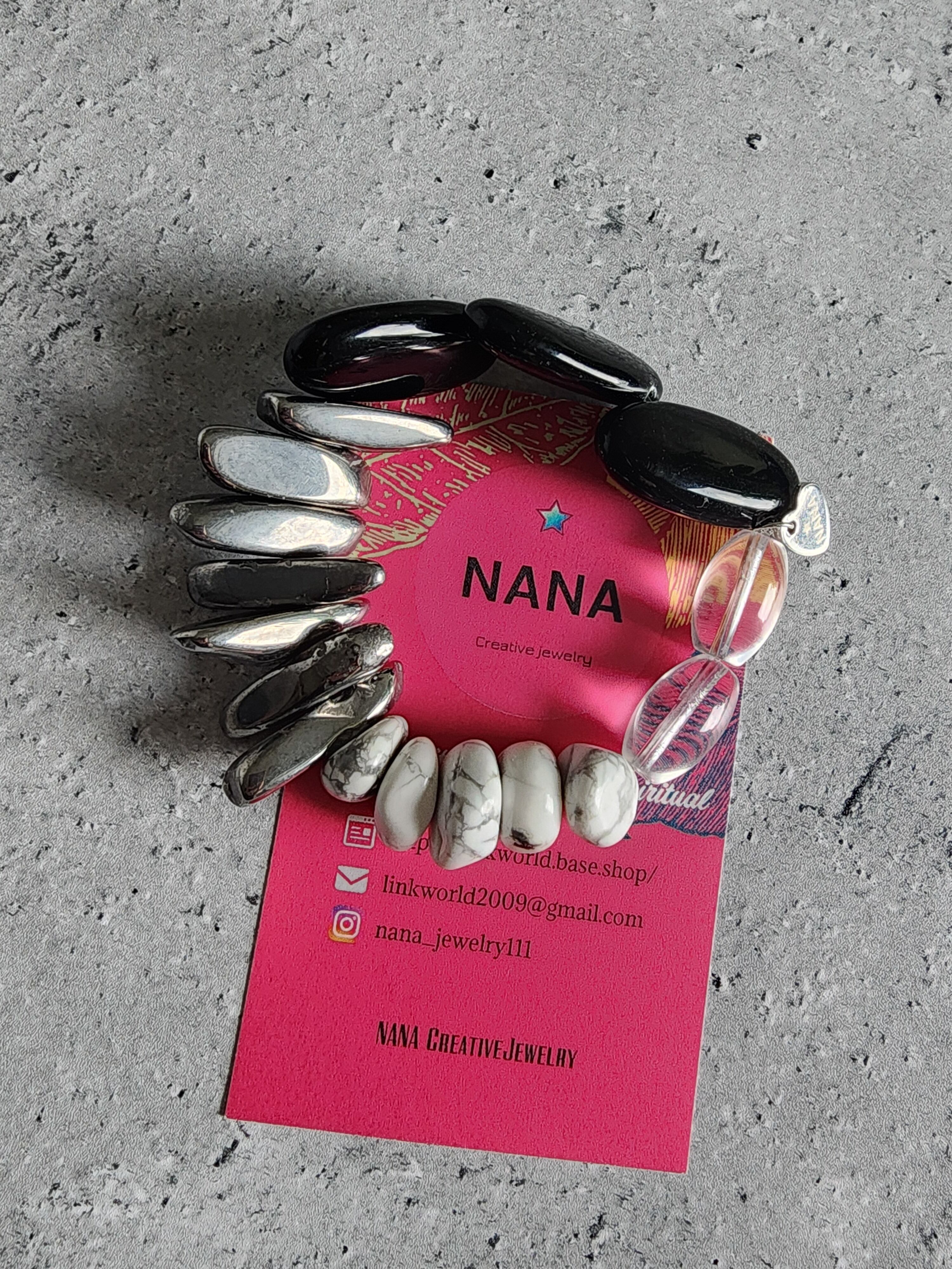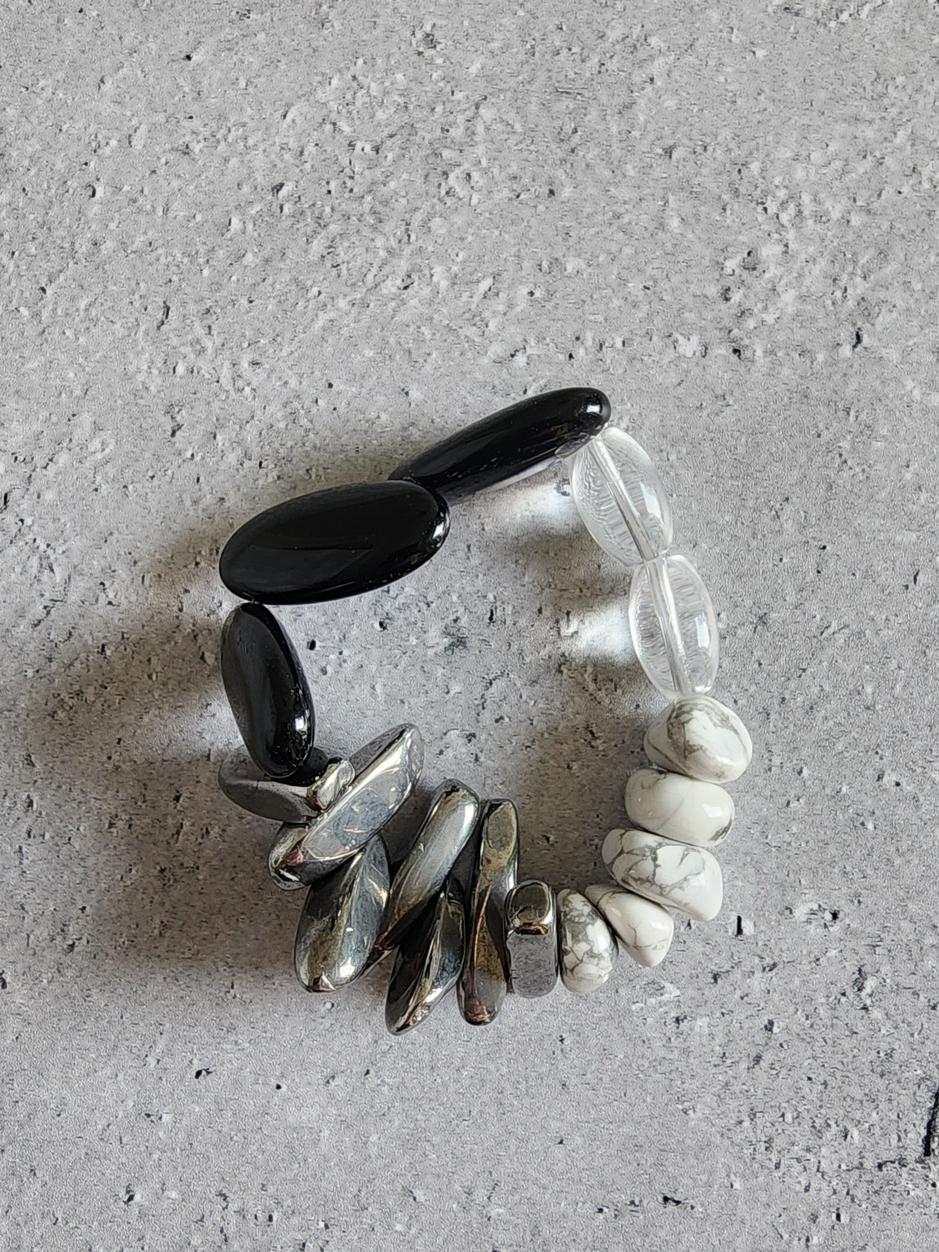Monotone bracelet(ブラックオニキス×クリスタル×ハウライト×アゲート)