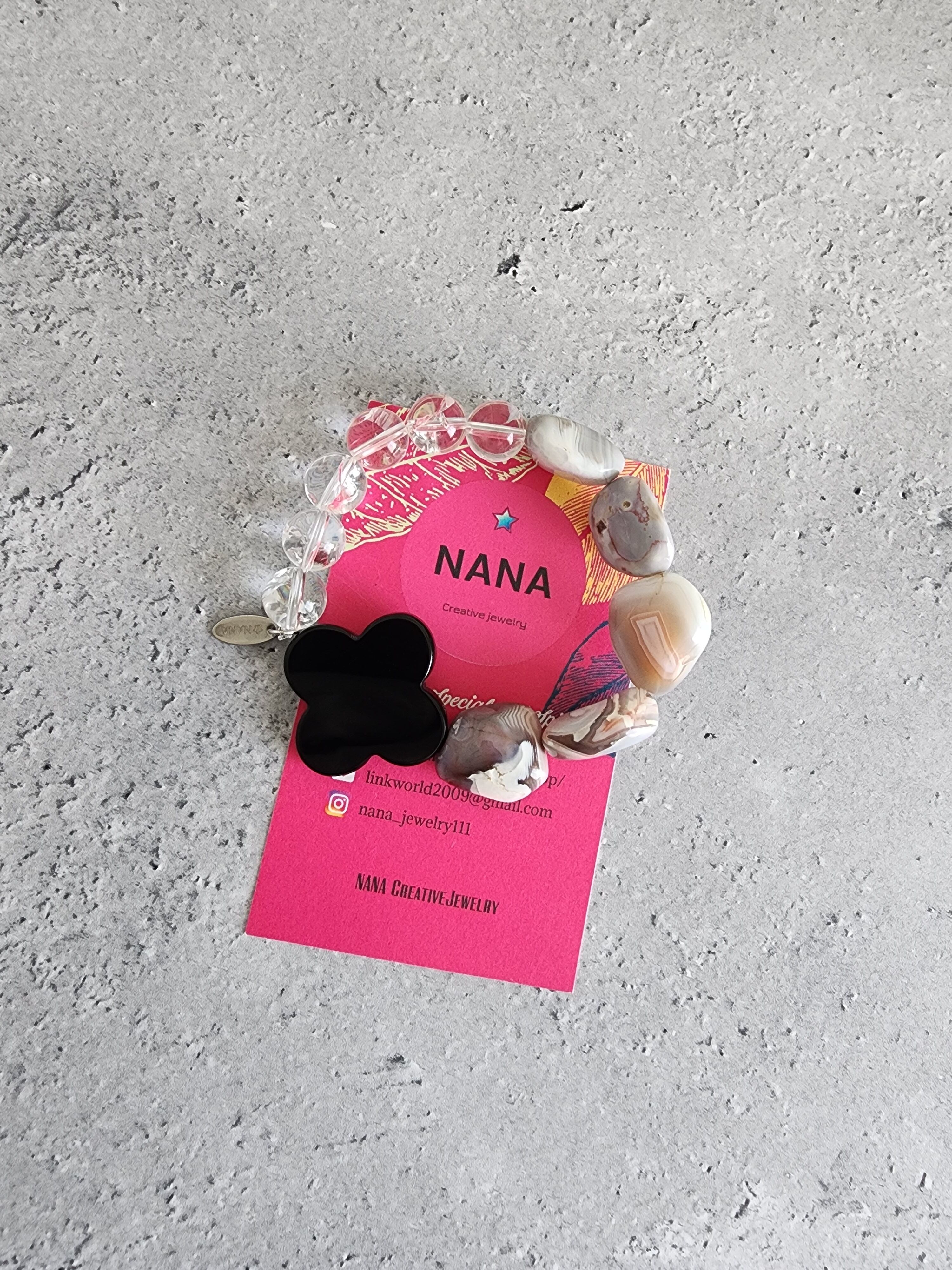 Clover bracelet(ブラックオニキス×ボツワナアゲート×アイリスクォーツ)