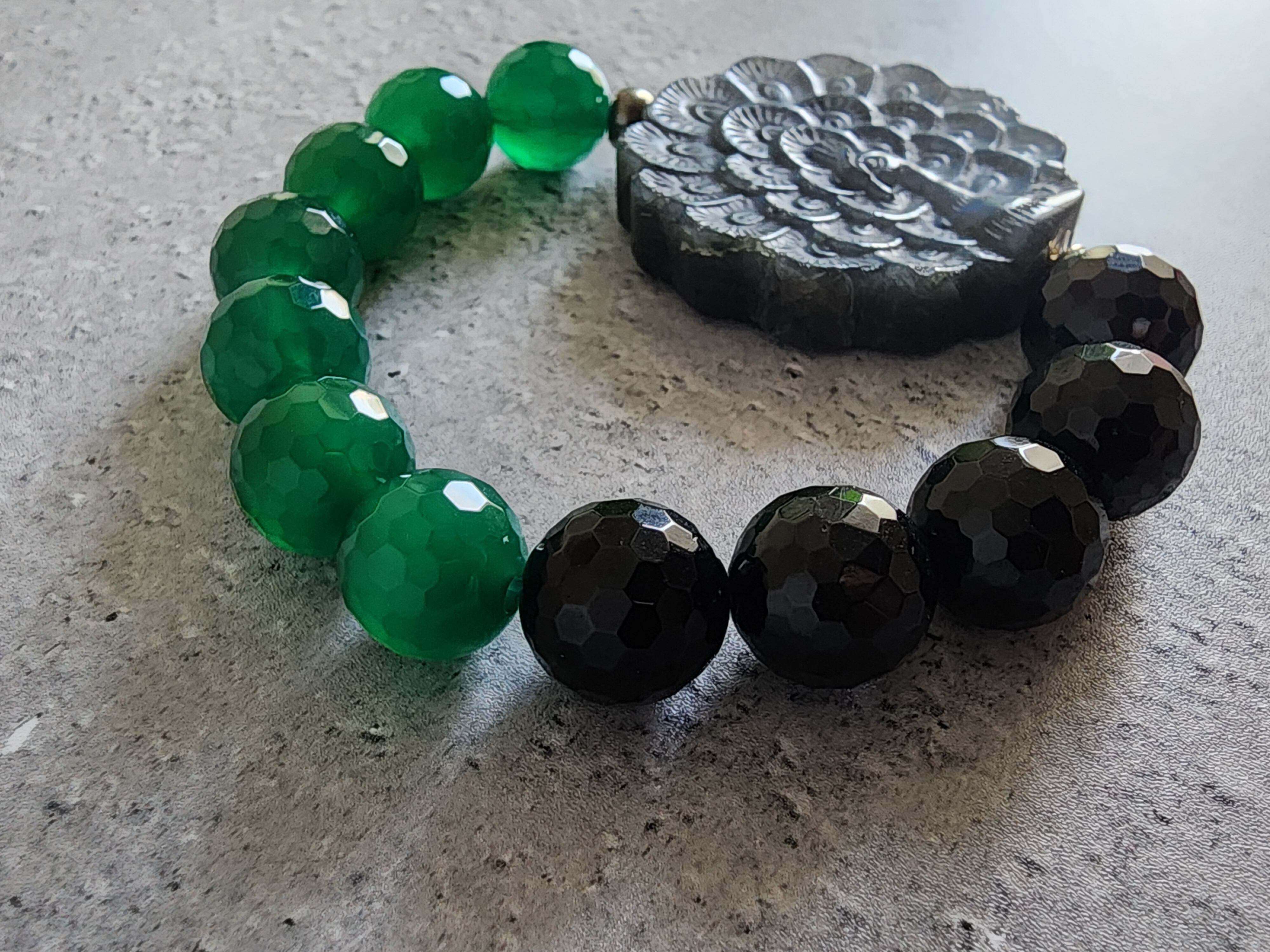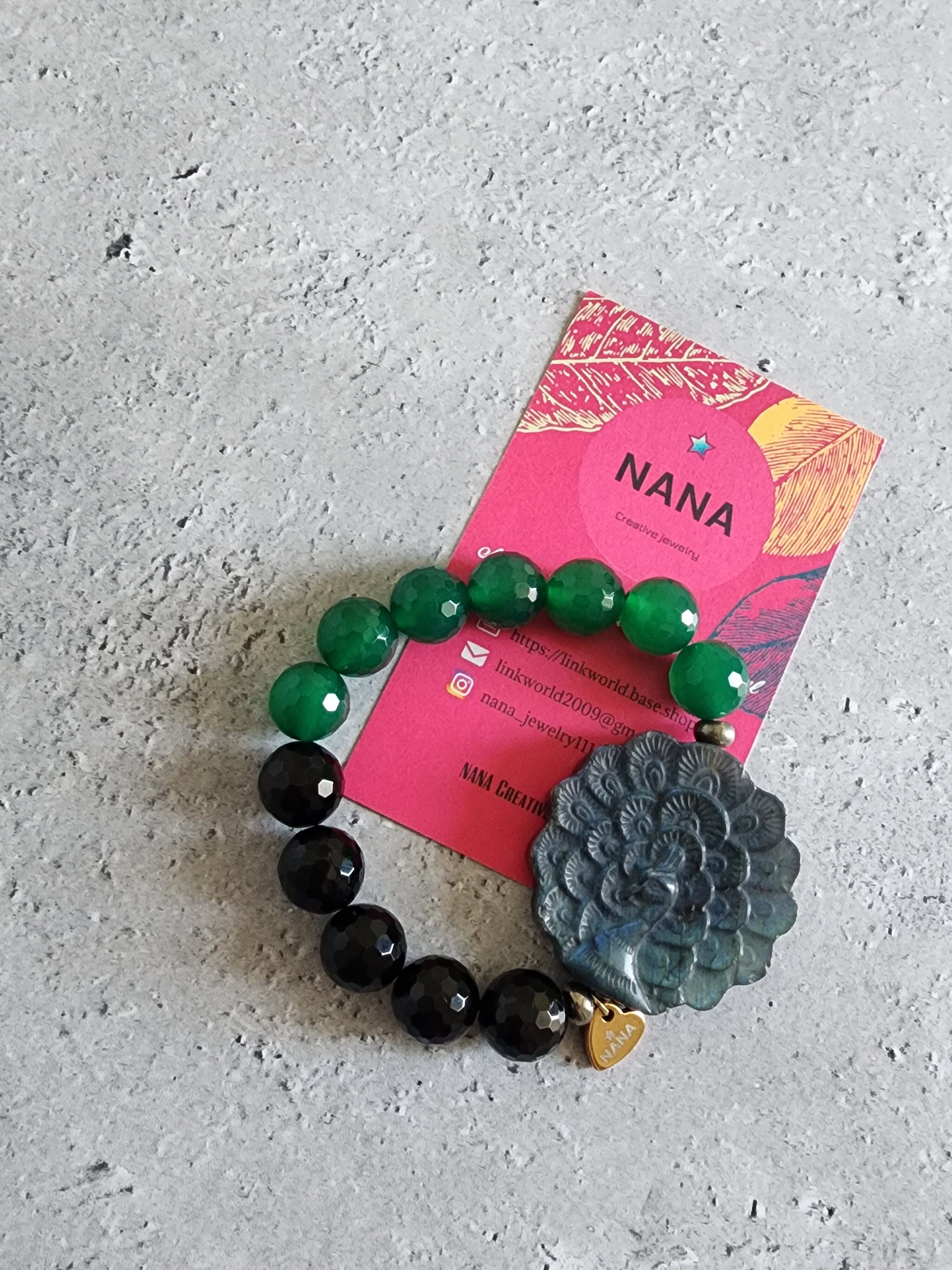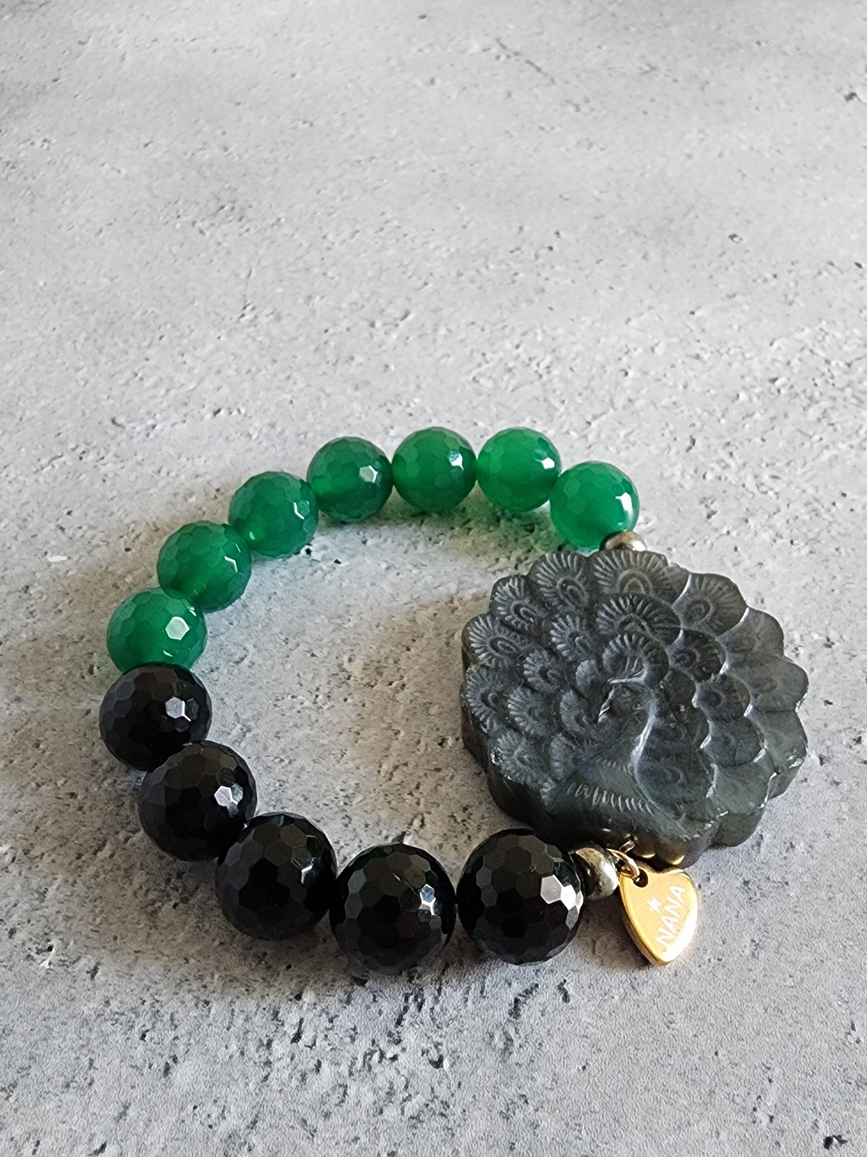 【一点物】Peacock bracelet(ラブラドライト×ブラックトルマリン×アゲート)