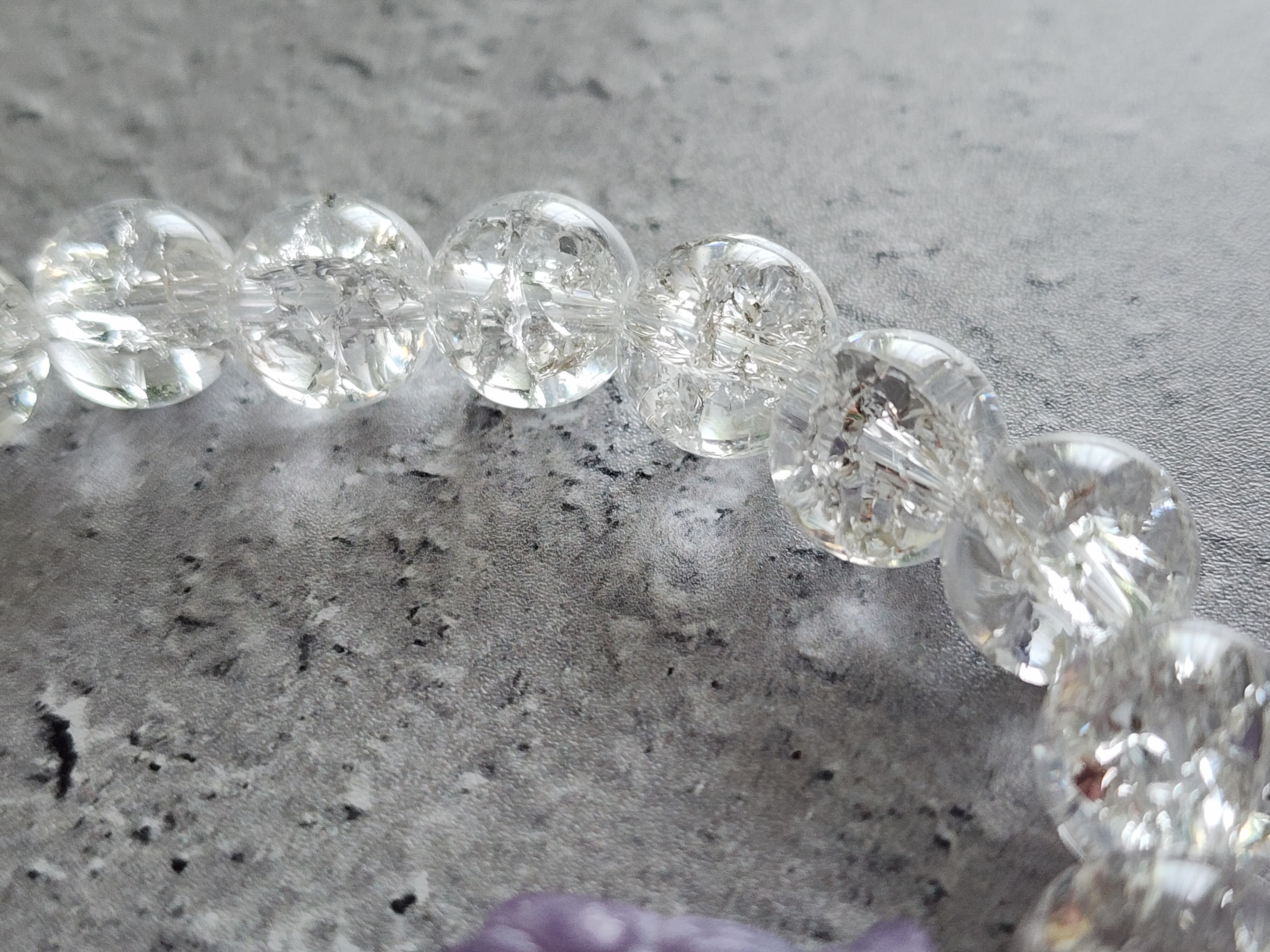 レピドライトは淡い紫が特徴で、中に白い部分が多いものもあり、誰とでも被らない世界に一つだけの特別な石です。レピドライトをよくみるとキラキラと輝く部分があります。それはレピドライトが属している雲母がもつ特徴です。