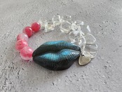 ぷっくりとしたラブラドライトの唇を桜の花びらのように可憐なロードナイトシリカと艶やかな透明感が官能的なクリスタルタンブルを合わせたインパクトが大きい、最高に華やかなアイテムです。
