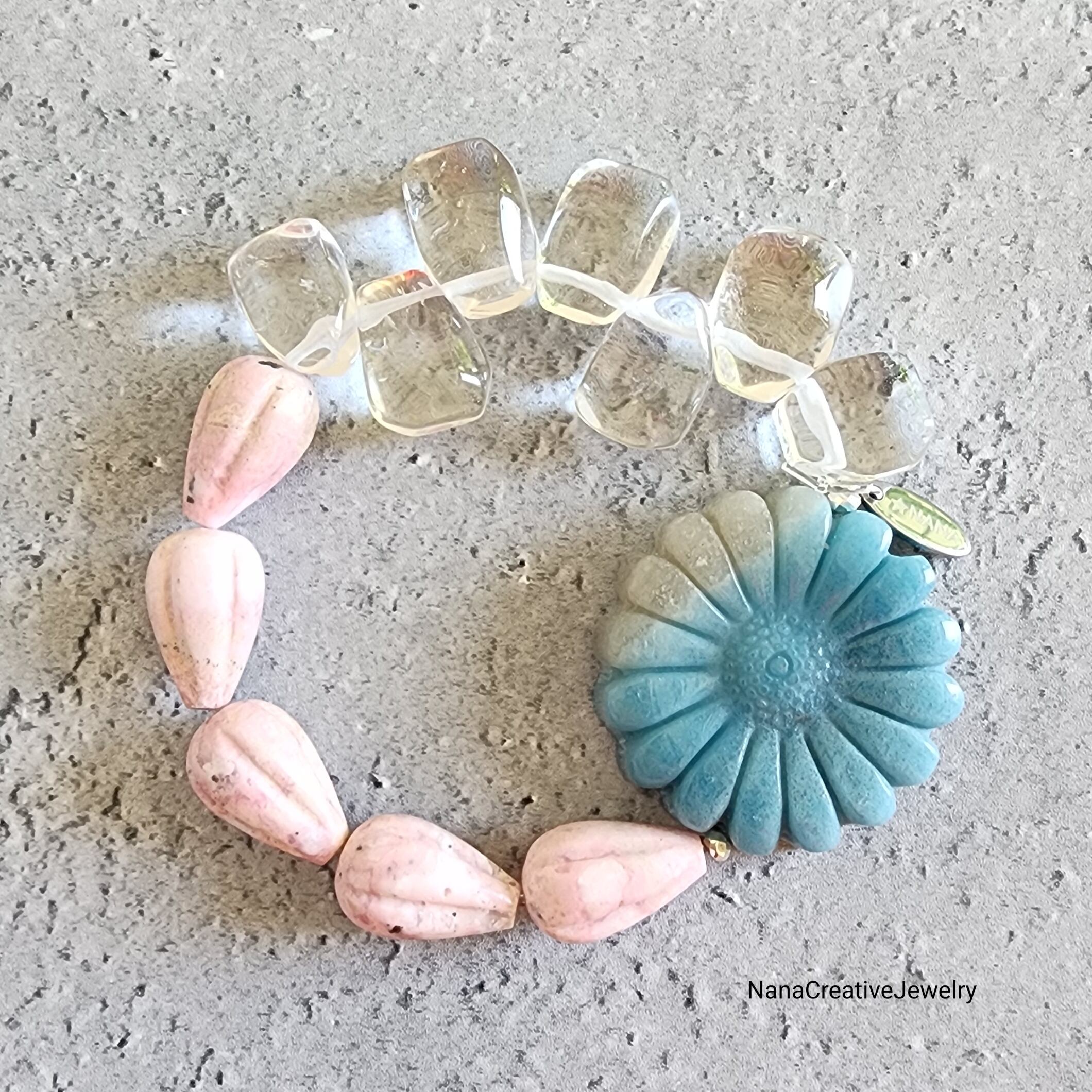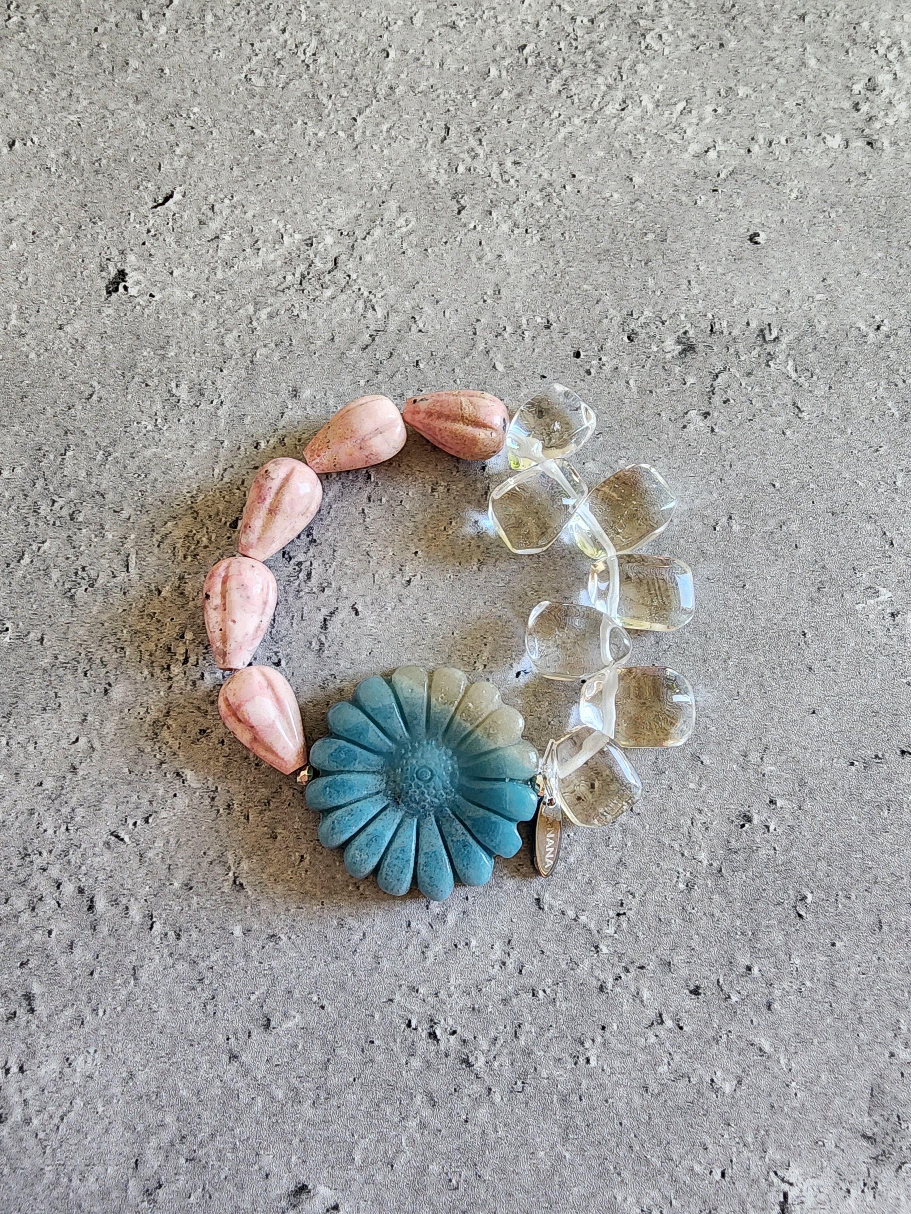 【一点物】Daisy bracelet(トロレアイト×ロードナイト×クリスタル)